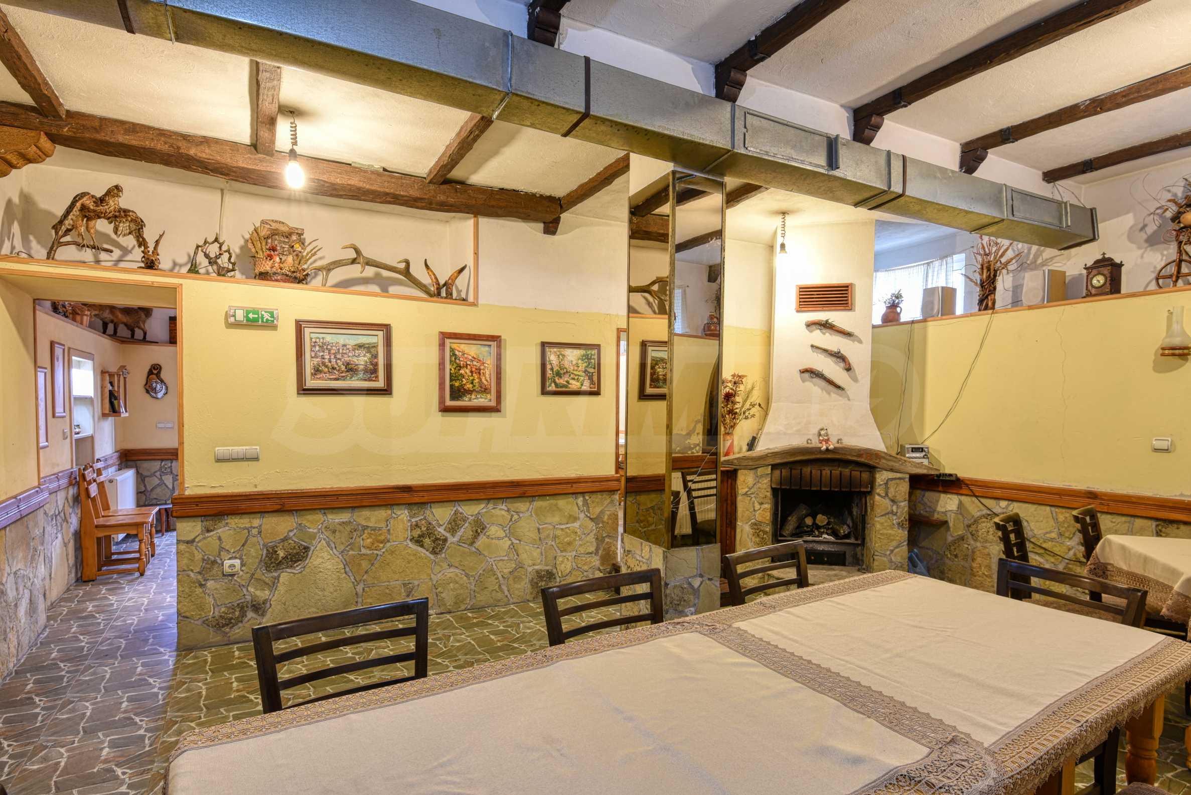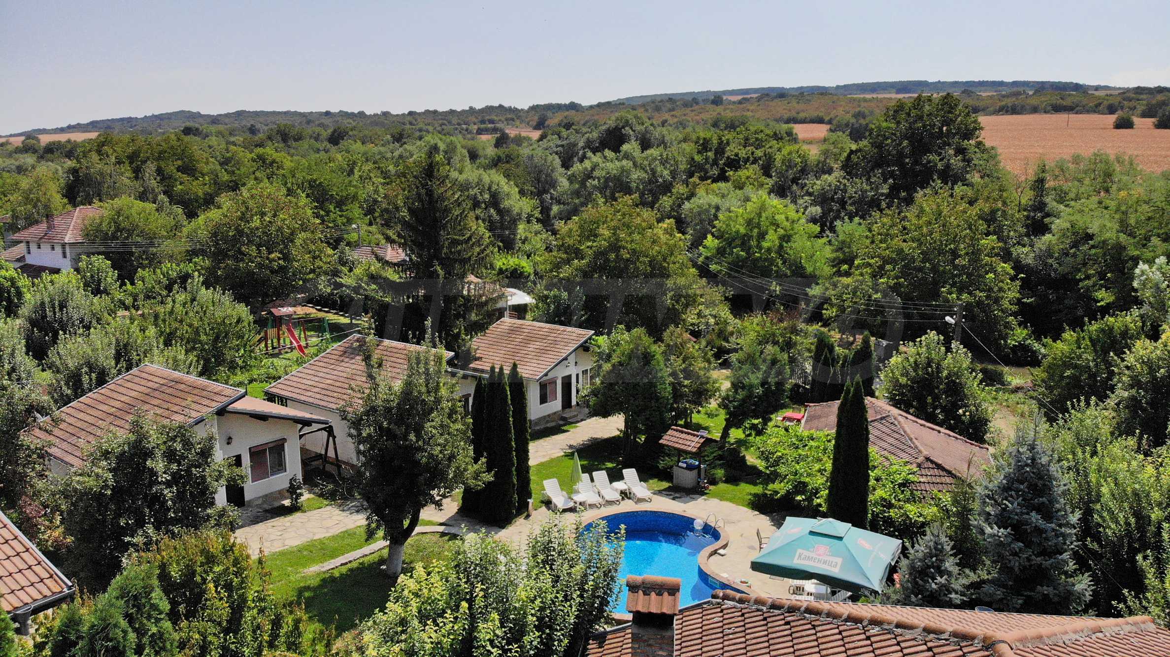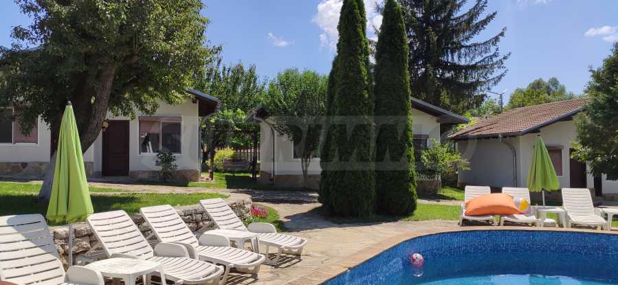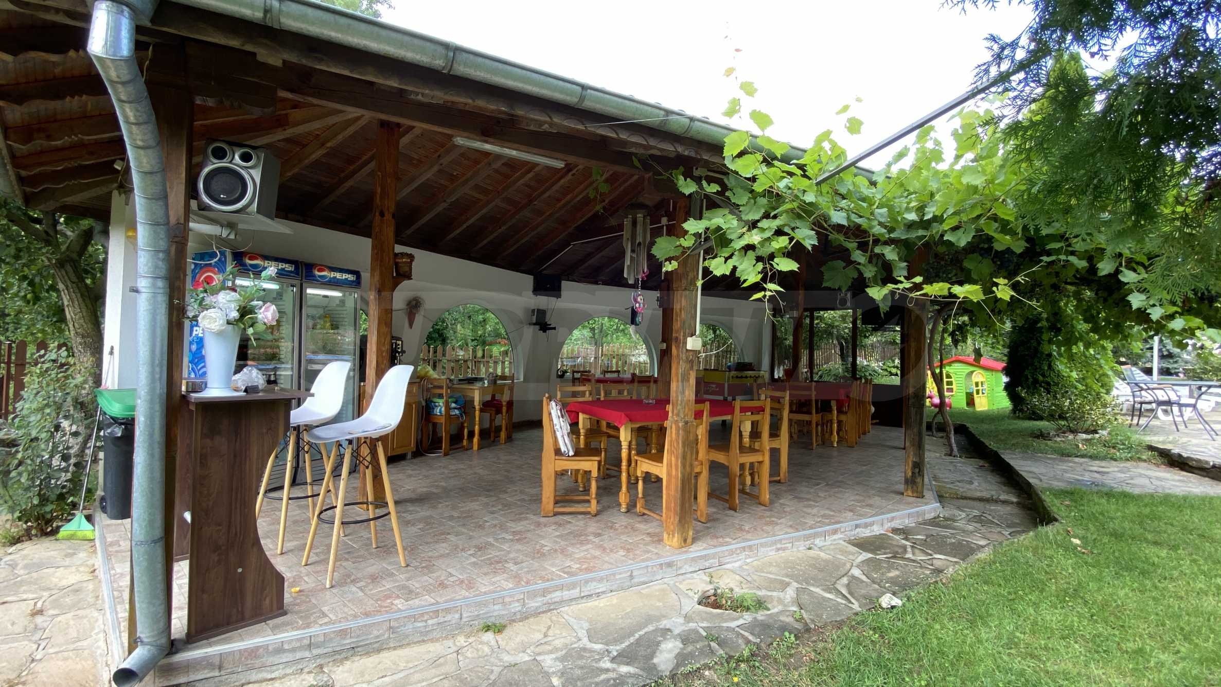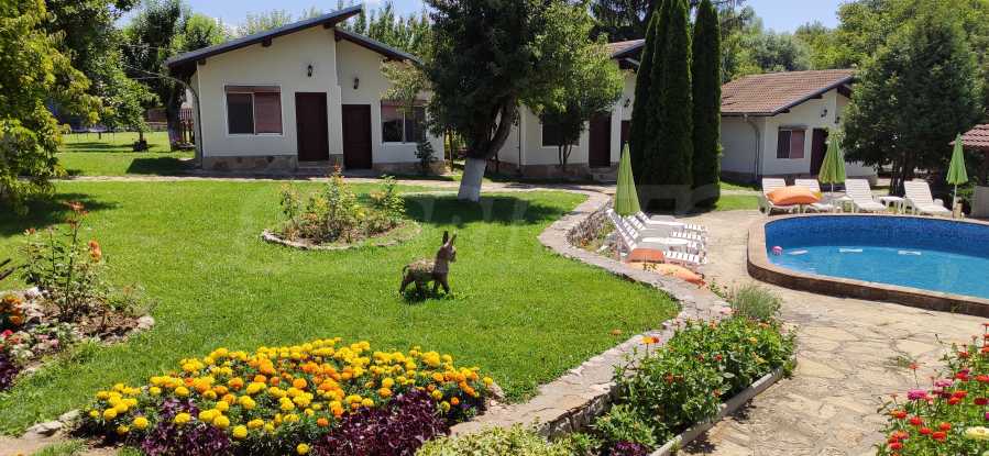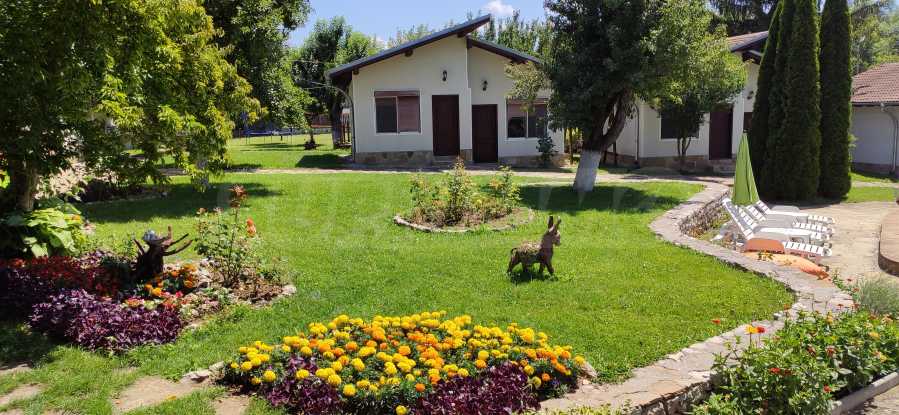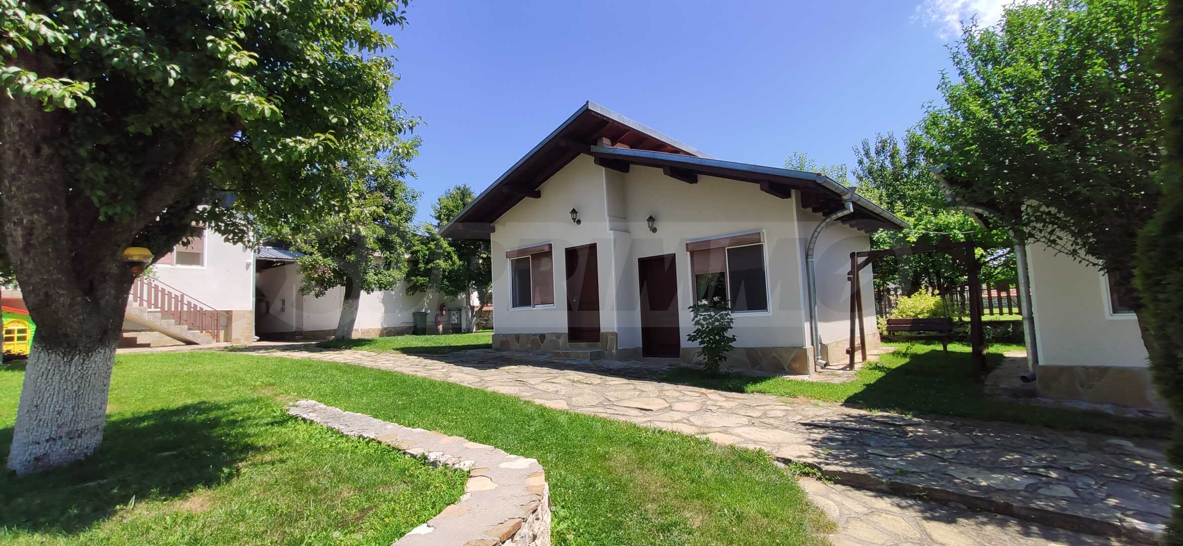 The complex consists of 6 houses with a total area of 717 m2 - three one-story, two two-story with separate entrances and one currently unusable. It has a total of 17 rooms, of which 14 bedrooms with 22 beds, located two in a room. Each bedroom has its own bathroom, air conditioning, TV and Wi-Fi, and two of them have a sofa / upholstered furniture / and a terrace. There is also a utility room and two shared kitchens. Heating during the cold days is with local heating.