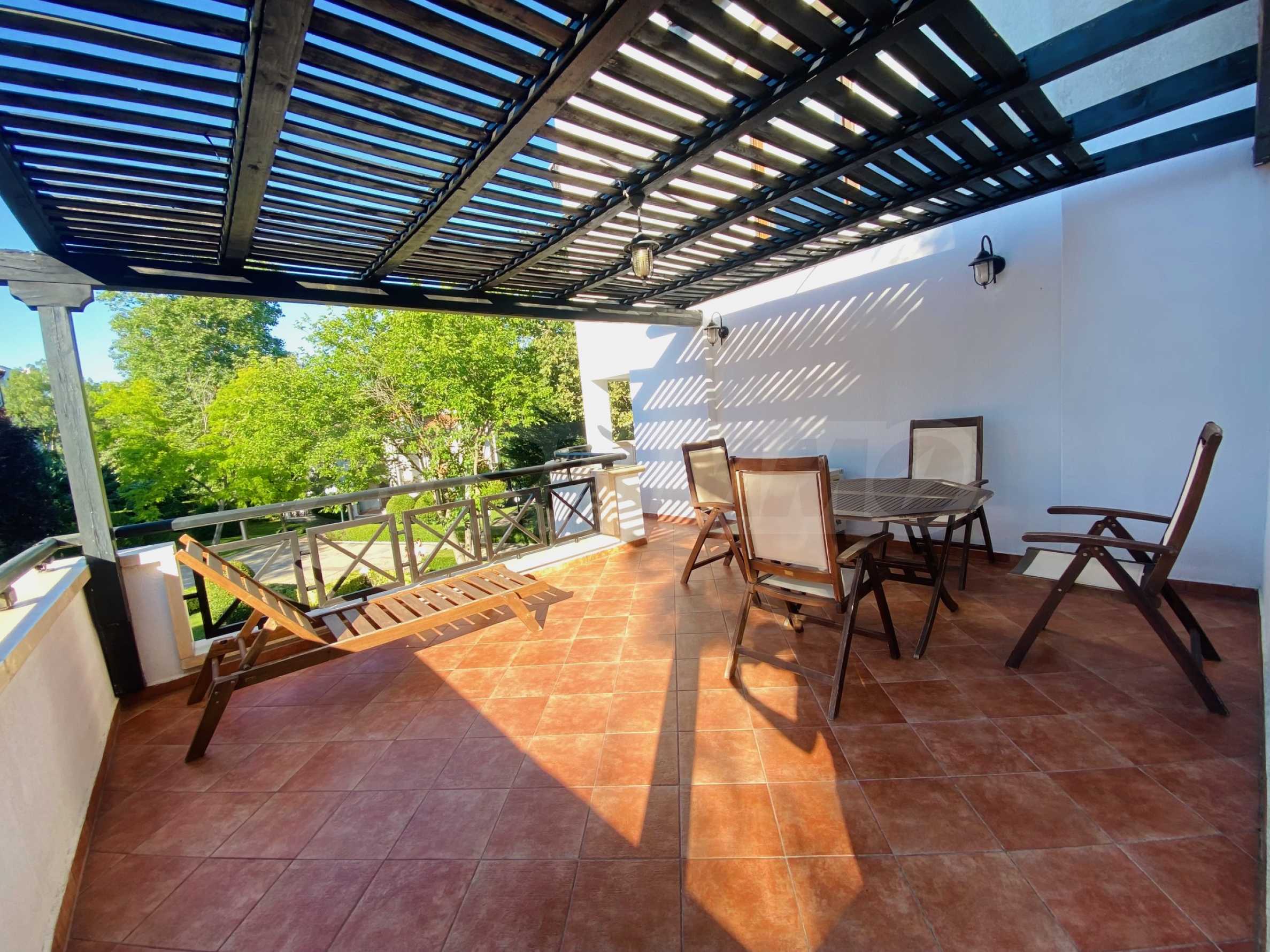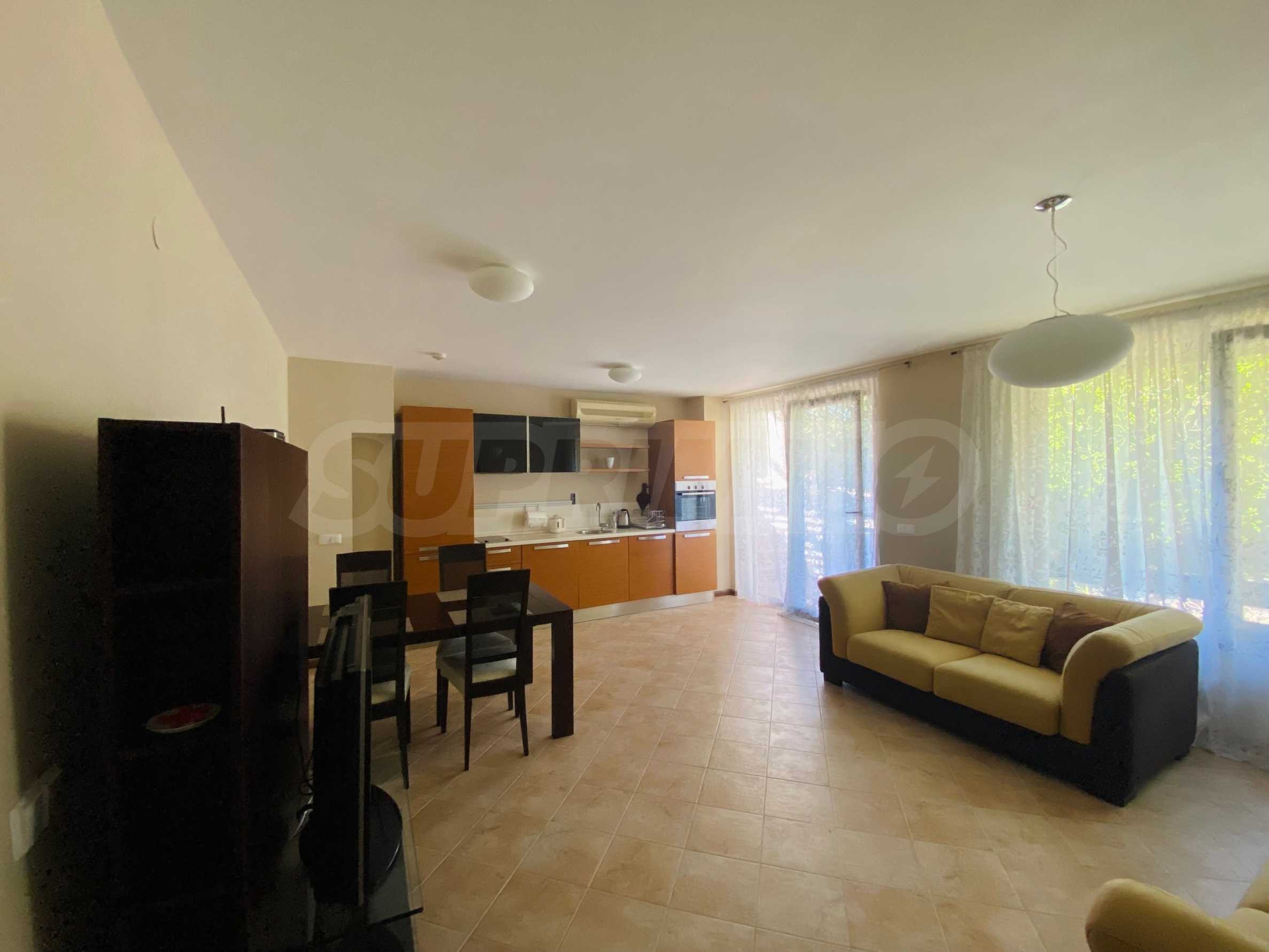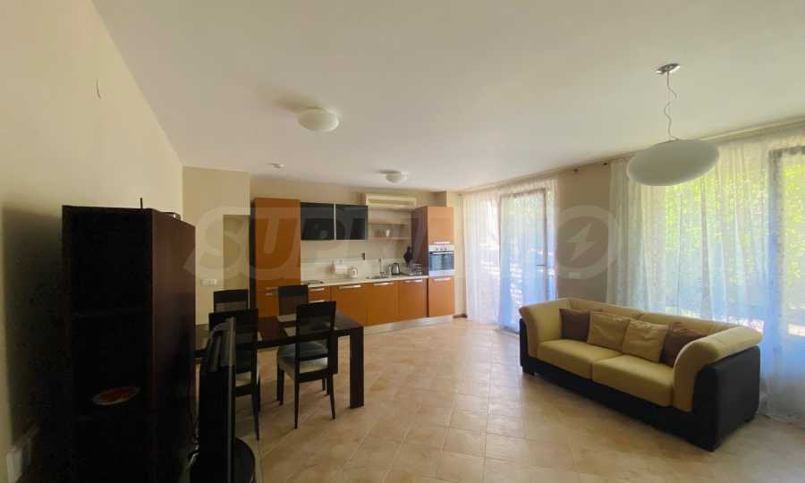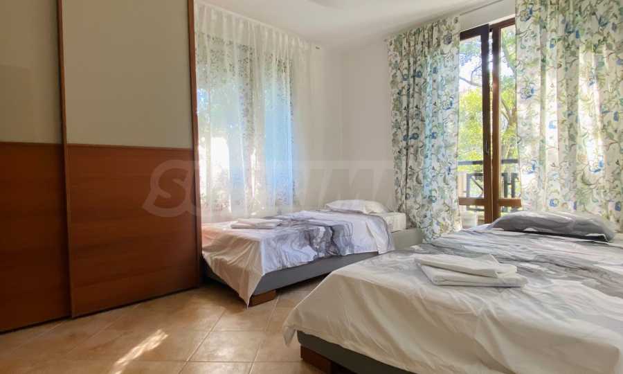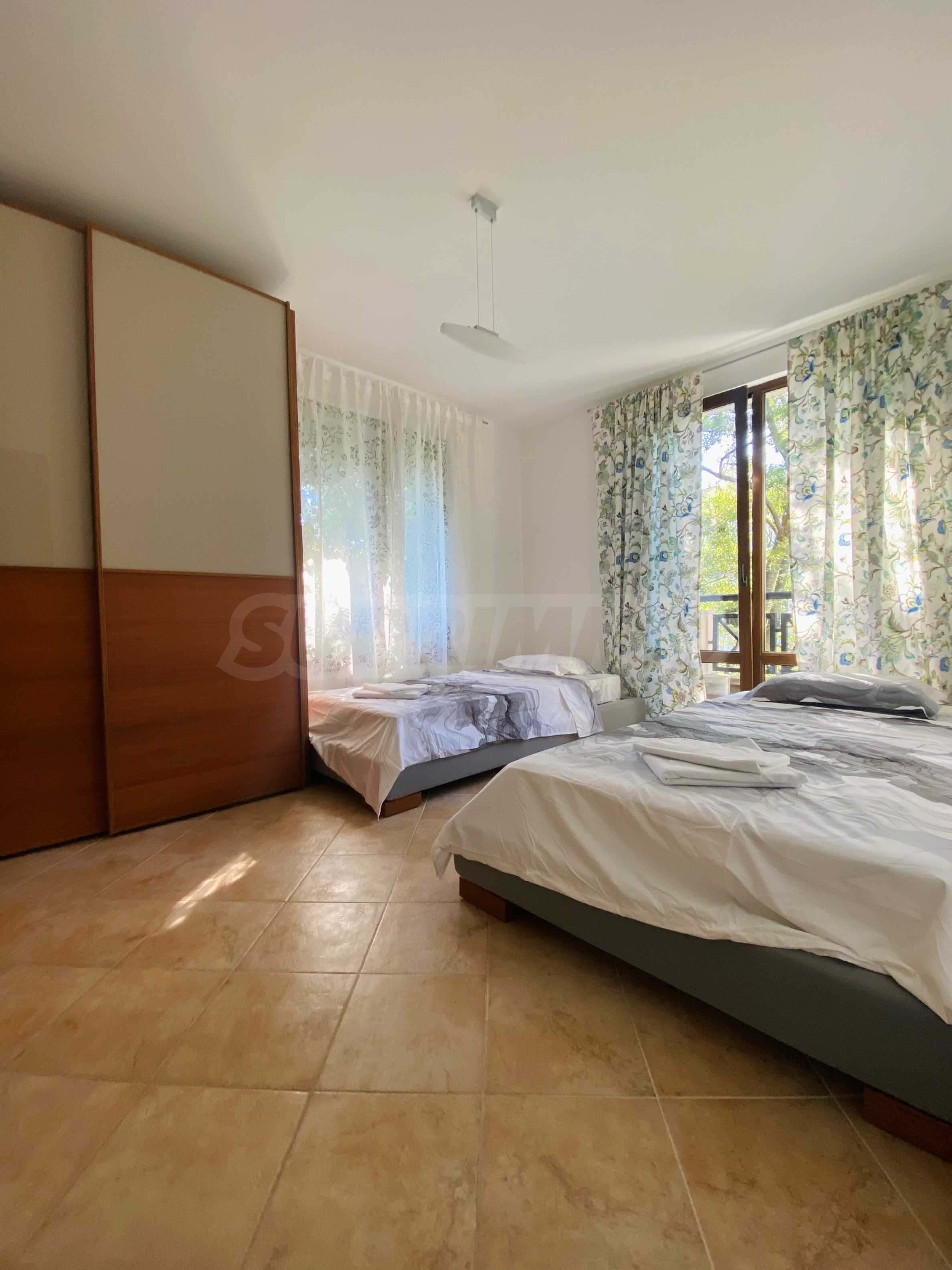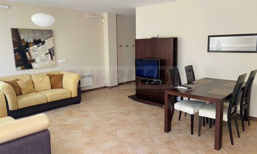We present a comfortably furnished two-bedroom apartment of 140.34 sq m for sale, in a prestigious coastal complex on the first line to the sea, next to the popular "Oasis" beach in the Lozenets resort.