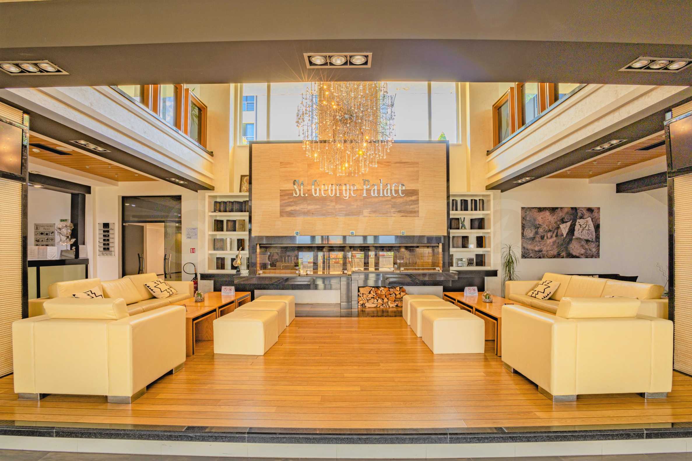 The property is located in one of the most luxurious year-round complexes in Bansko, with an extensive SPA area with massage services and panoramic views of Bansko, Pirin and Rila. The complex has a restaurant serving traditional Bulgarian, Italian and European cuisine, and a children's play area. The apart-hotel has 2 bars: a sports bar with a pool table and table football and a panoramic lobby bar with 50 seats, which offers mountain views. Guests can relax in the indoor swimming pool and hot tub or take advantage of the equipped fitness room and conference room (100-120 seats), as well as the following services - laundry, ironing, dry cleaning, safes at the reception, car rental, excursions and transfers.