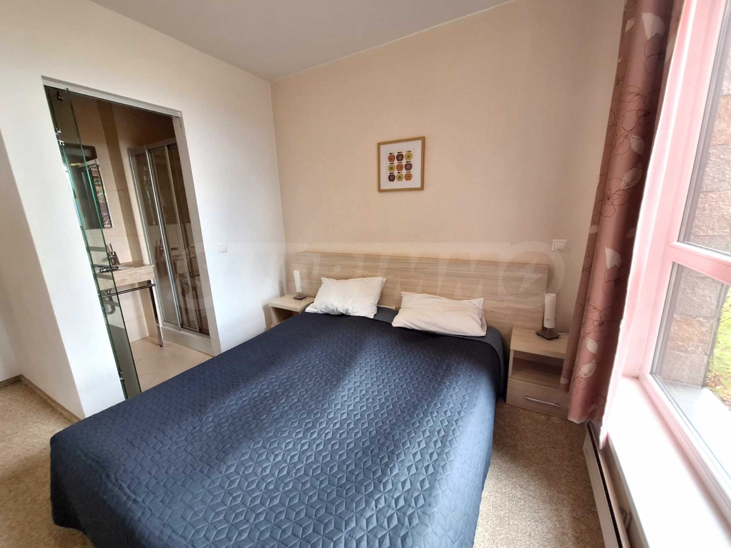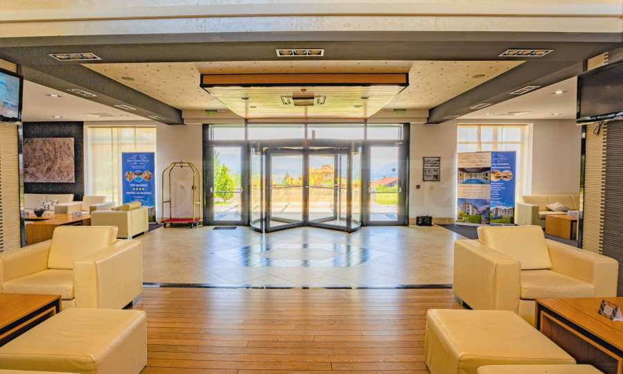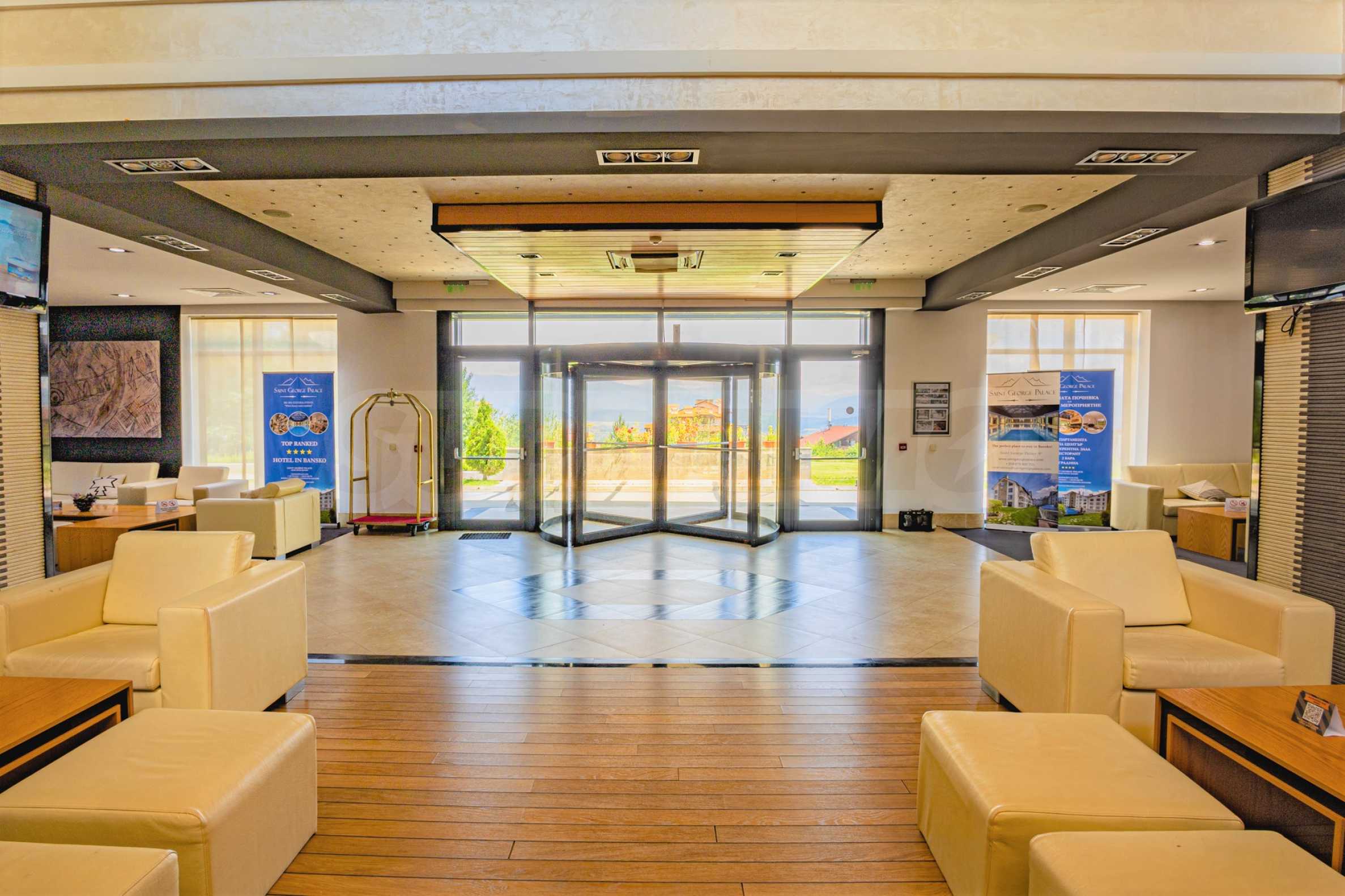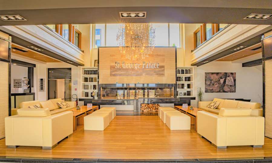 St. George Palace is one of the most luxurious year-round complexes in Bansko, with an extensive SPA area with massage services and panoramic views of Bansko, Pirin and Rila. The complex has a restaurant serving traditional Bulgarian, Italian and European cuisine, and a children's play area. The apart-hotel has 2 bars: a sports bar with a pool table and table football and a panoramic lobby bar with 50 seats, which offers mountain views. Guests can relax in the indoor swimming pool and hot tub or take advantage of the equipped fitness room and conference room (100-120 seats), as well as the following services - laundry, ironing, dry cleaning, safes at the reception, car rental, excursions and transfers.
