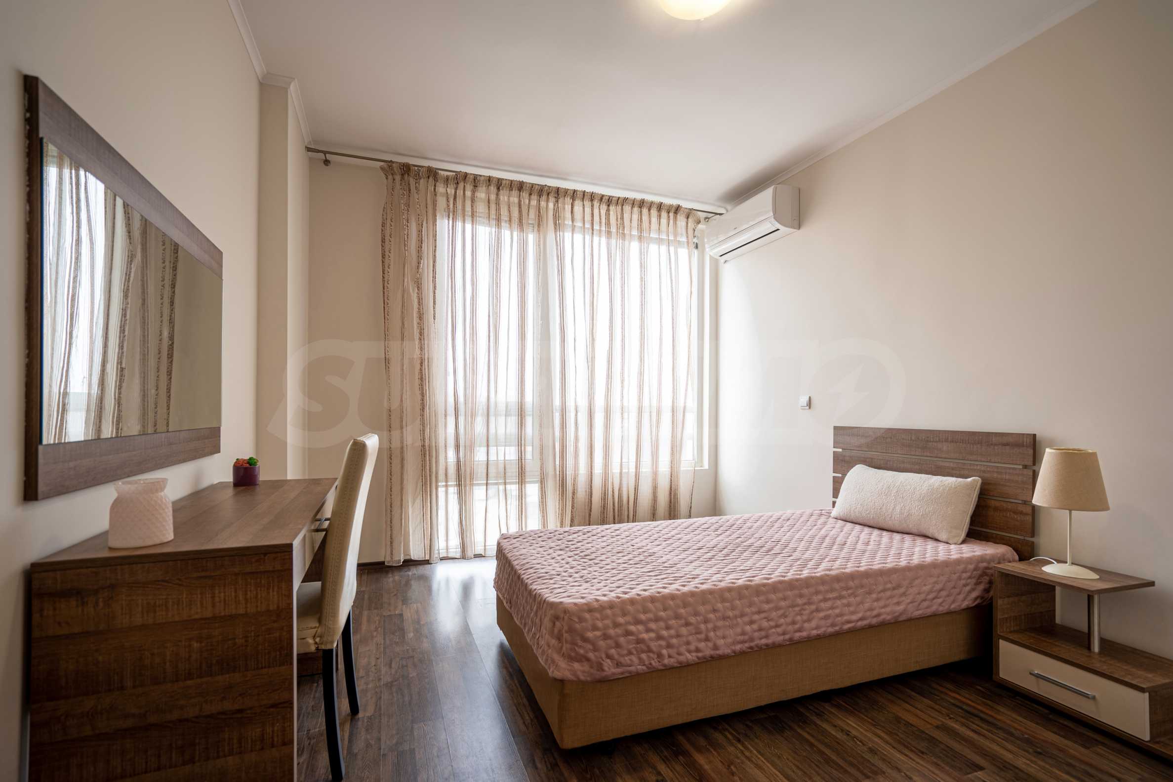 We present a two-bedroom apartment for sale in a prestigious gated complex, in the "Karshiyaka" district. Convenient location just 2 km from the city center, close to the French Language School "Antoine de Saint-Exupery" and the "Raina Knyaginya" Primary School, as well as various shops, restaurants and pharmacies. The complex is easily accessible by public transport, with bus lines 12, 21 and 99 stopping right in front of it, connecting it with the other neighborhoods and key points of the city.