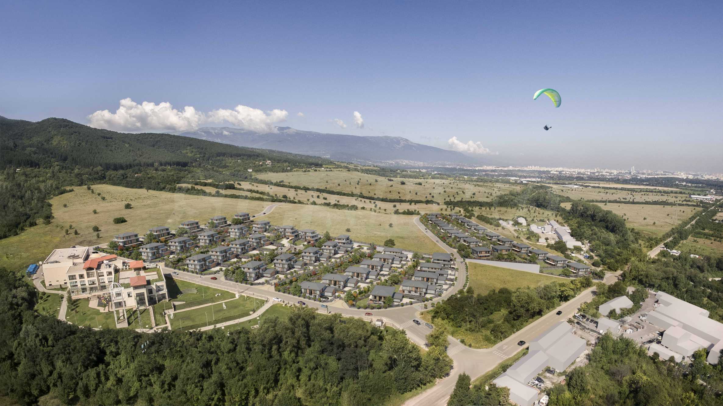 It is located in one of the cleanest areas around Sofia. The lack of intensive traffic and heavy industry, the protected forest massifs of the Lozenska Mountain and the favorable air currents ensure freshness and purity of the air all year round. The altitude of 650 to 750 meters guarantees more sunny hours and long, picturesque sunsets.
