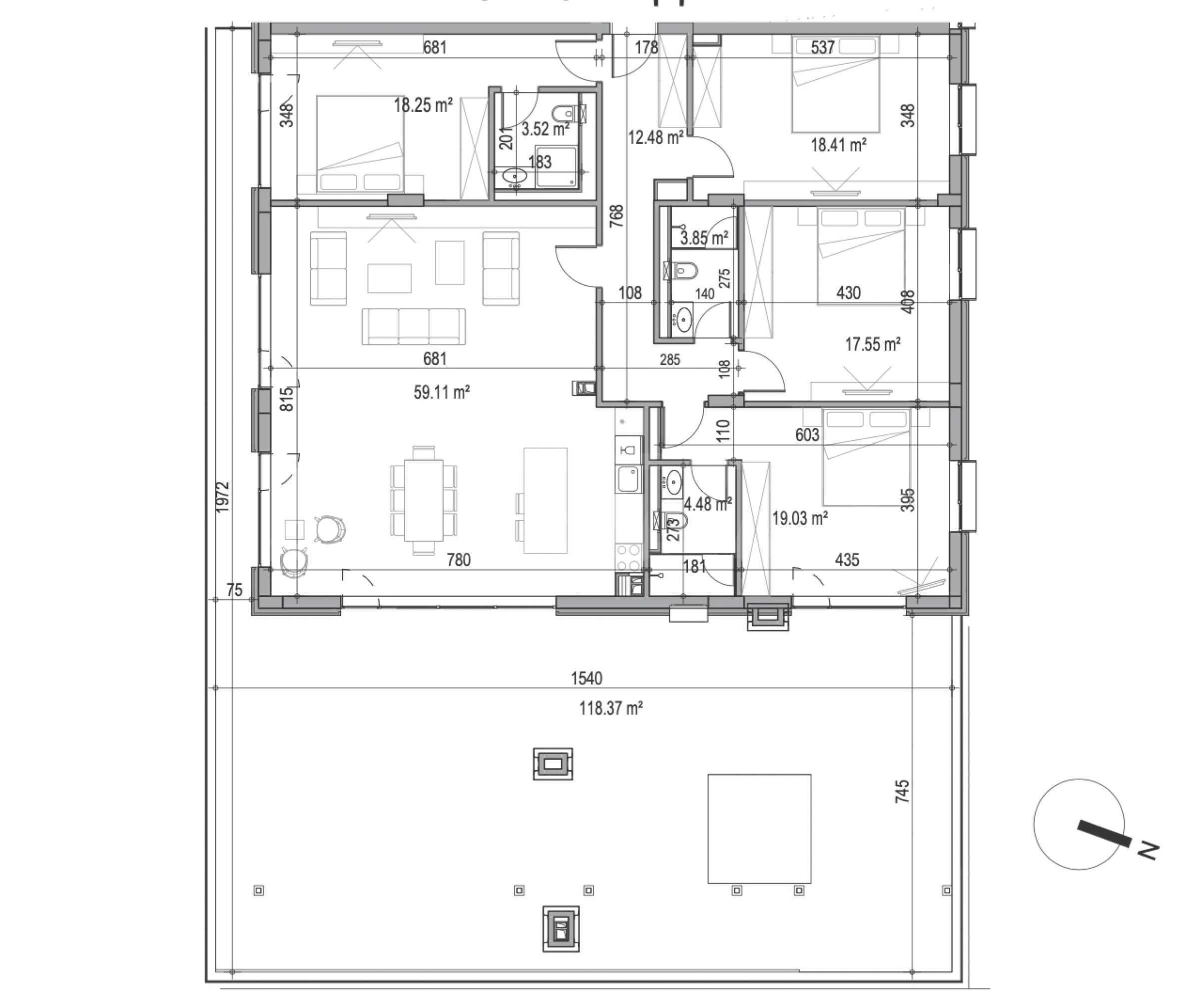 - 4 bedrooms + 1 wardrobe with enough space for everything you need;