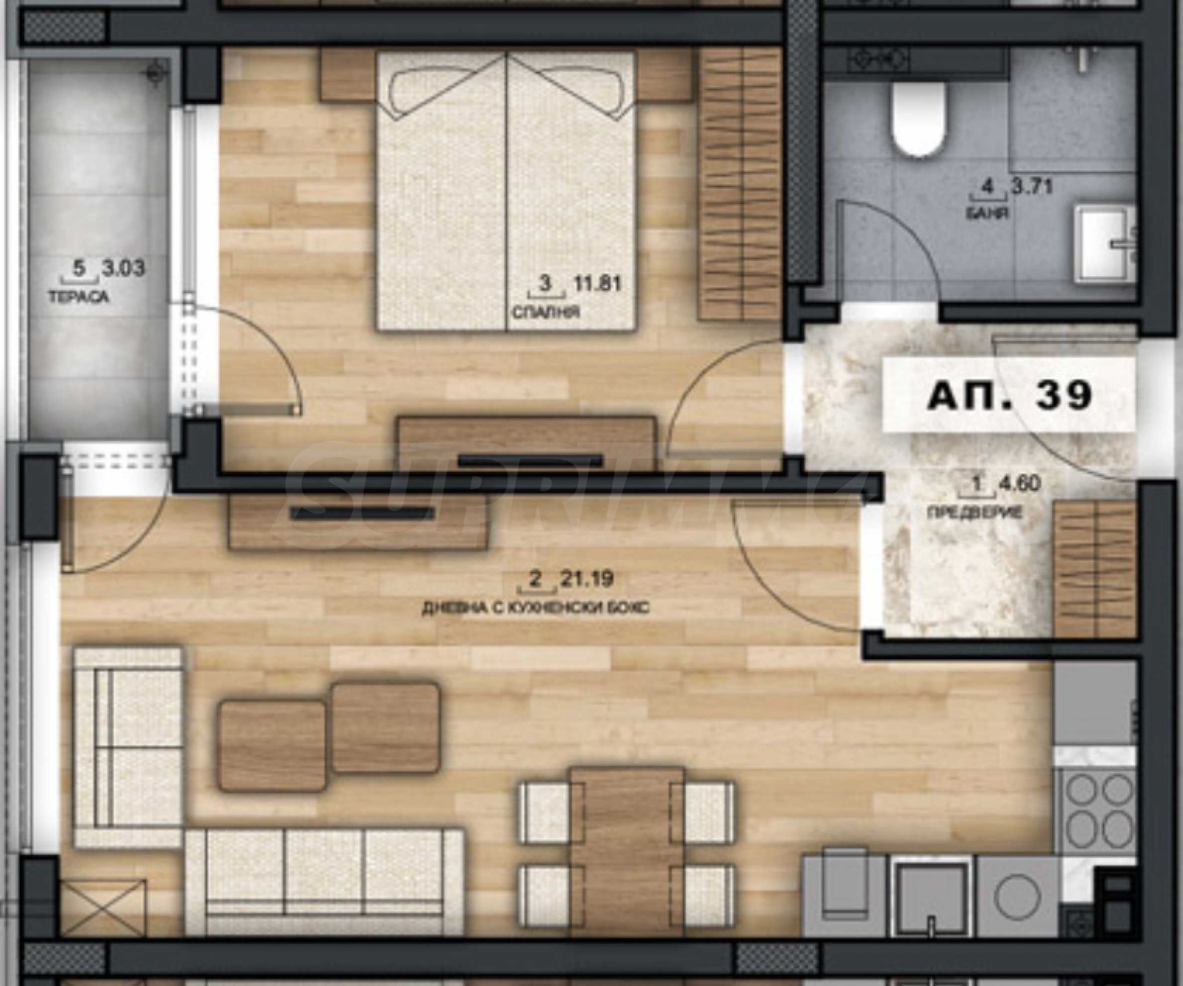 We exclusively present a spacious one-bedroom apartment with a view of the centuries-old oak tree and Vitosha Mountain, in a new building, part of the modern Eternal complex in the "Malinova Dolina" district.