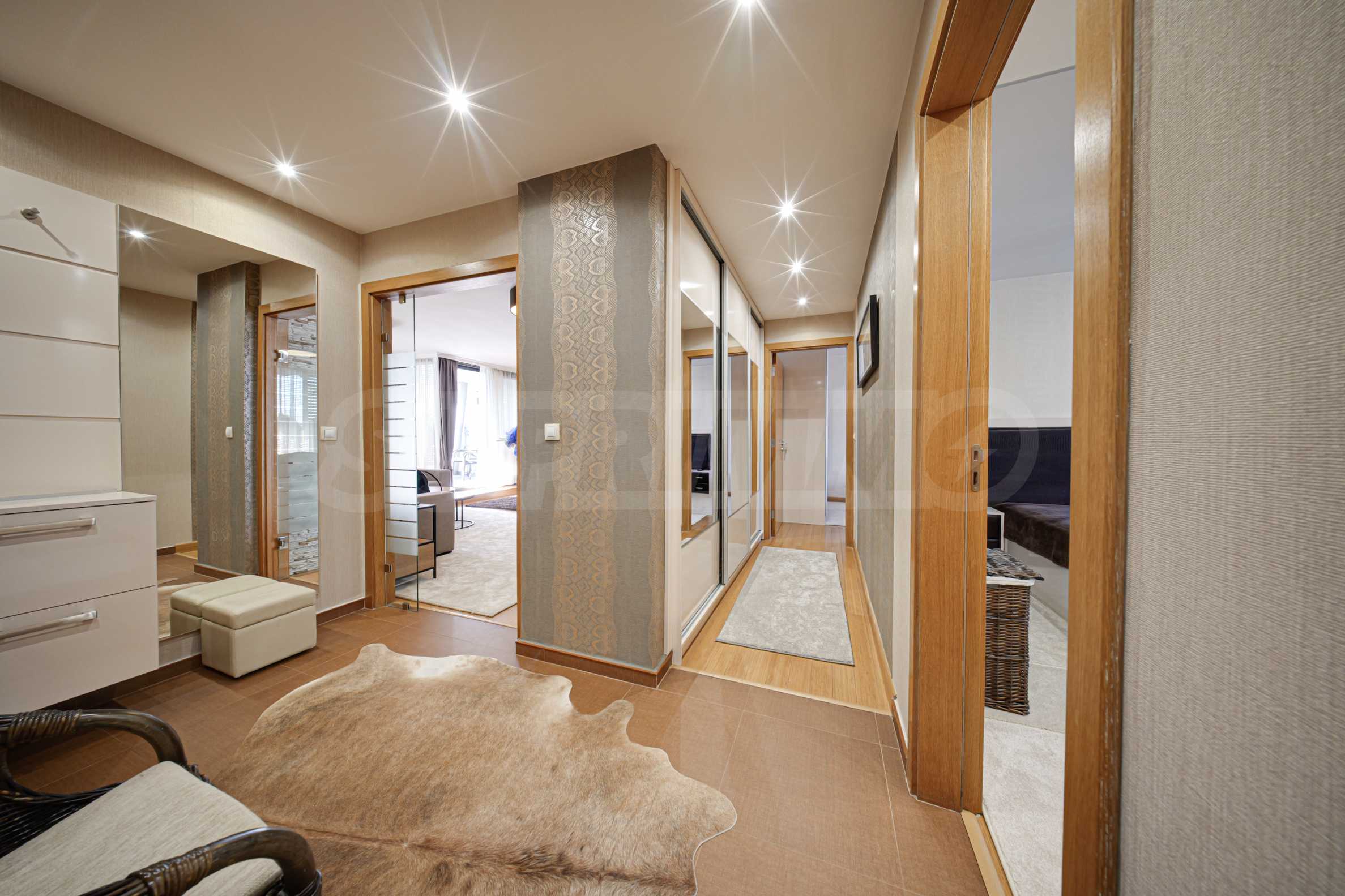 Distribution: individual entrance hall in the common areas of the building, where the elevator stops, entrance hall in the apartment, living room with kitchen, two bedrooms, two bathrooms, terrace with panoramic views of Vitosha Mountain.