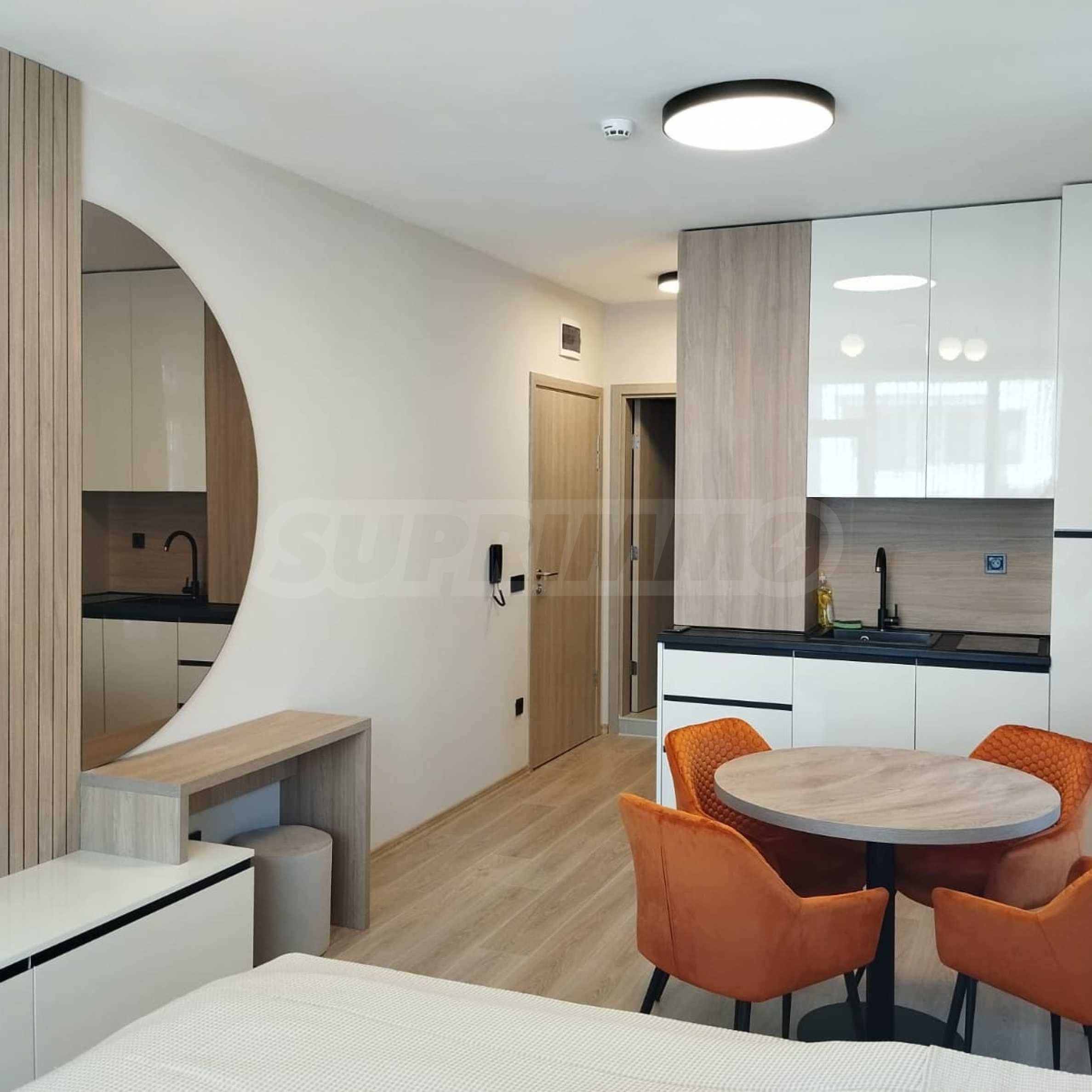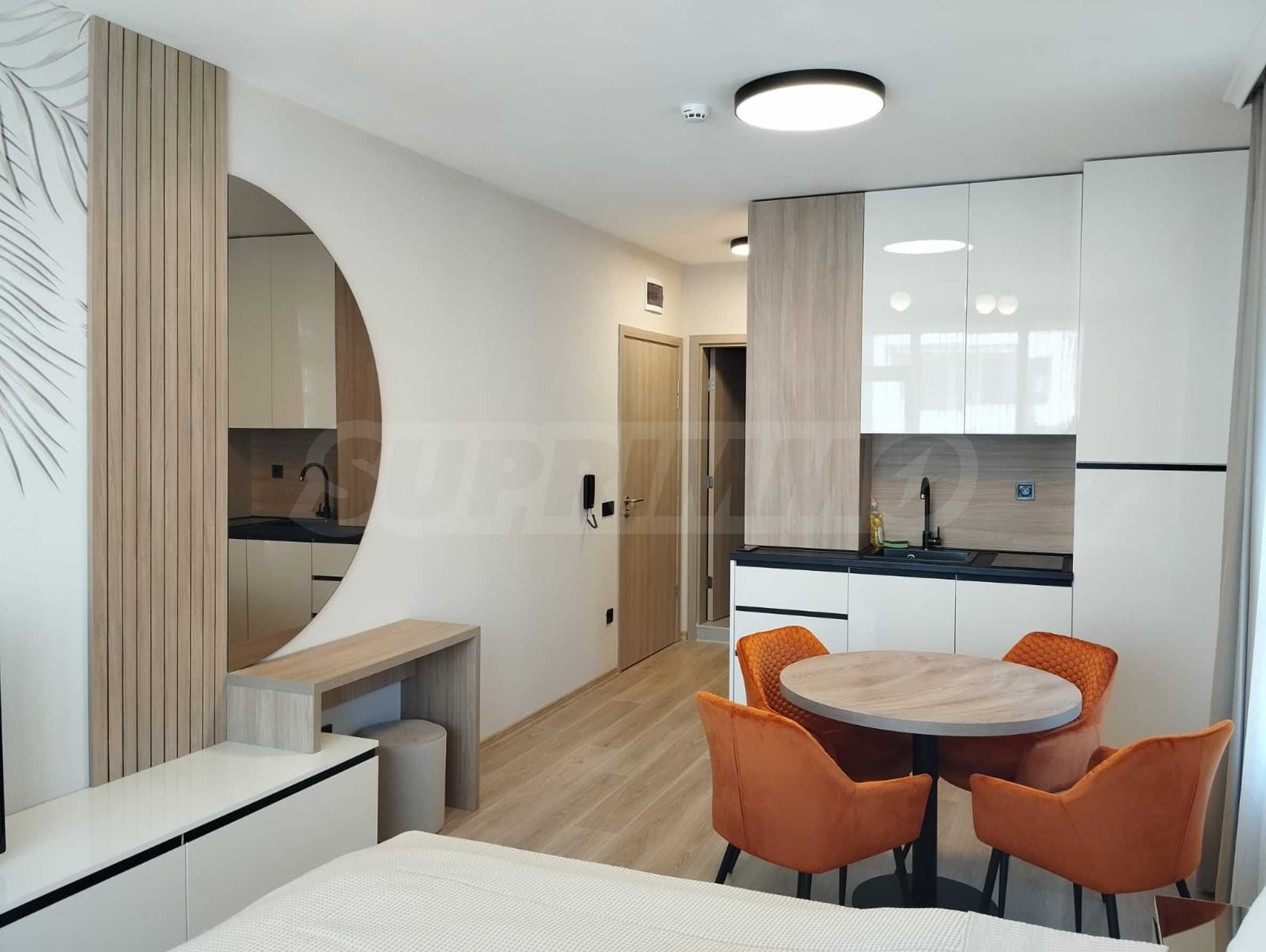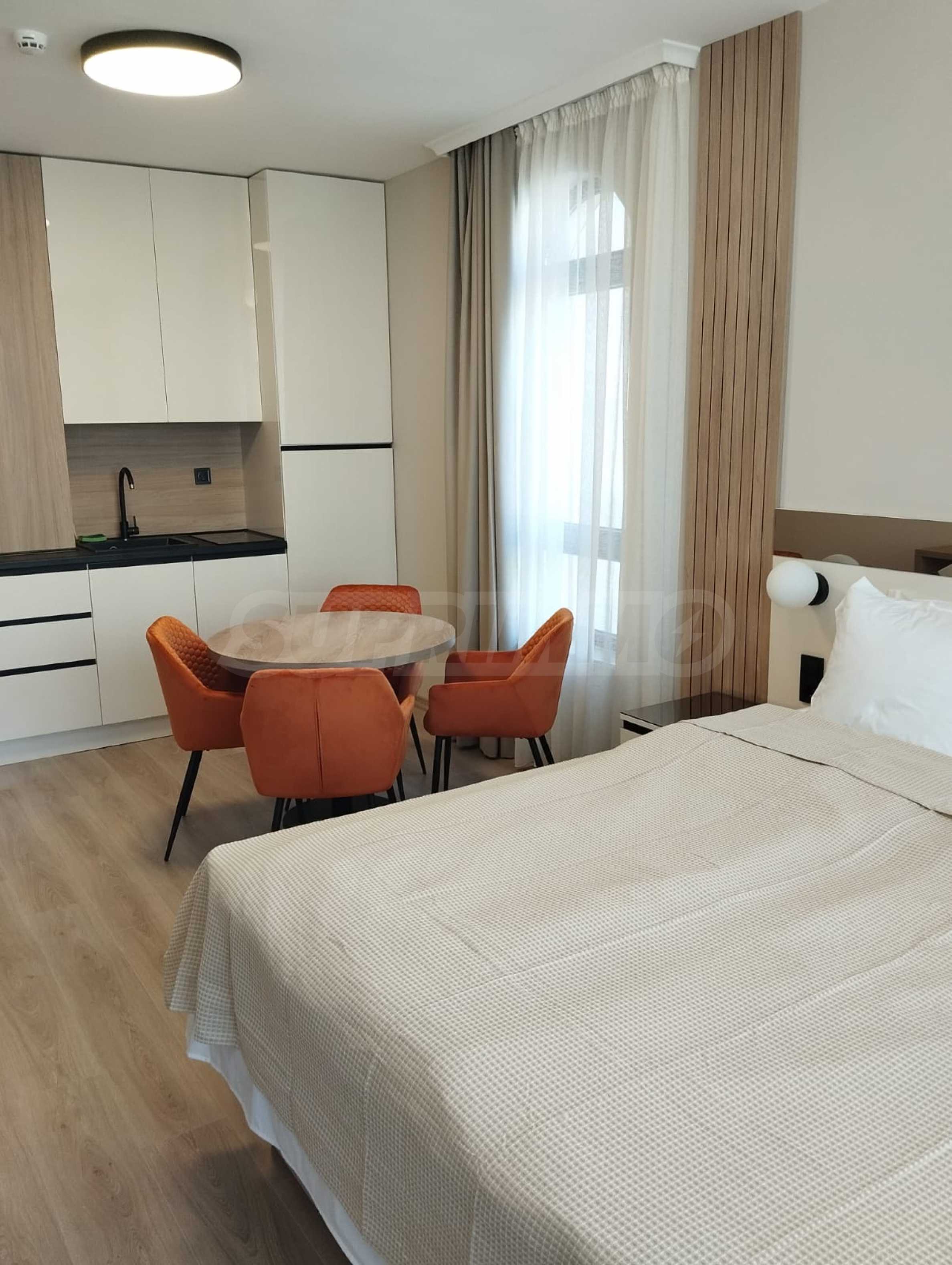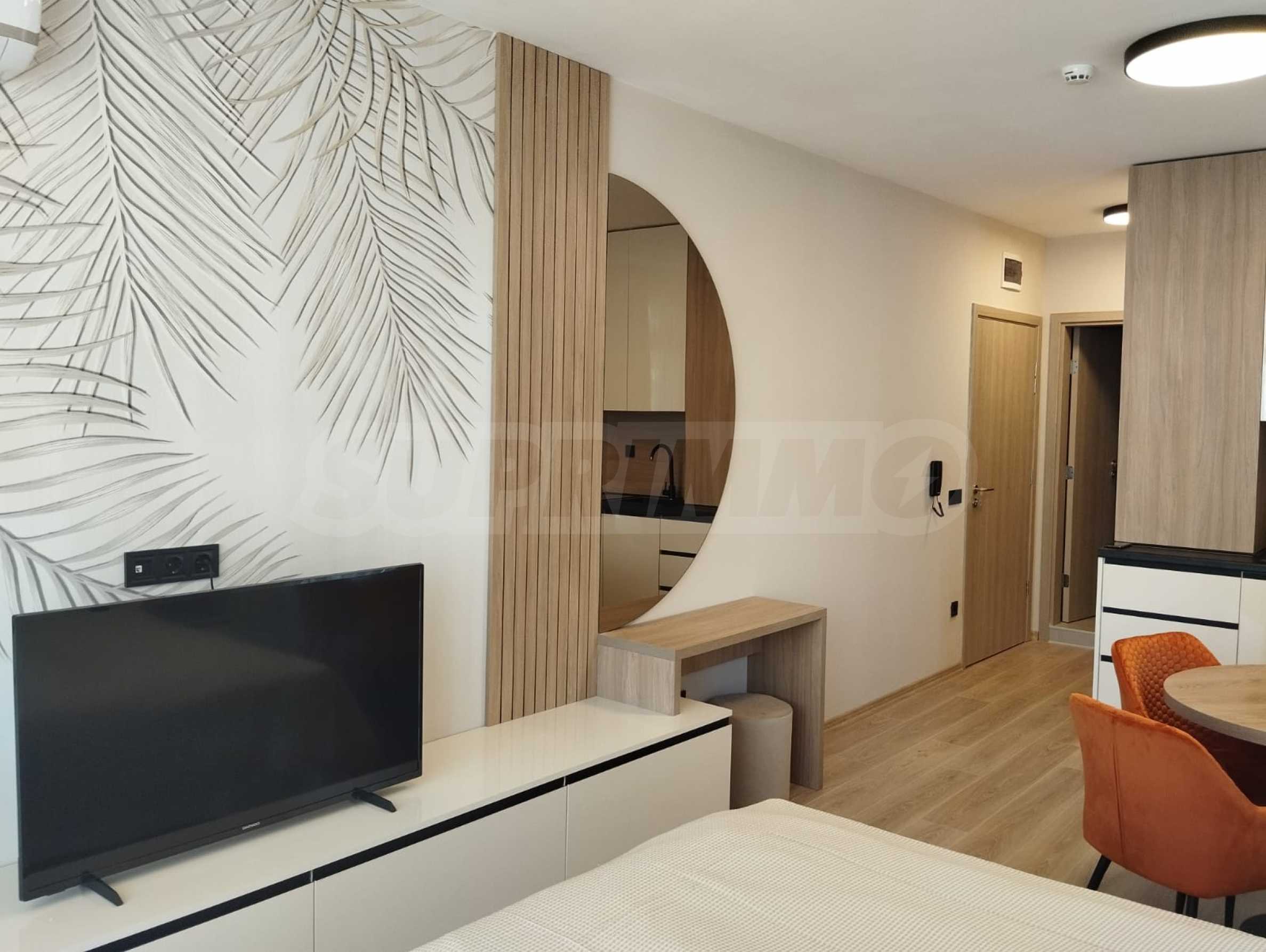 The cozy complex consists of two 6-story buildings, located opposite each other and two single-story buildings, positioned on both sides of the main entrance. Two new 6-story buildings are under construction, which will be parallel to the others and together will form a complete circle around the pool and garden of the complex. The complex has a swimming pool with a children's section and a second, separate children's pool, a playground and a reception. There is a wonderful restaurant, and there are parking spaces next to the building. In the area there is a large supermarket, a SPA and fitness center, restaurants and other amenities.