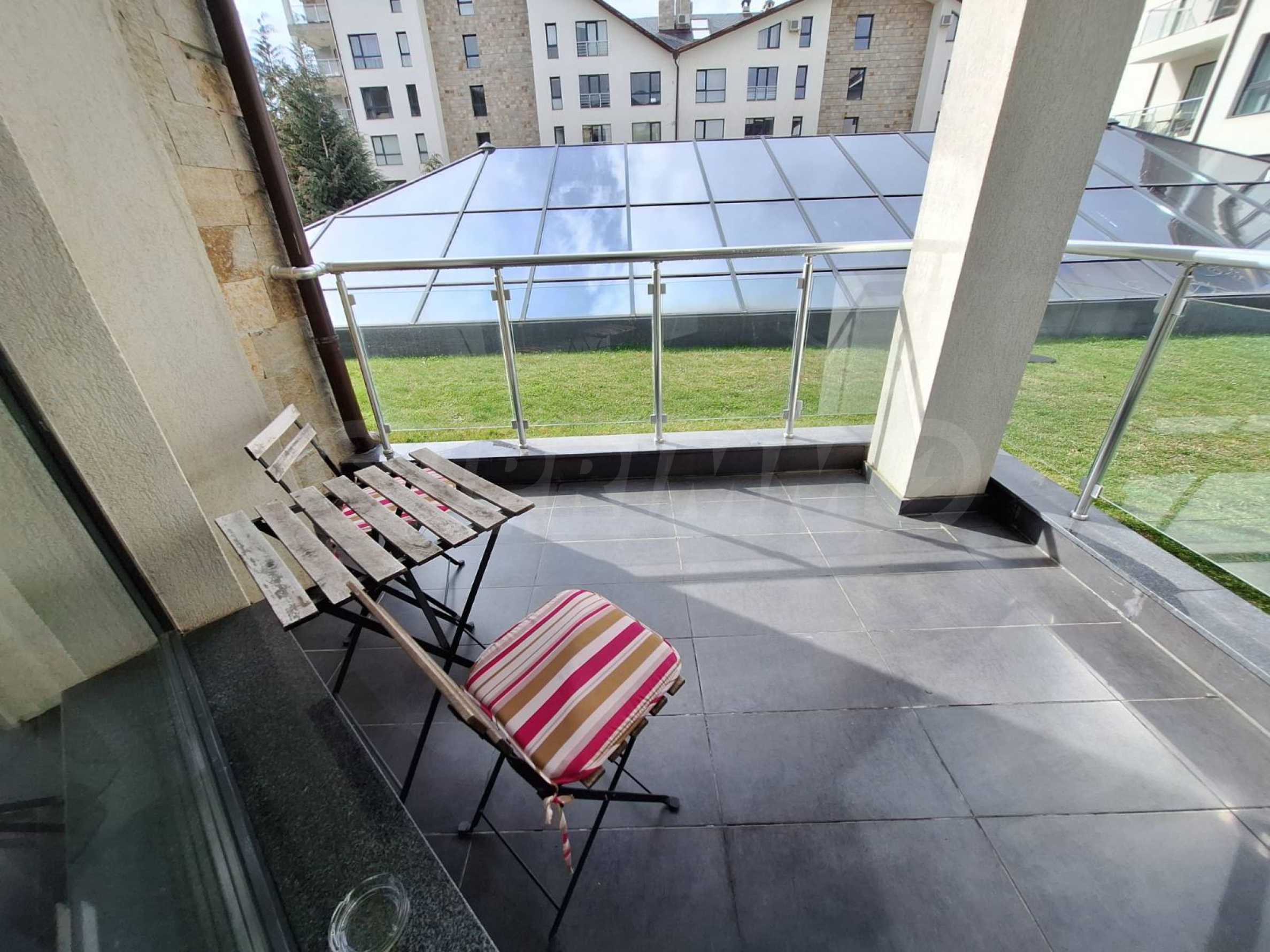 The property is located in one of the most luxurious year-round complexes in Bansko, with an extensive SPA area with massage services and panoramic views of Bansko, Pirin and Rila. The complex has a restaurant serving traditional Bulgarian, Italian and European cuisine, and a children's play area. The apart-hotel has 2 bars: a sports bar with a pool table and table football and a panoramic lobby bar with 50 seats, which offers mountain views. Guests can relax in the indoor swimming pool and hot tub or take advantage of the equipped fitness room and conference room (100-120 seats), as well as the following services - laundry, ironing, dry cleaning, safes at the reception, car rental, excursions and transfers.