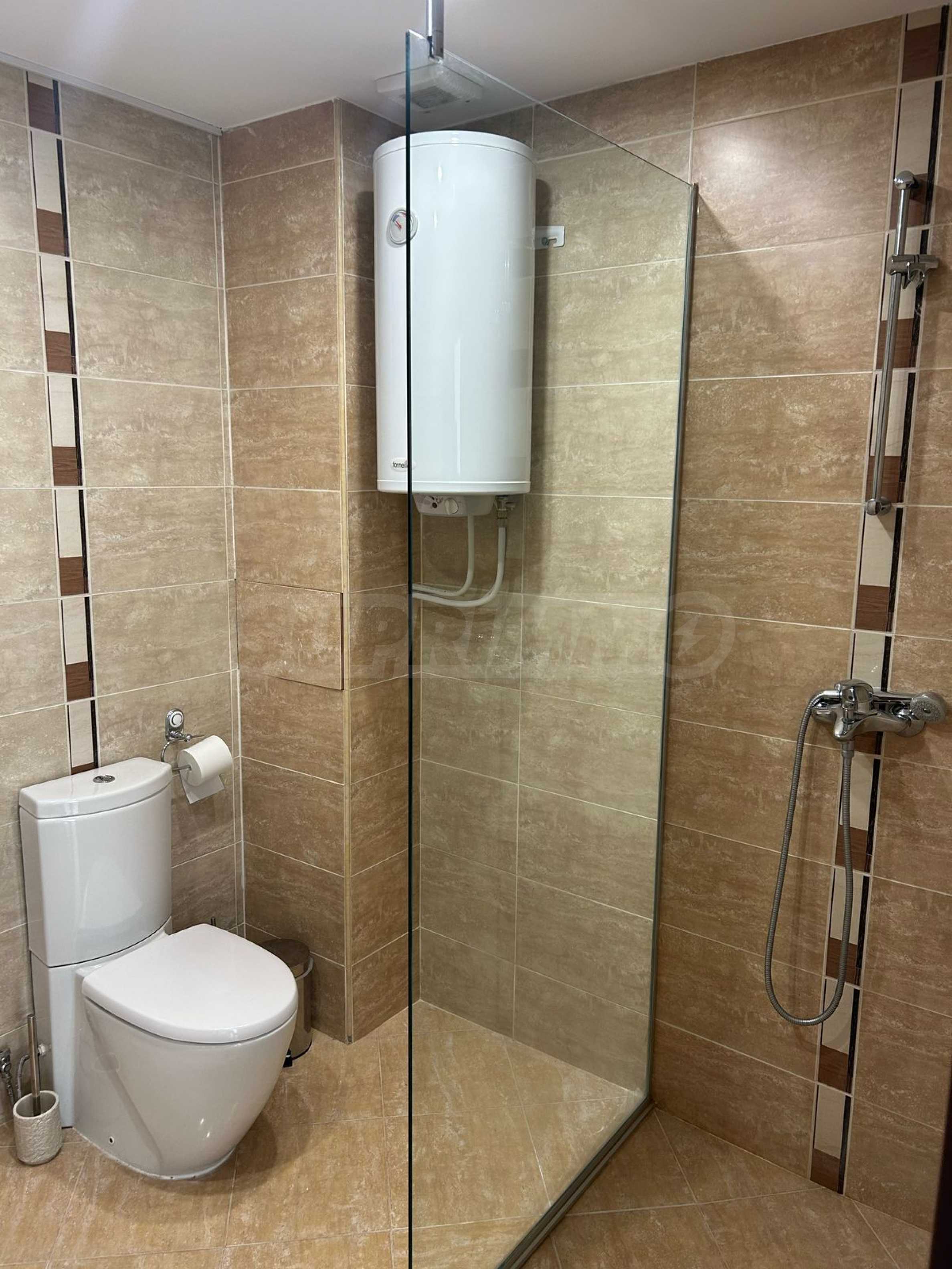 Second bedroom with wardrobe, bathroom with shower cabin and toilet.