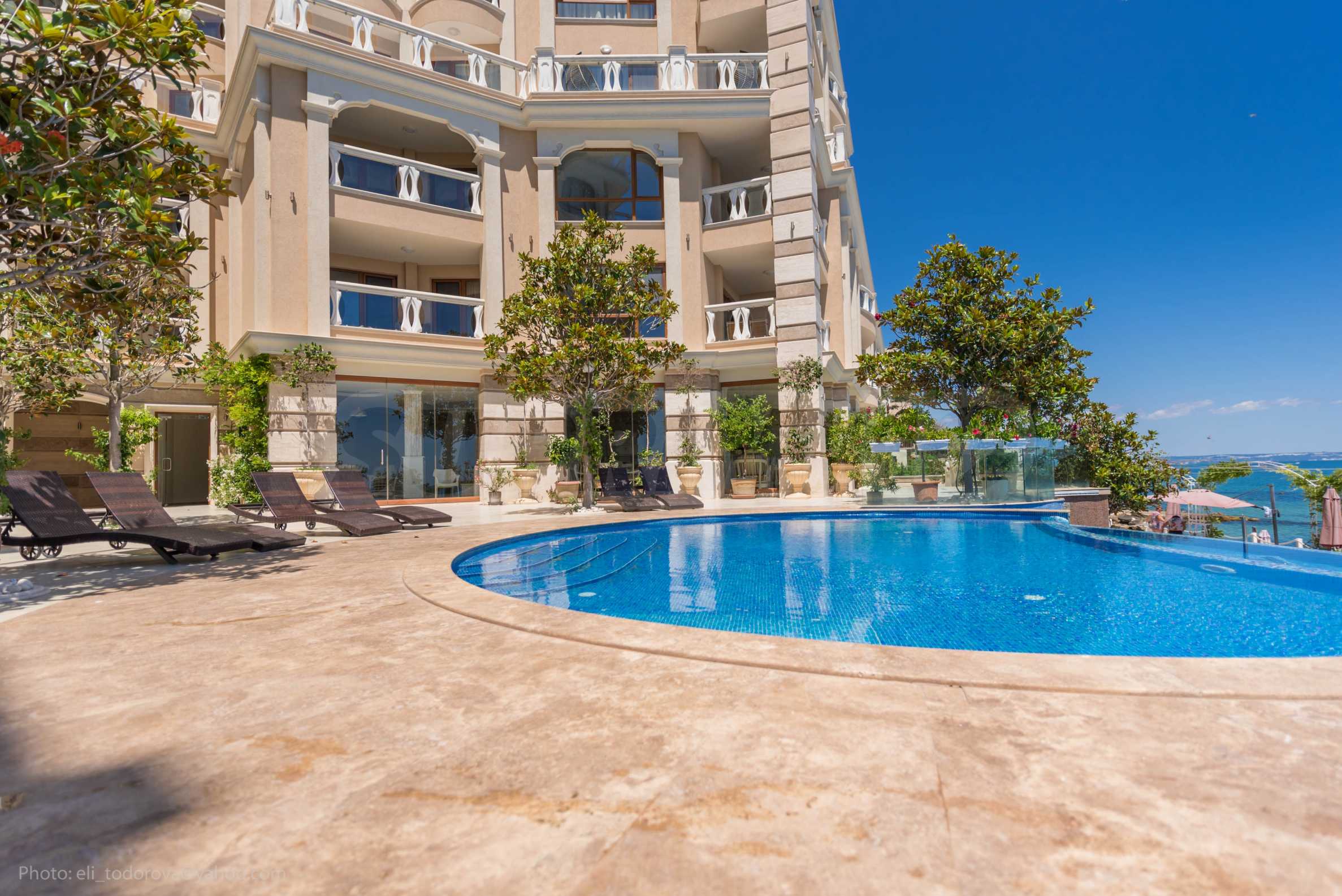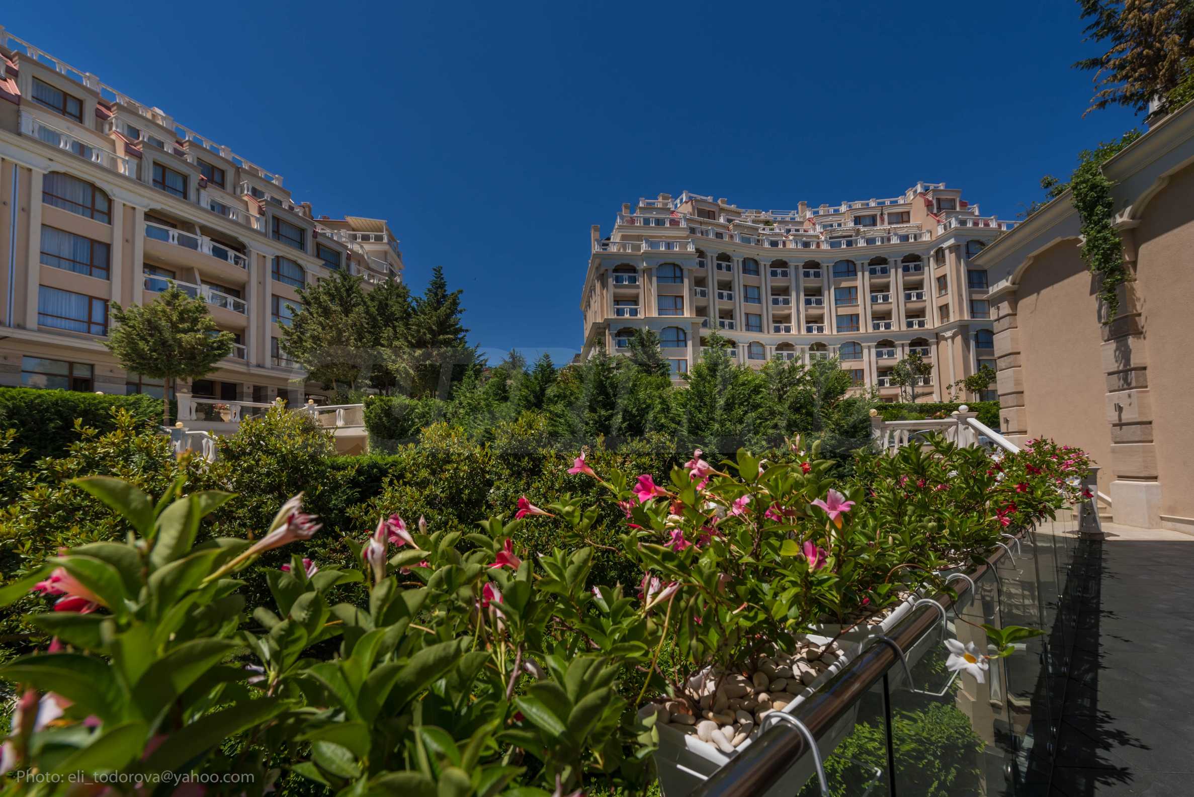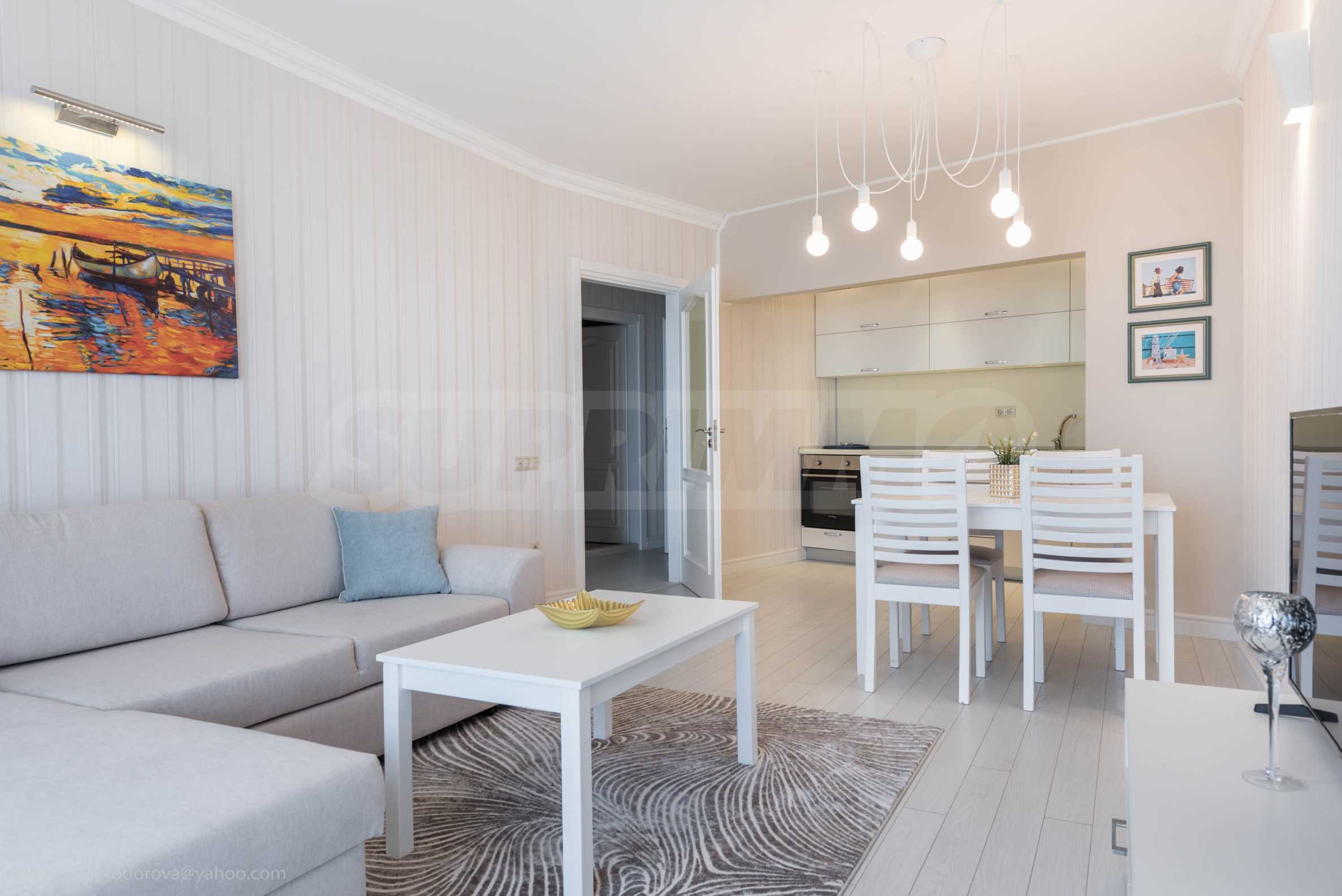 The overall concept of the complex is connected with high-class service and amenities on the seashore. Designed in a classic architectural style, with clean forms and a richly landscaped garden with selected vegetation, with attention to every detail, this distinctive complex is suitable for long-term stays in any season.
