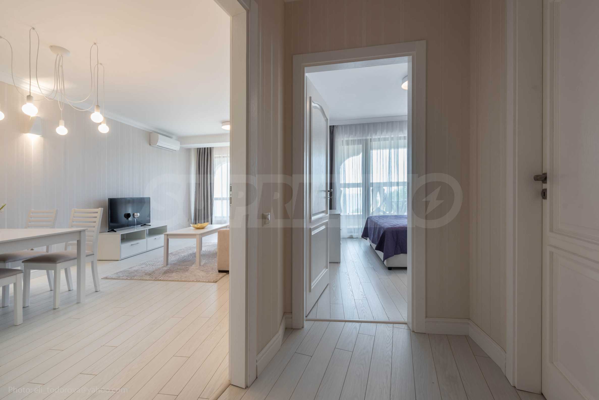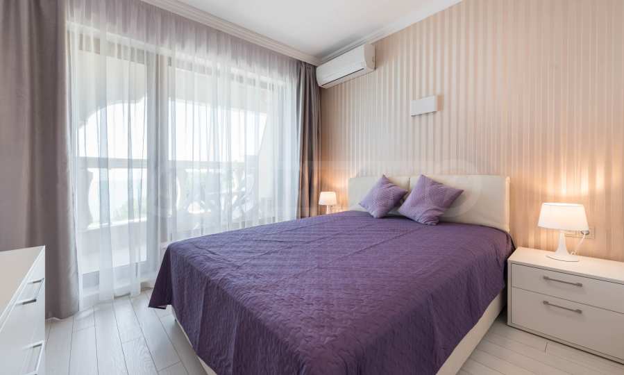 The apartment with a total area of 76.52 m2 is located on a high floor in a luxury complex on the seashore, with a swimming pool and a private beach.