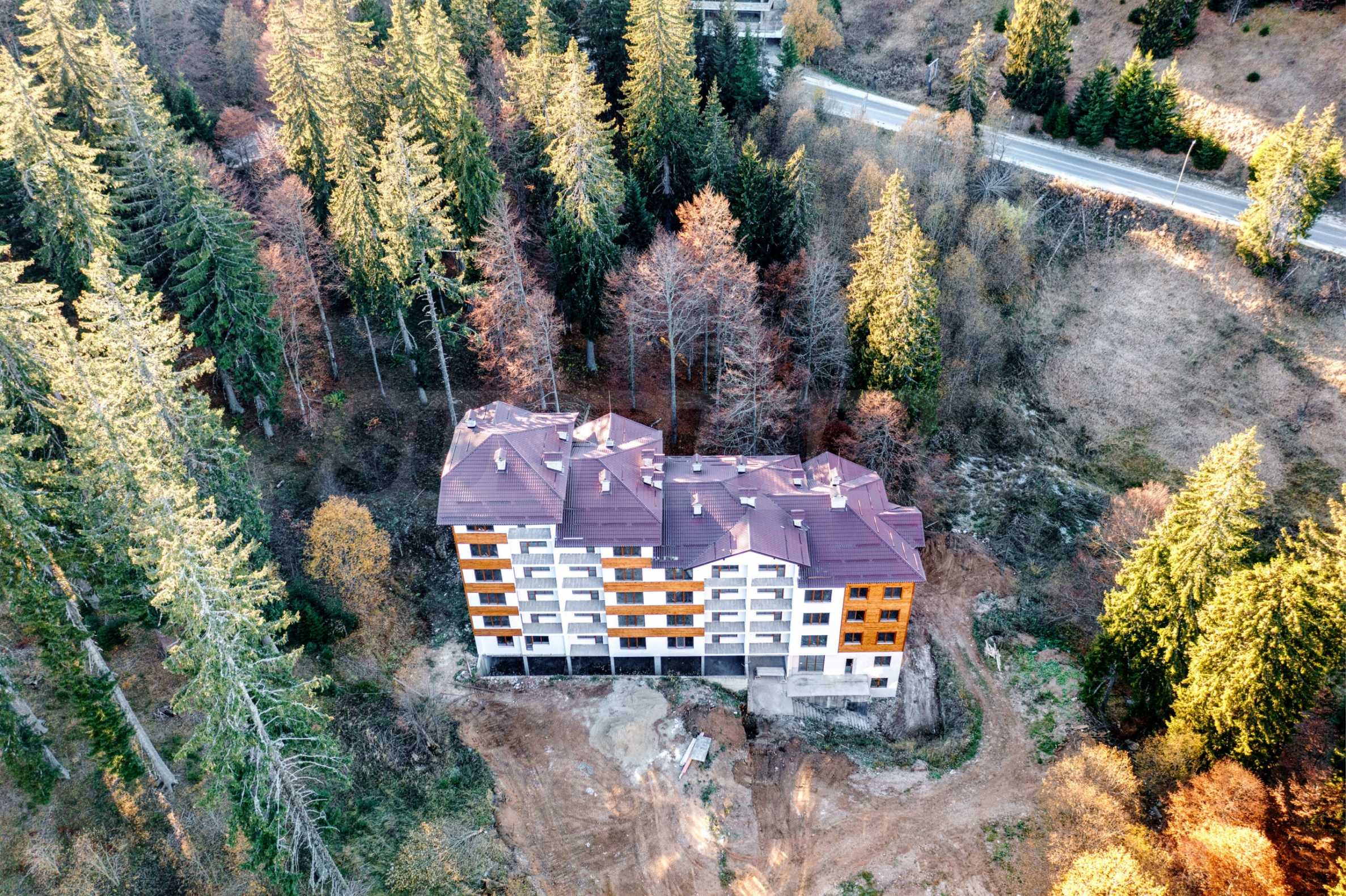 The central lively area is a 15-minute walk away, and Ski Center 1 (Studenets) is 1.7 km away. In the area around the building there are villa villages, hotels, shops and restaurants, which create a comfortable environment for both recreation and long-term use. Thanks to the convenient access, the distance to Plovdiv Airport is 80 km, and to Sofia Airport – 230 km.
