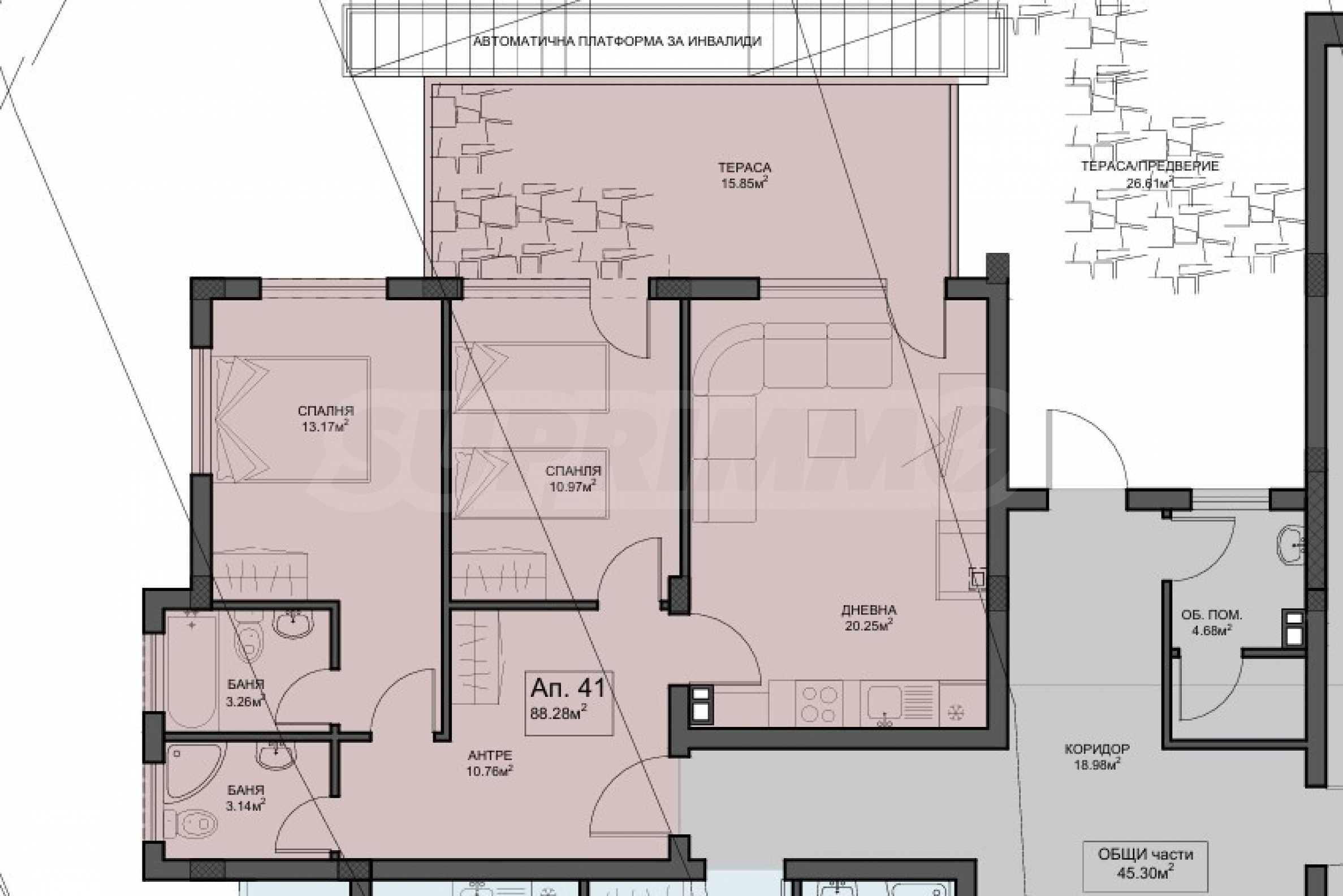 - large terrace, common to two of the rooms - 15.85 m2.