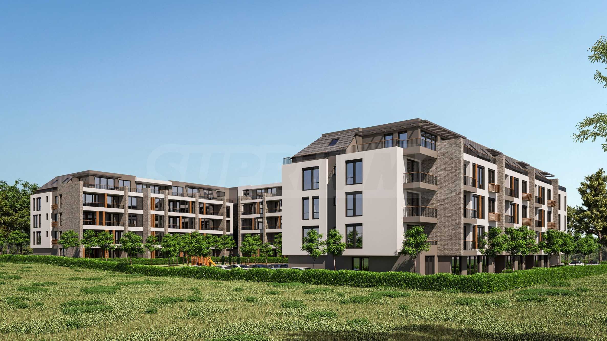 The building has 5 floors and offers two-, three- and four-room apartments with bright and sunny rooms, with an area of 63.04 m2. to 131.48 m2. The complex consists of three entrances: