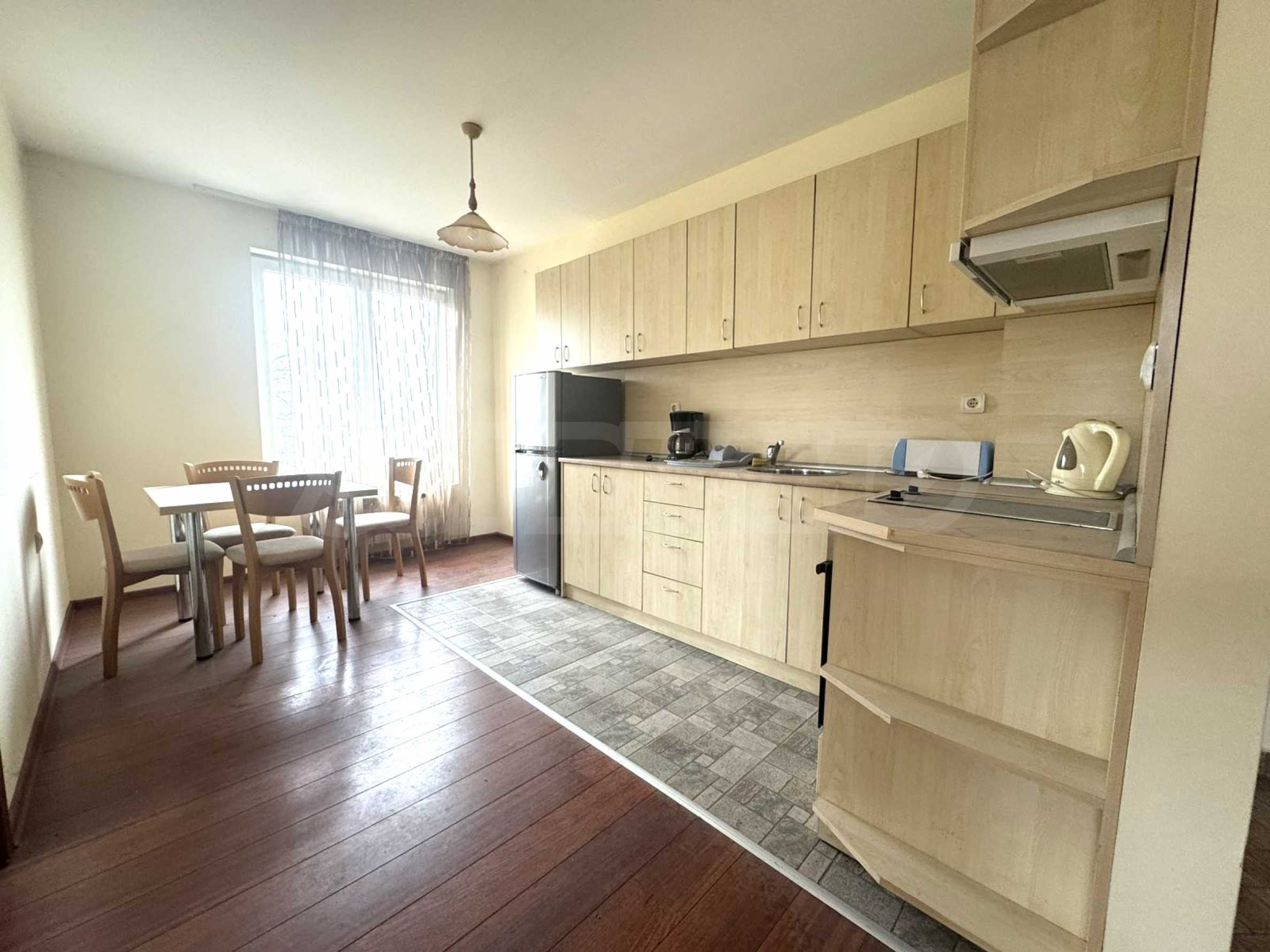 We present a fully furnished and equipped one-bedroom apartment for sale in the 3-star operating complex “Bojurland” in Bansko.