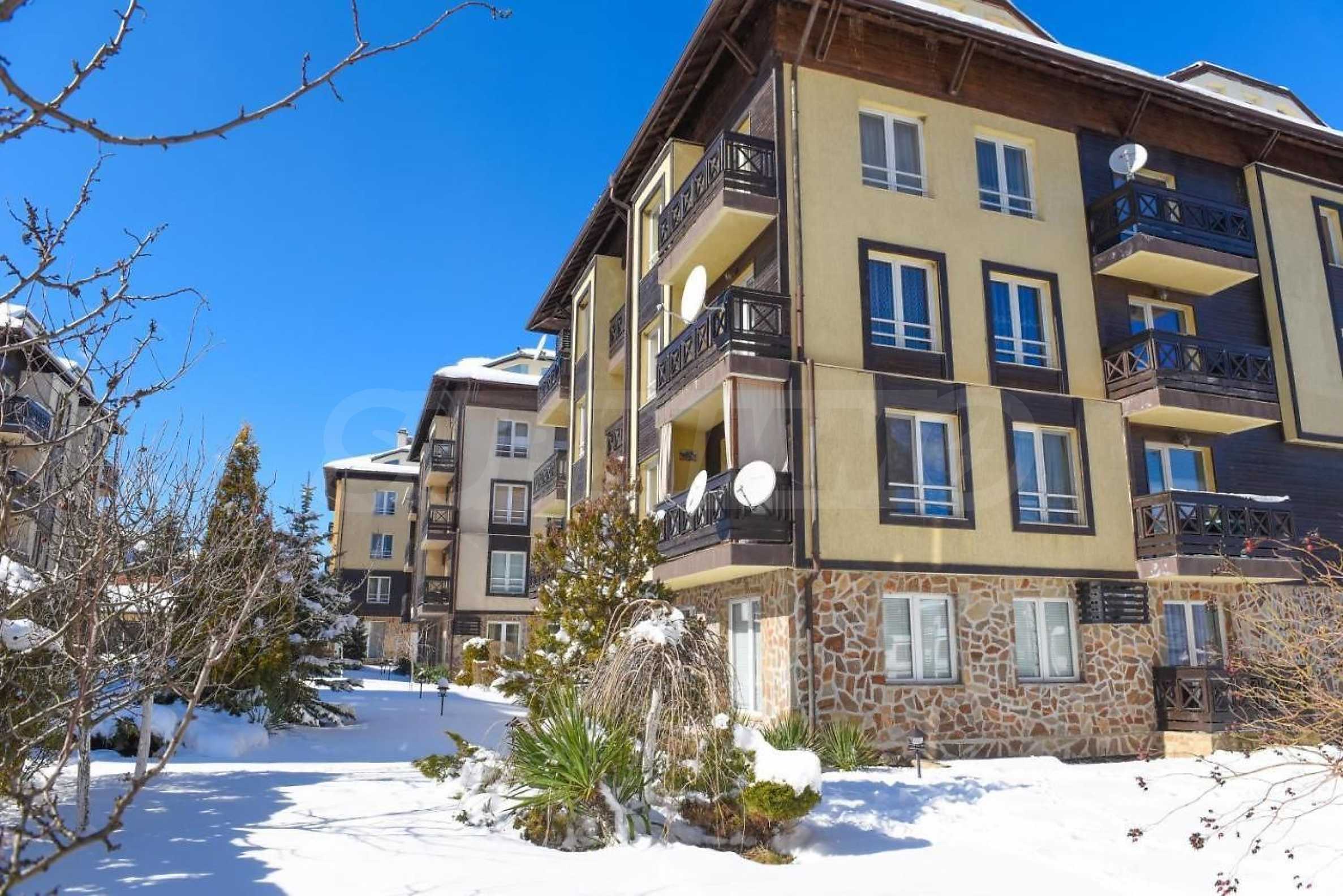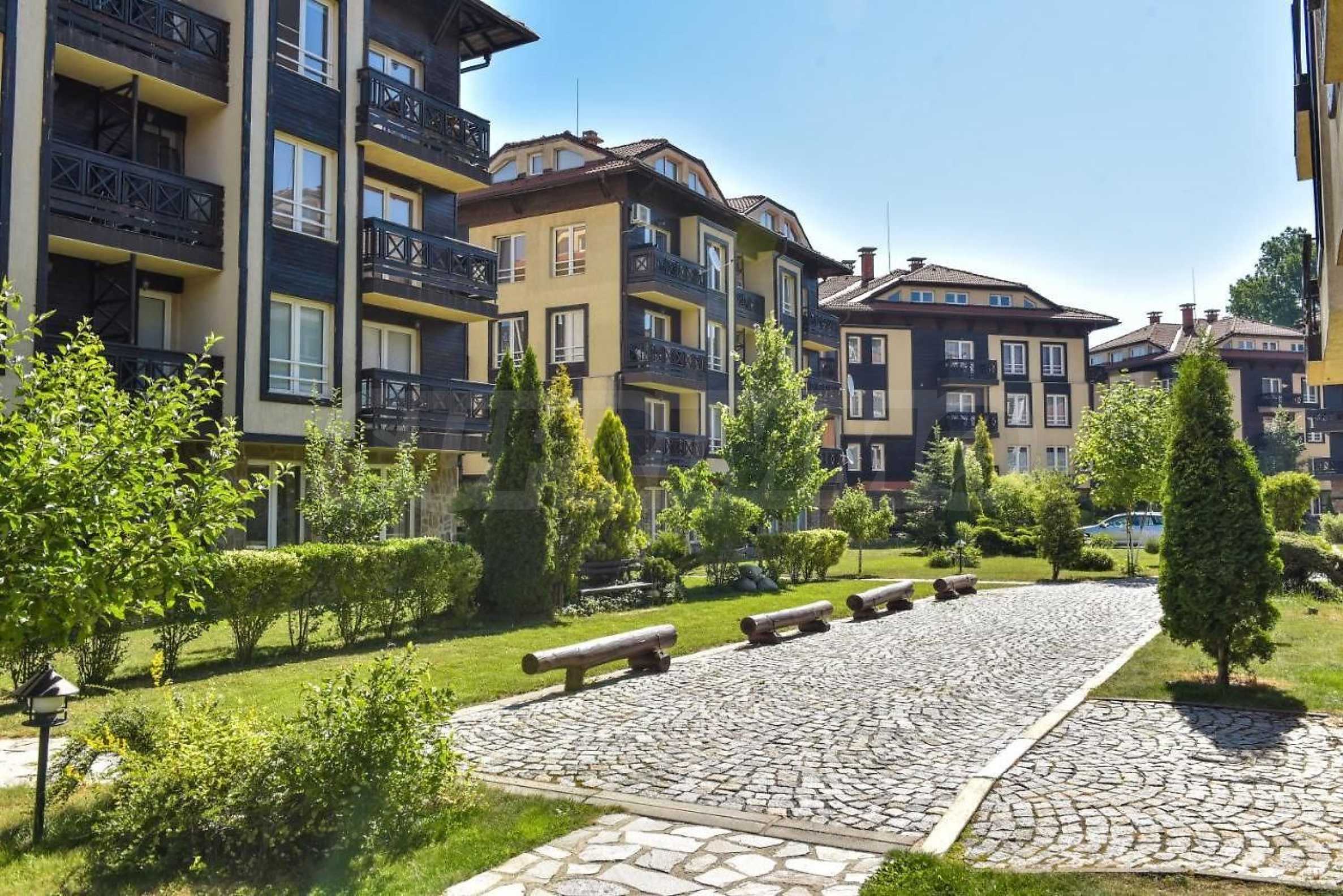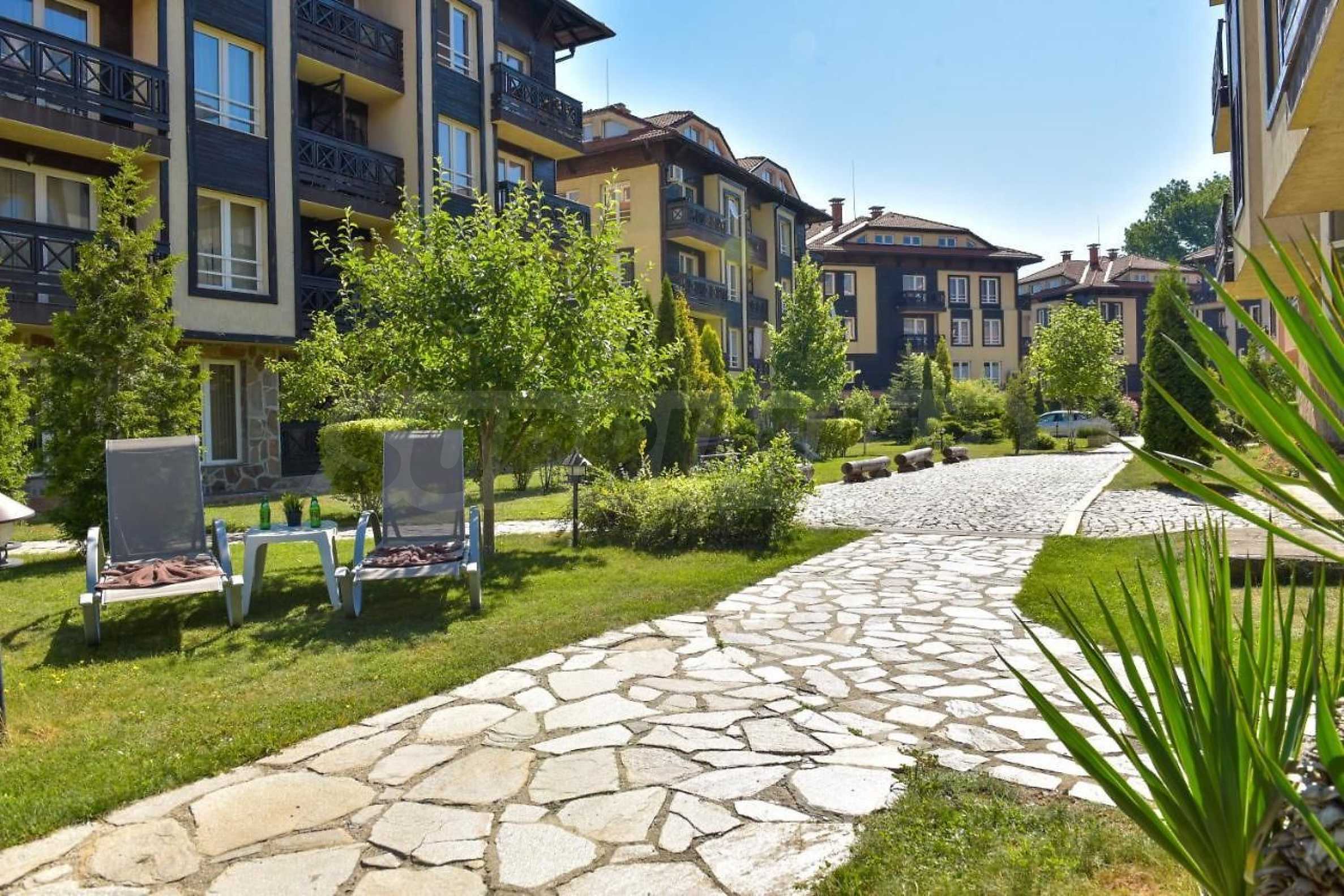 The houses are designed in the traditional Bansko style: natural stone and wood are used extensively throughout the complex.