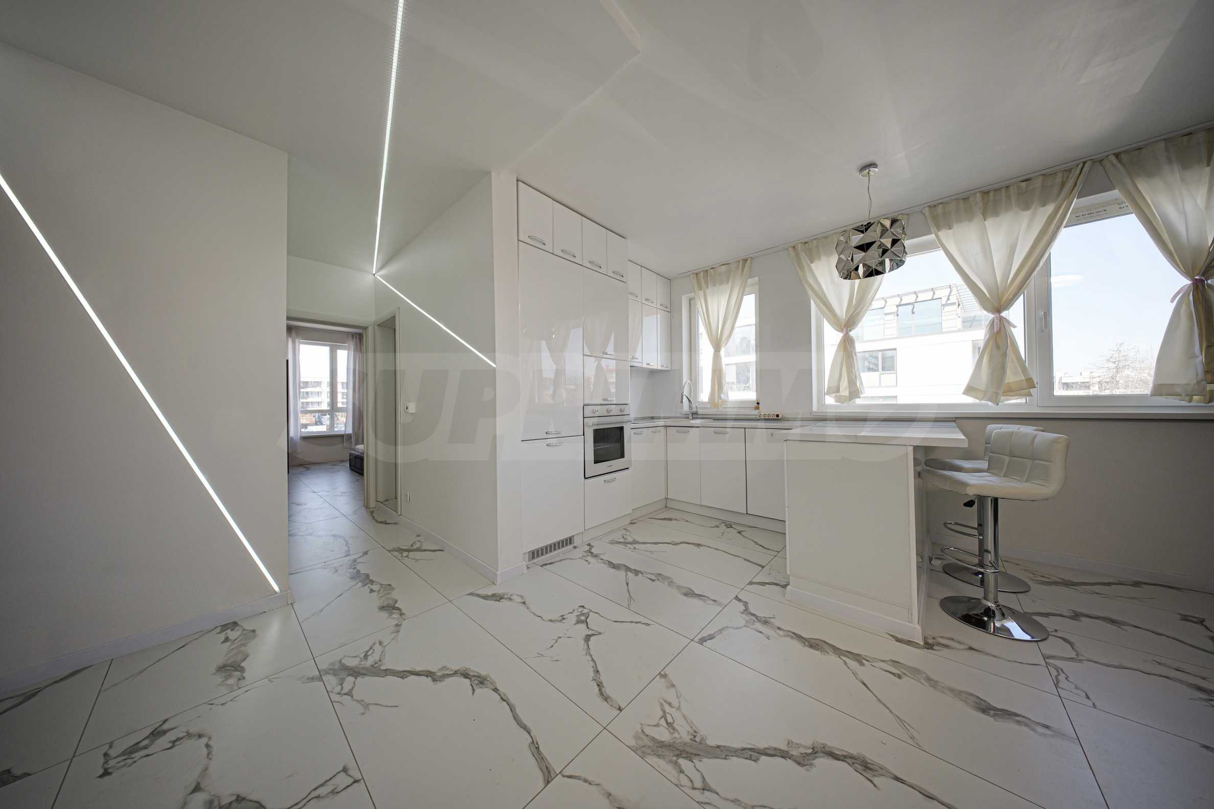 - Modern interior, finished in light tones, with a feeling of spaciousness and elegance;