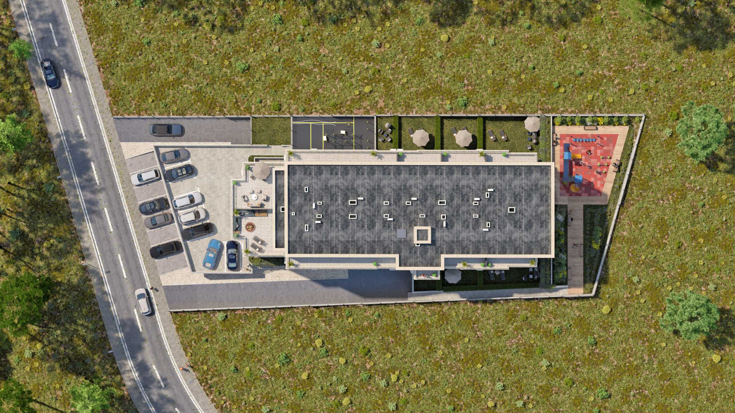 The complex is a gated community with a total built-up area of 5000 sq m, located on a plot of land with an area of 2390 sq m. and offers one-, two-, three- and four-bedroom apartments, garages and parking spaces. The apartments range in size from 40.29 sq m to 94.82 sq m, some of which have their own yard.