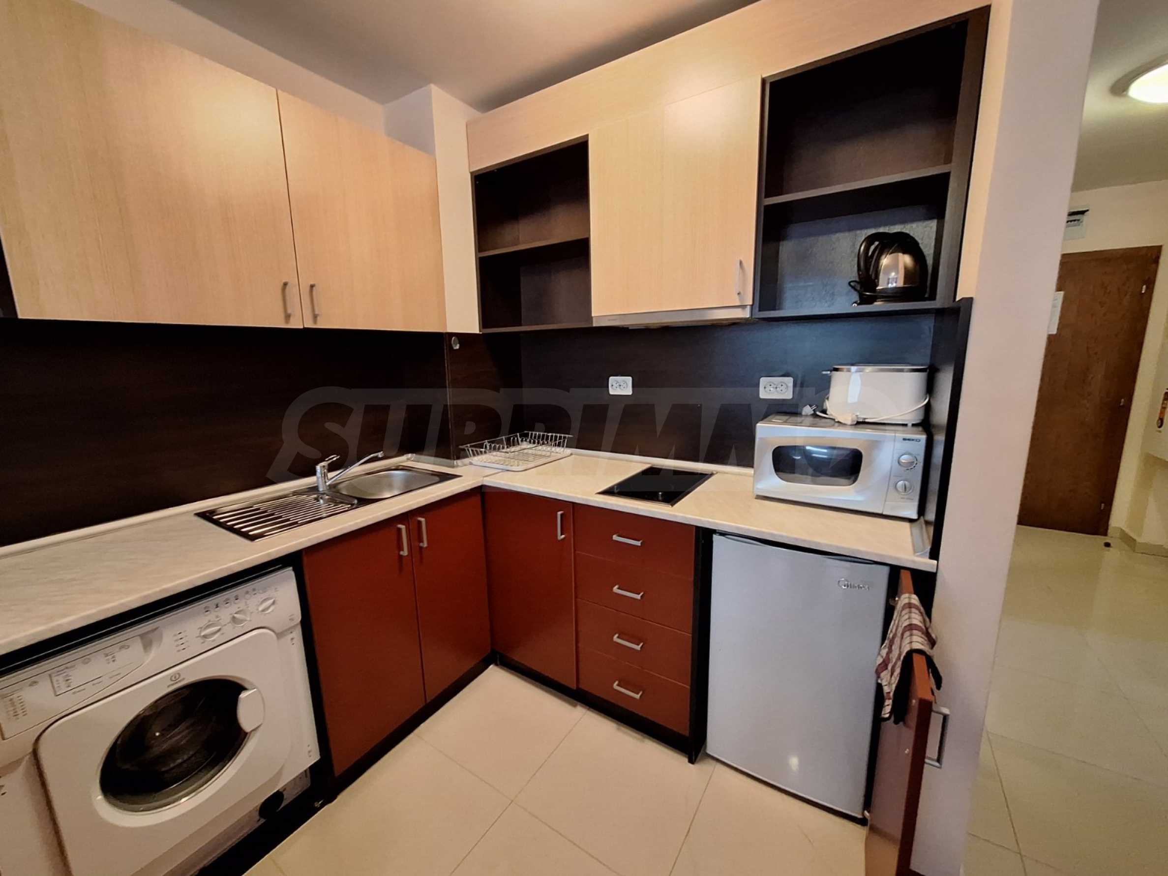 Kitchenette equipped with 2 hotplates, extractor hood, microwave, refrigerator, toaster, electric kettle, washing machine and cooking utensils;