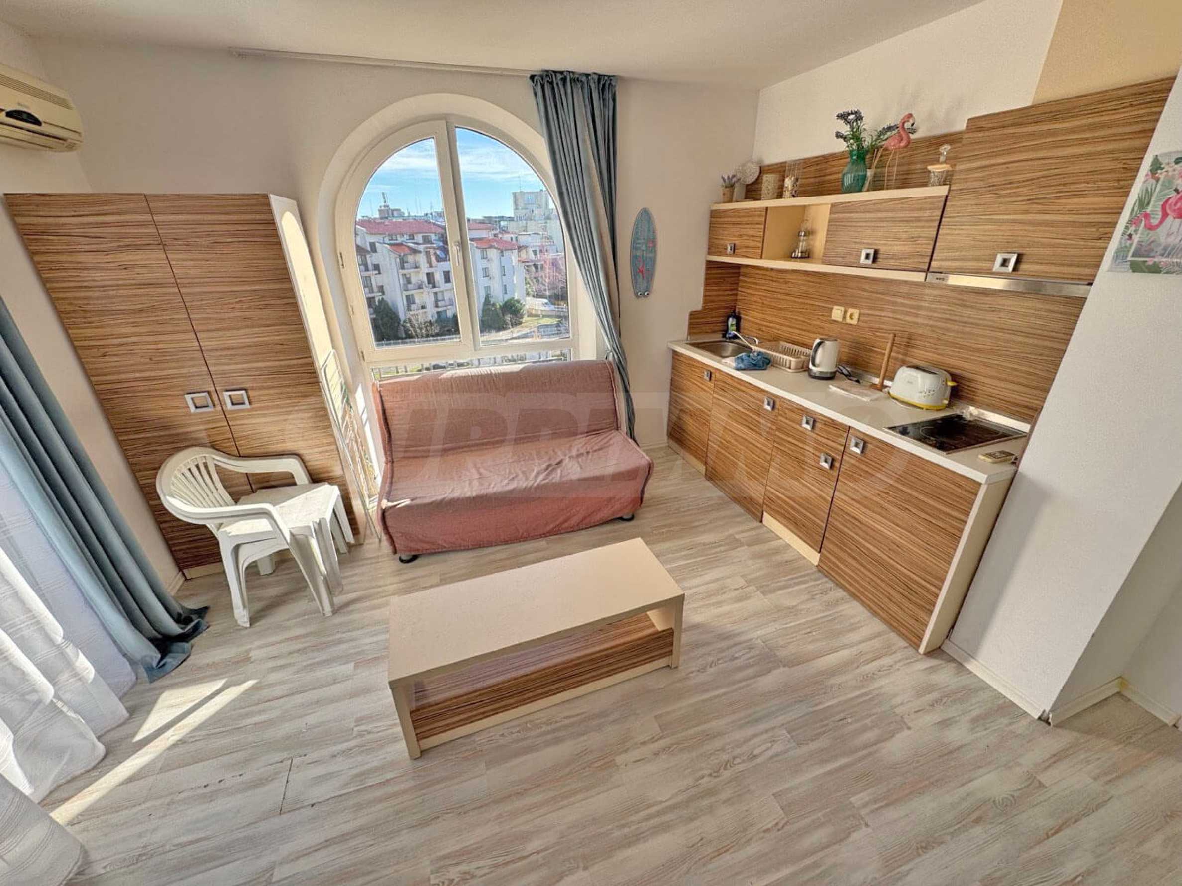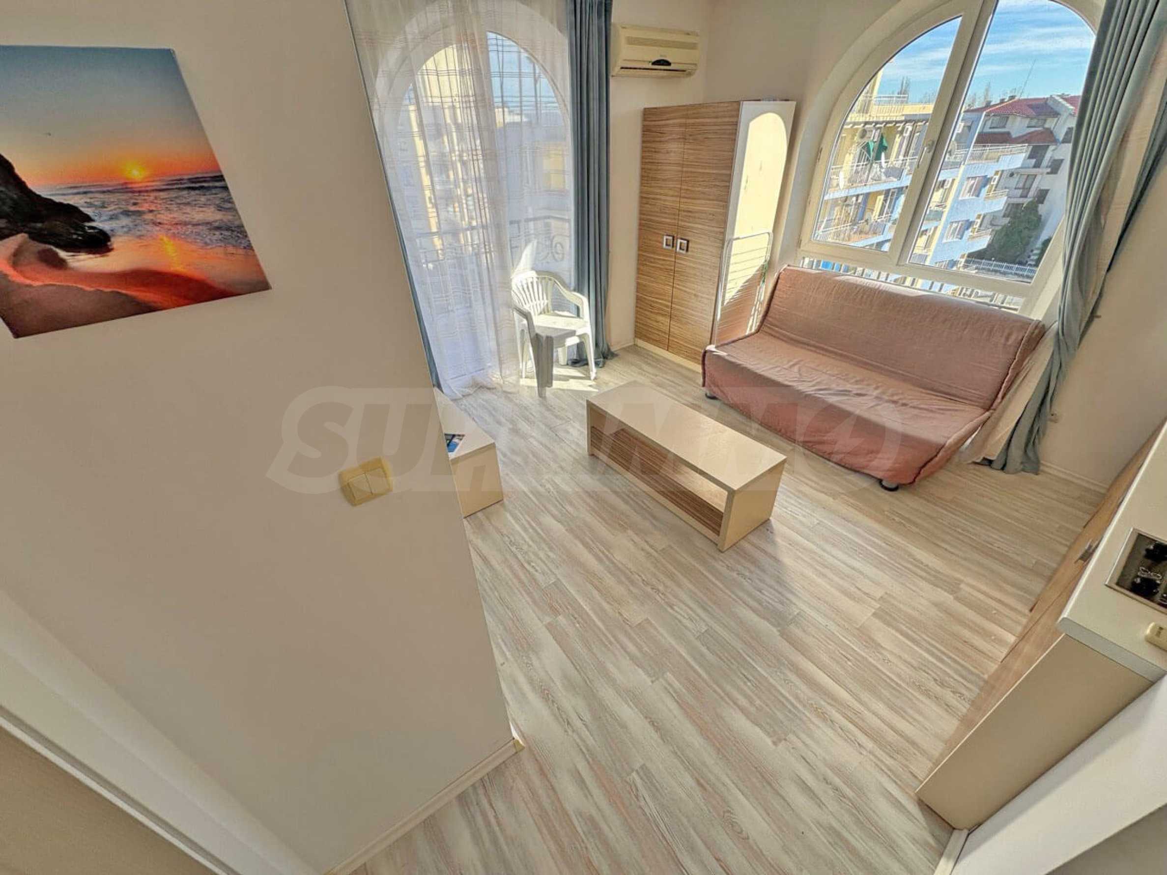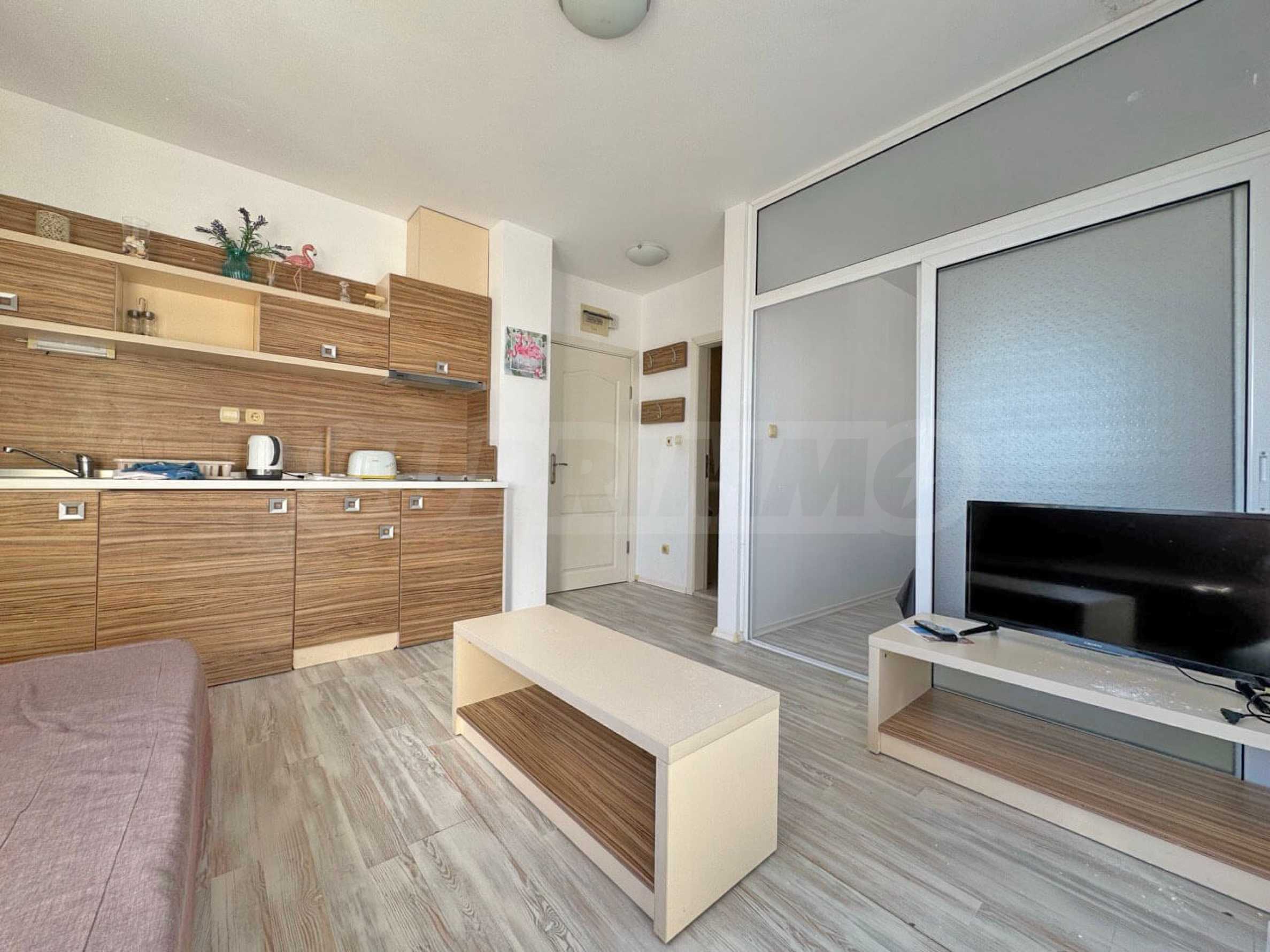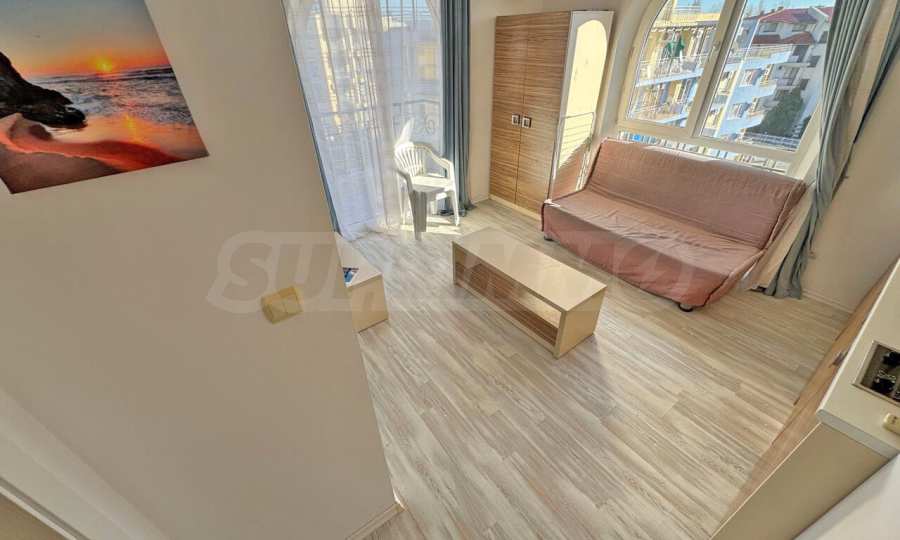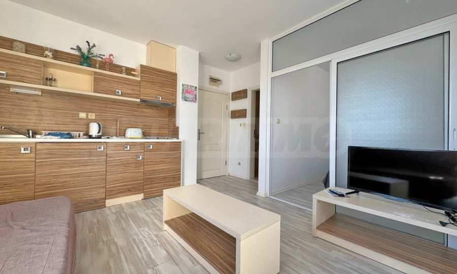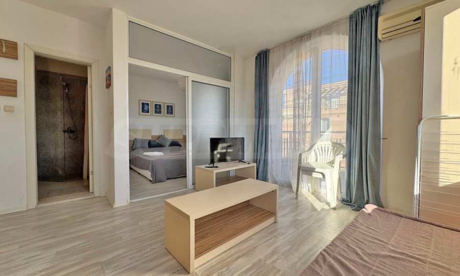 We present a cozy and bright, furnished one-bedroom apartment for sale, in an excellent seaside complex with an outdoor pool in Sunny Beach.