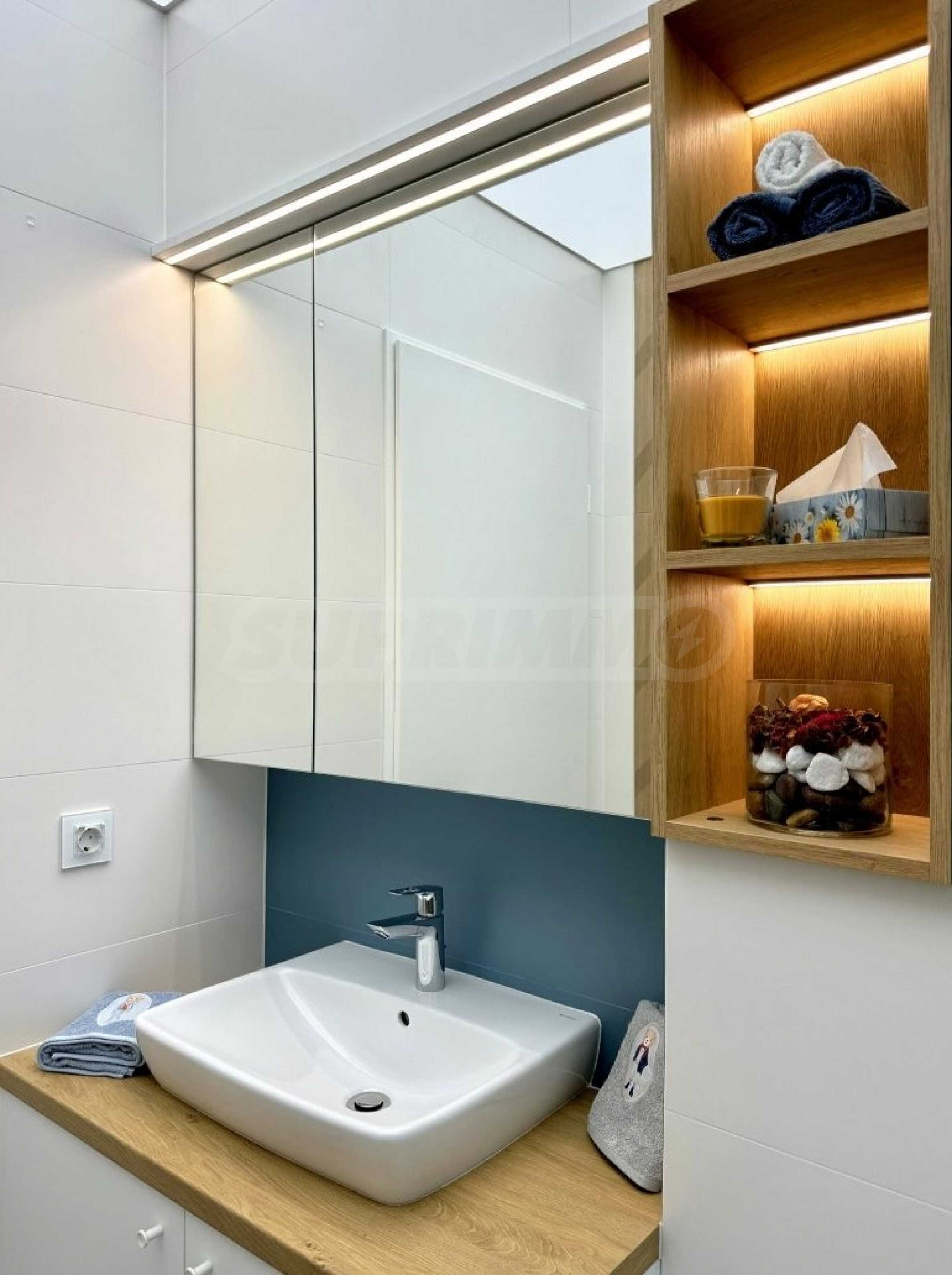 - two bathrooms with modern sanitary facilities and high-quality materials;