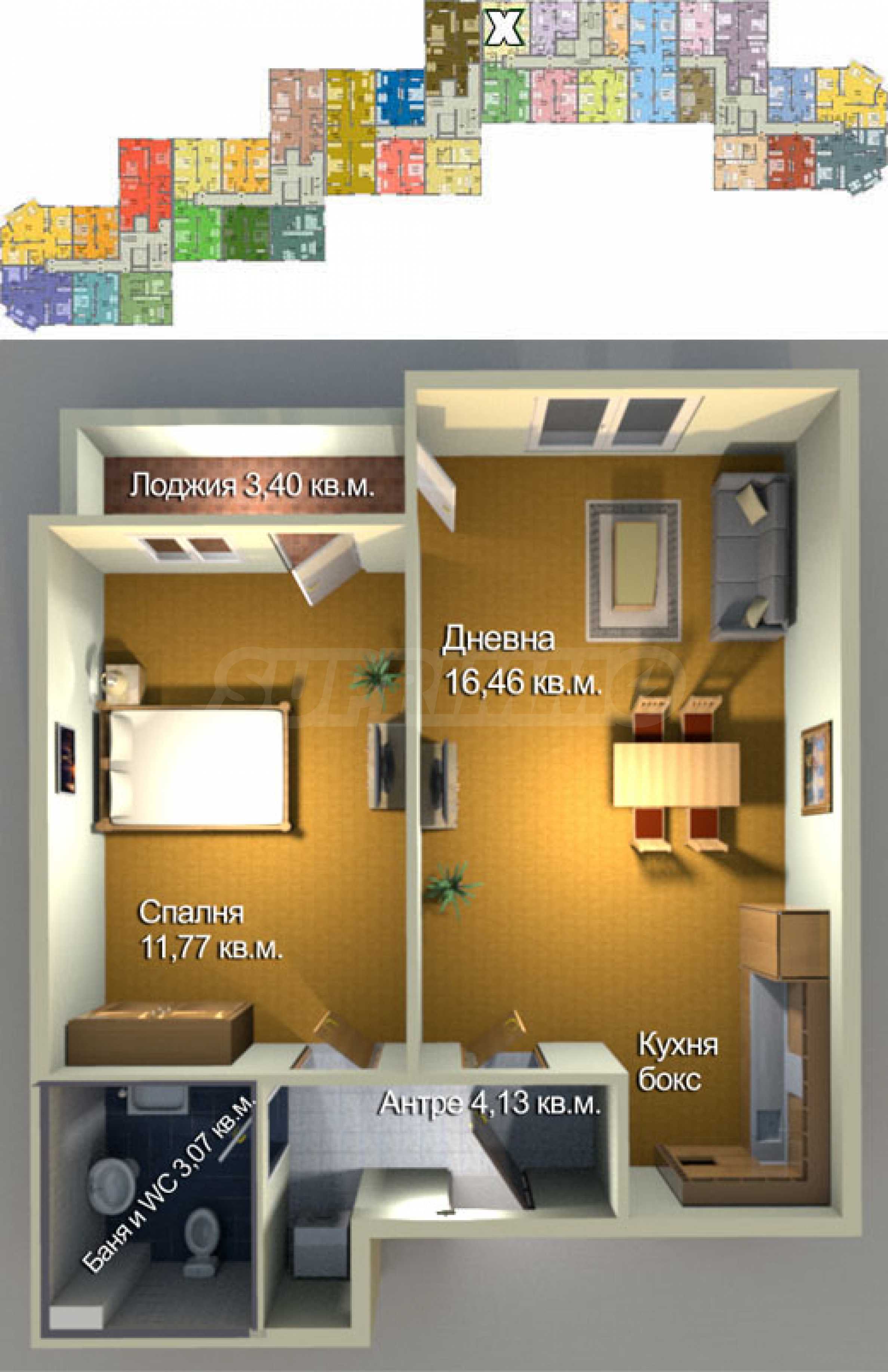 We present for sale a one-bedroom apartment on the 7th floor, under construction in the large-scale complex in the "Meden Rudnik" district, zone A, in the city of Burgas.