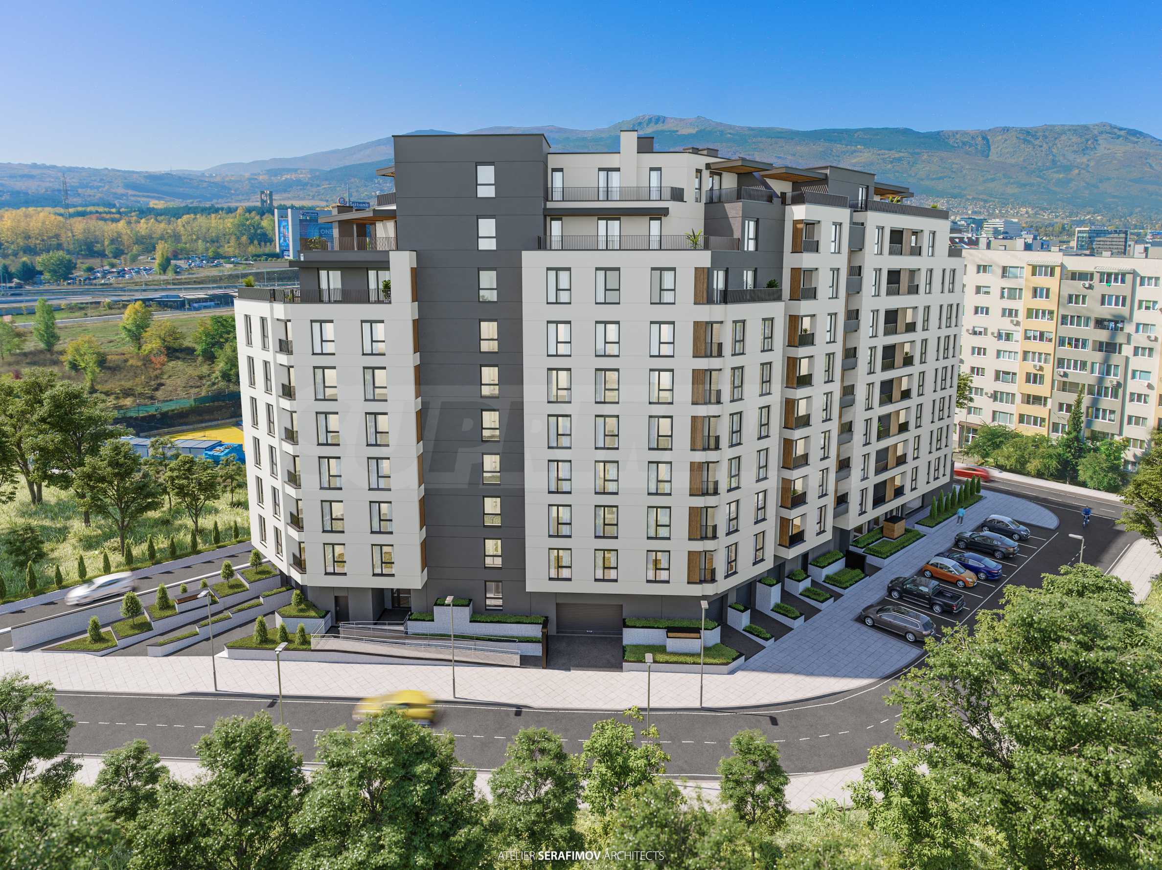 The complex is located in an extremely communicative location, a step away from the "Business Park" metro station, stores "Kaufland", "Fantastico", "Technopolis", "Sport Depot", "KOMO" and has a great view of Vitosha Mountain.