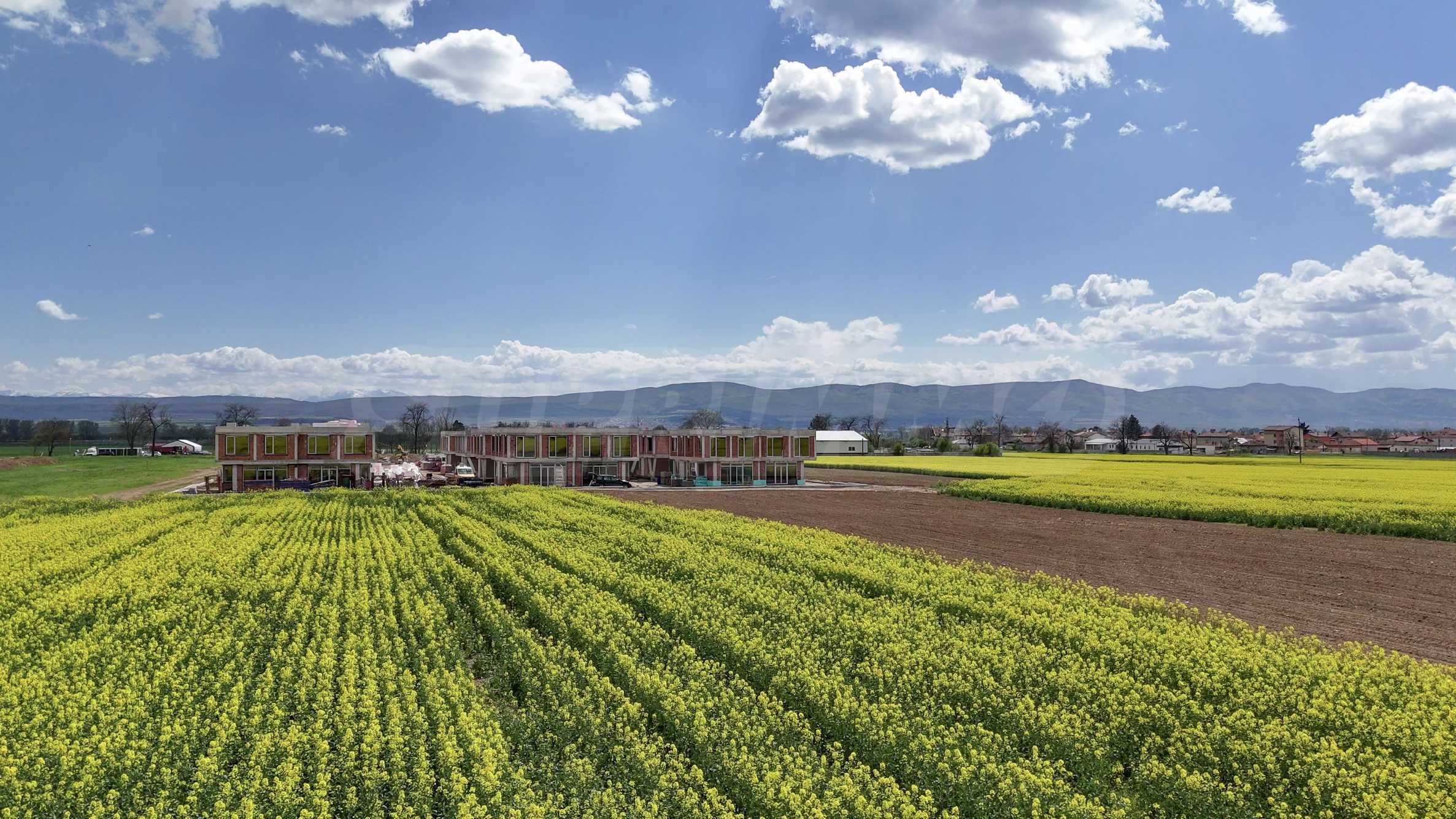 The residential complex includes two-story houses that combine modern design and functionality. The houses are gasified and have three bedrooms, bright and spacious common areas, as well as individual landscaped yards. This complex is located in the eastern part of the Sofia field, between the majestic slopes of the Stara Planina Mountains to the north and Sredna Gora Mountains to the south-southeast.
