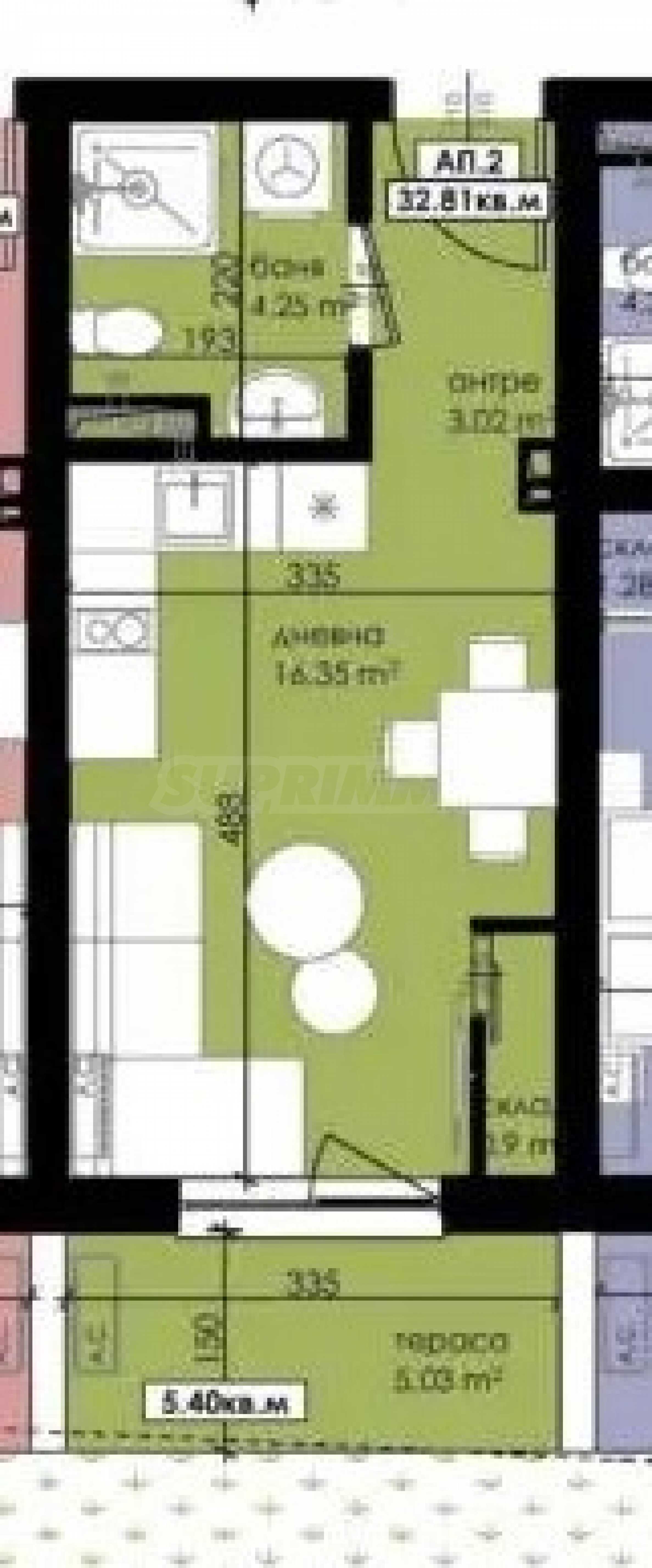 We present a studio of 38.21 m2 in a new, modern building with a limited number of apartments, with a convenient location just 10 minutes walk from Harmanite beach, in the new part of the town of Sozopol. The area is one of the rapidly developing as a whole new district of the town, with quality new cooperatives, villas and family buildings, with future direct access to the bypass road to the city of Burgas and a future hospital. The area is suitable for year-round living.