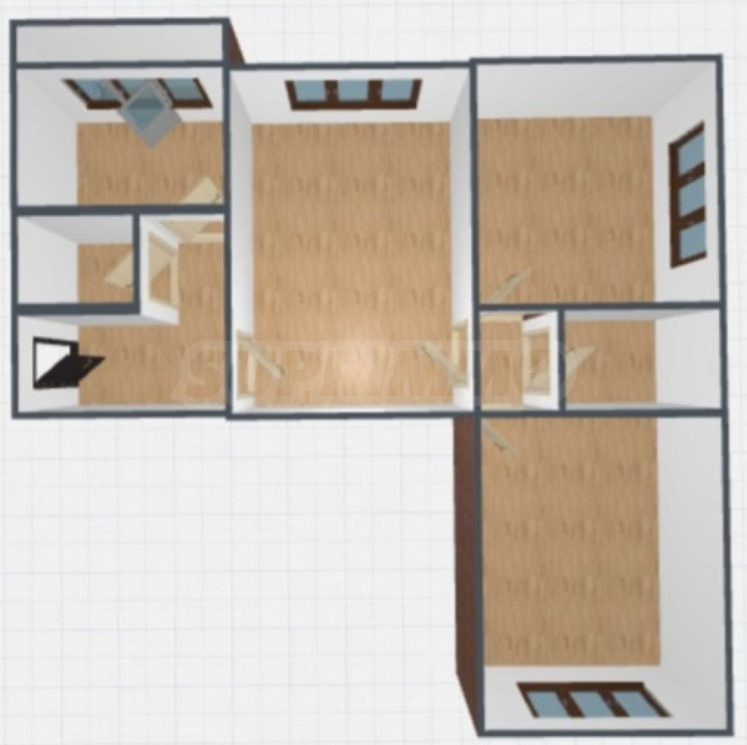 - entrance hall with L-shaped corridor;
