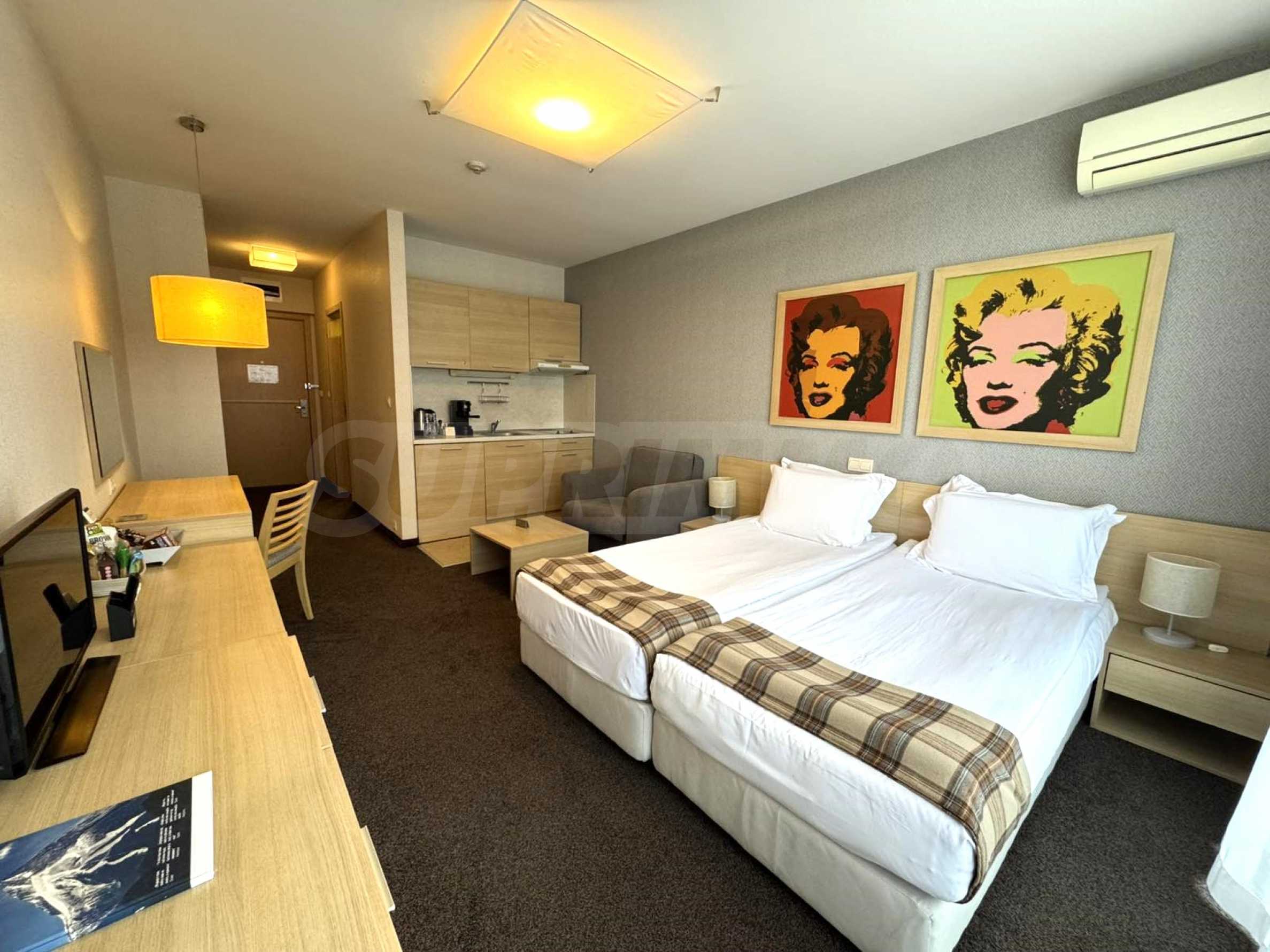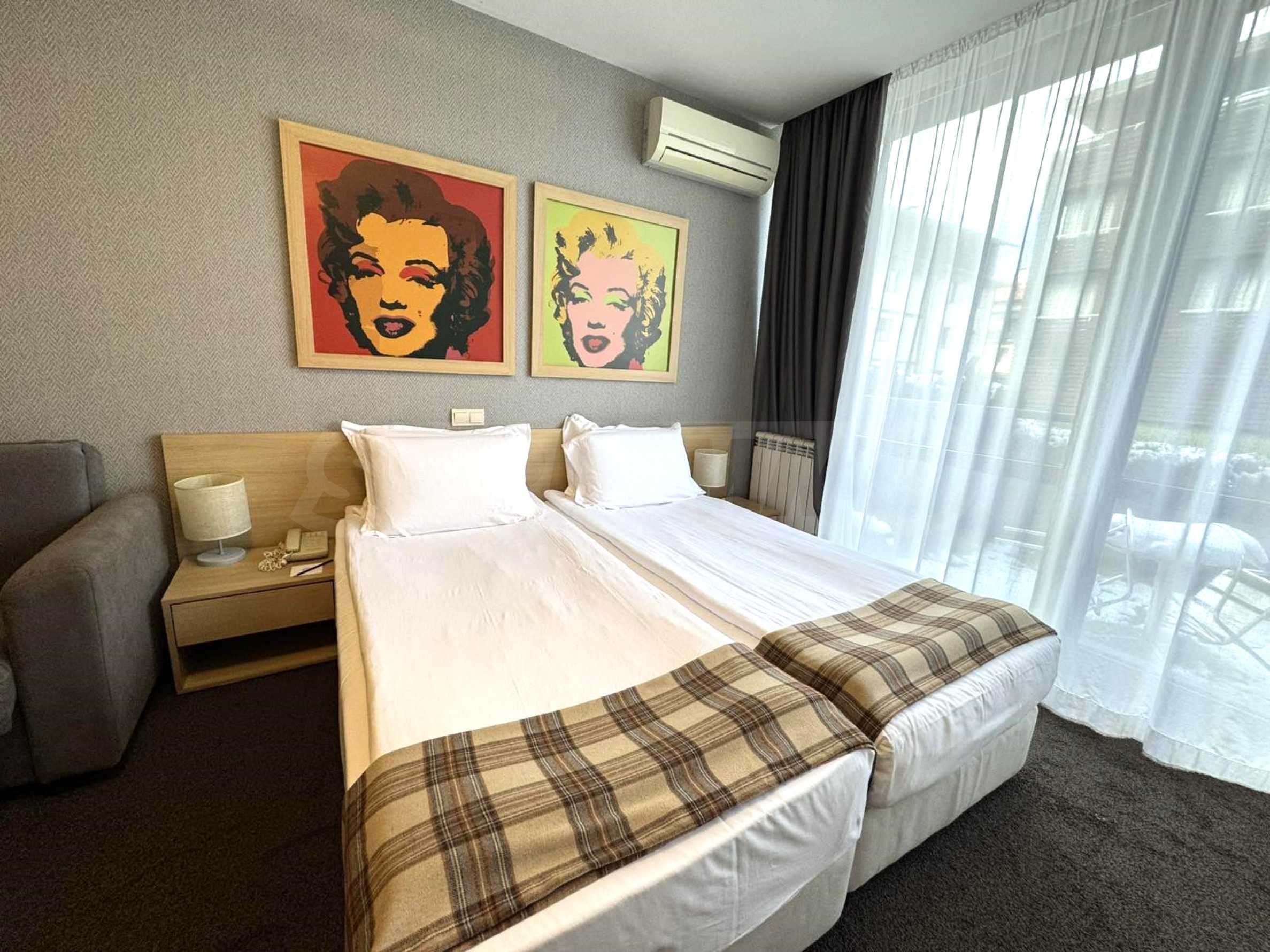 Furnished one-bedroom apartment in the gated complex Lucky Bansko, offering all the amenities and services for a complete vacation. The complex is located a 5-minute walk from the center of the ski resort Bansko.
