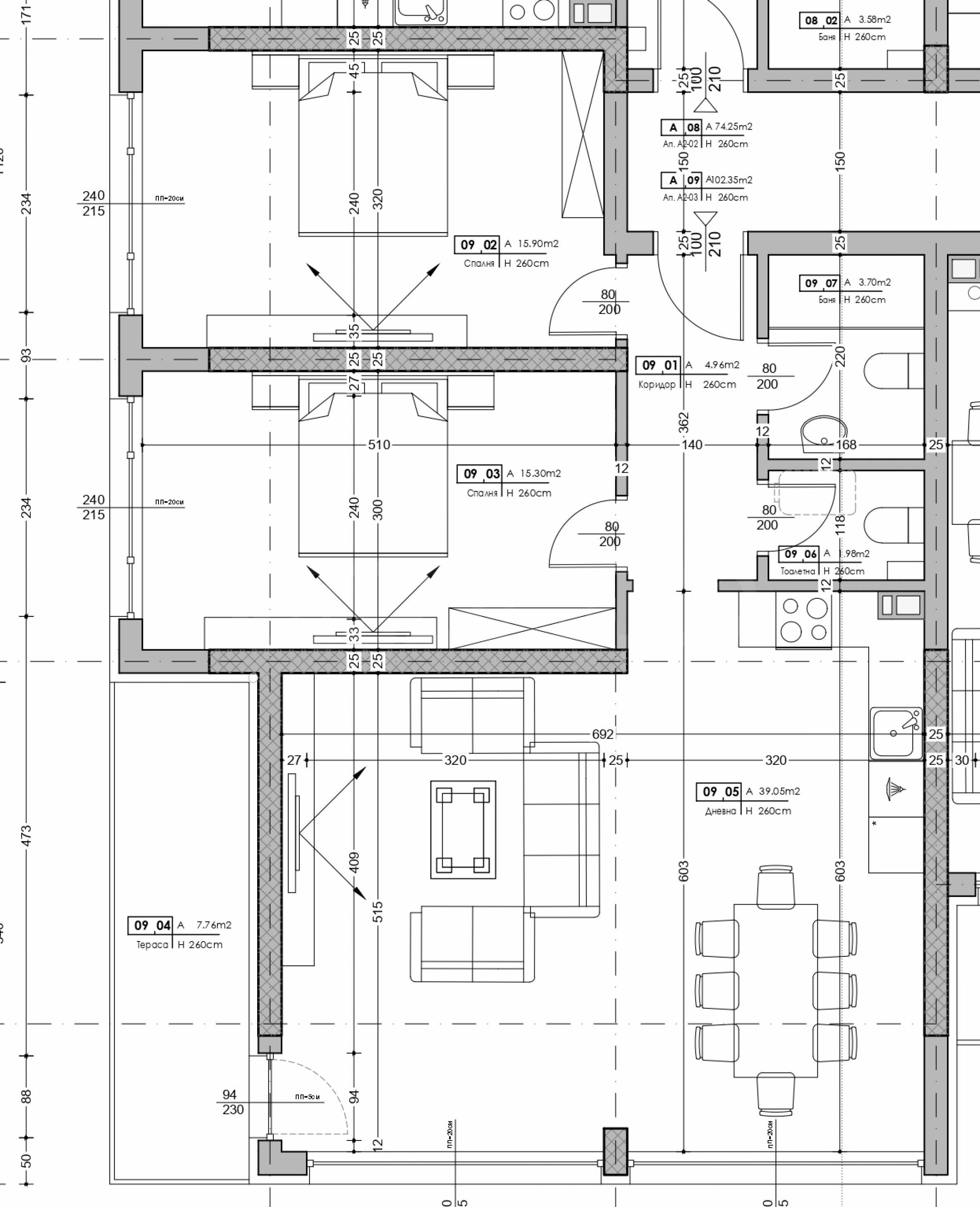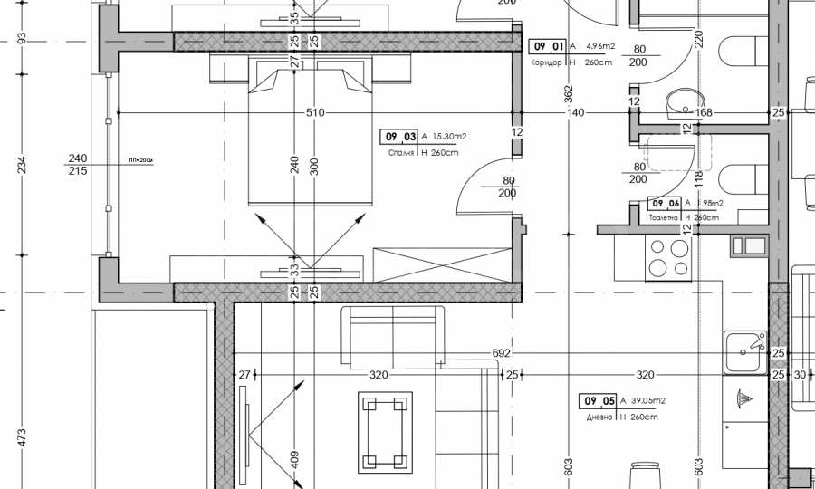 The apartments are handed over in a state of completion according to Bulgarian Construction Standards, with plaster and screed.