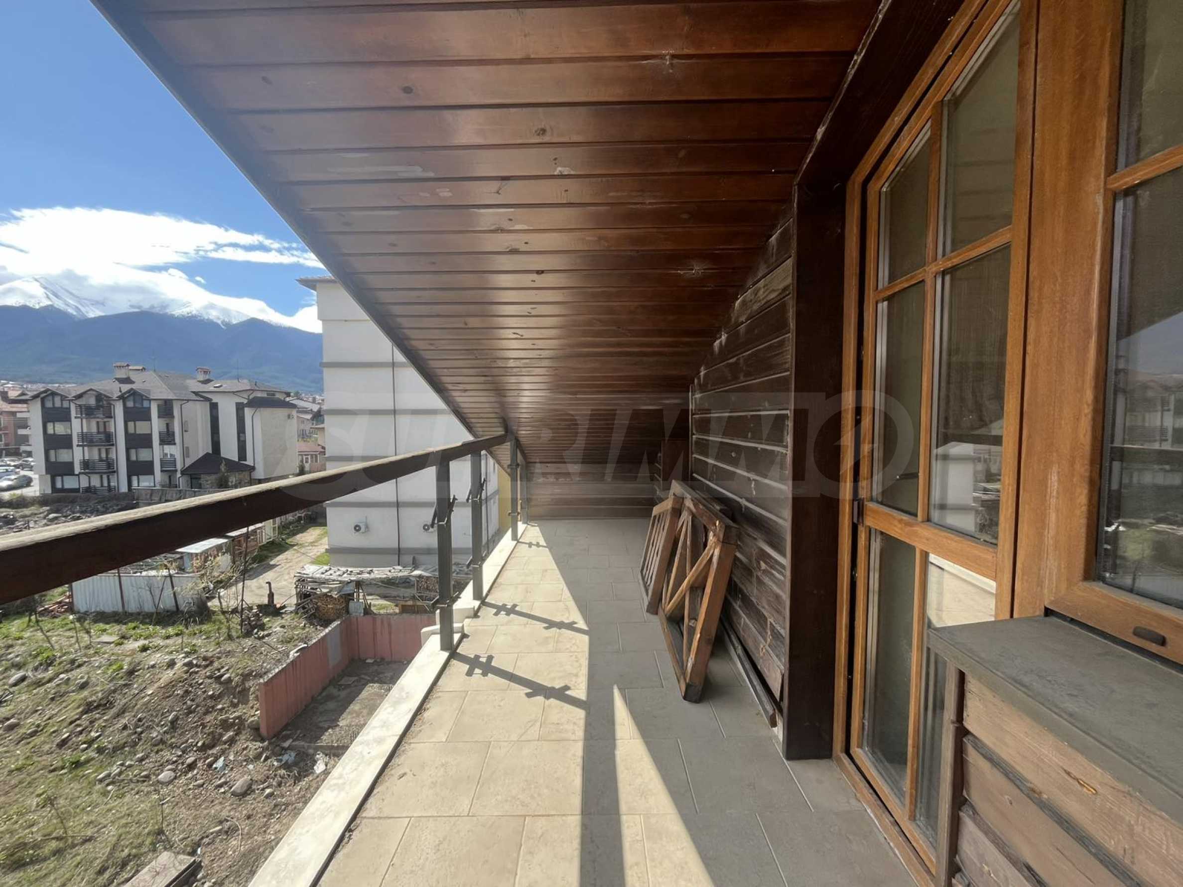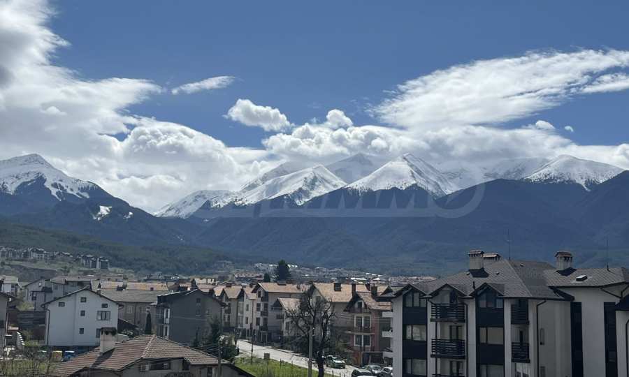 South-facing two-bedroom apartment with panoramic views of Pirin Mountain, located in a building near the center of Bansko