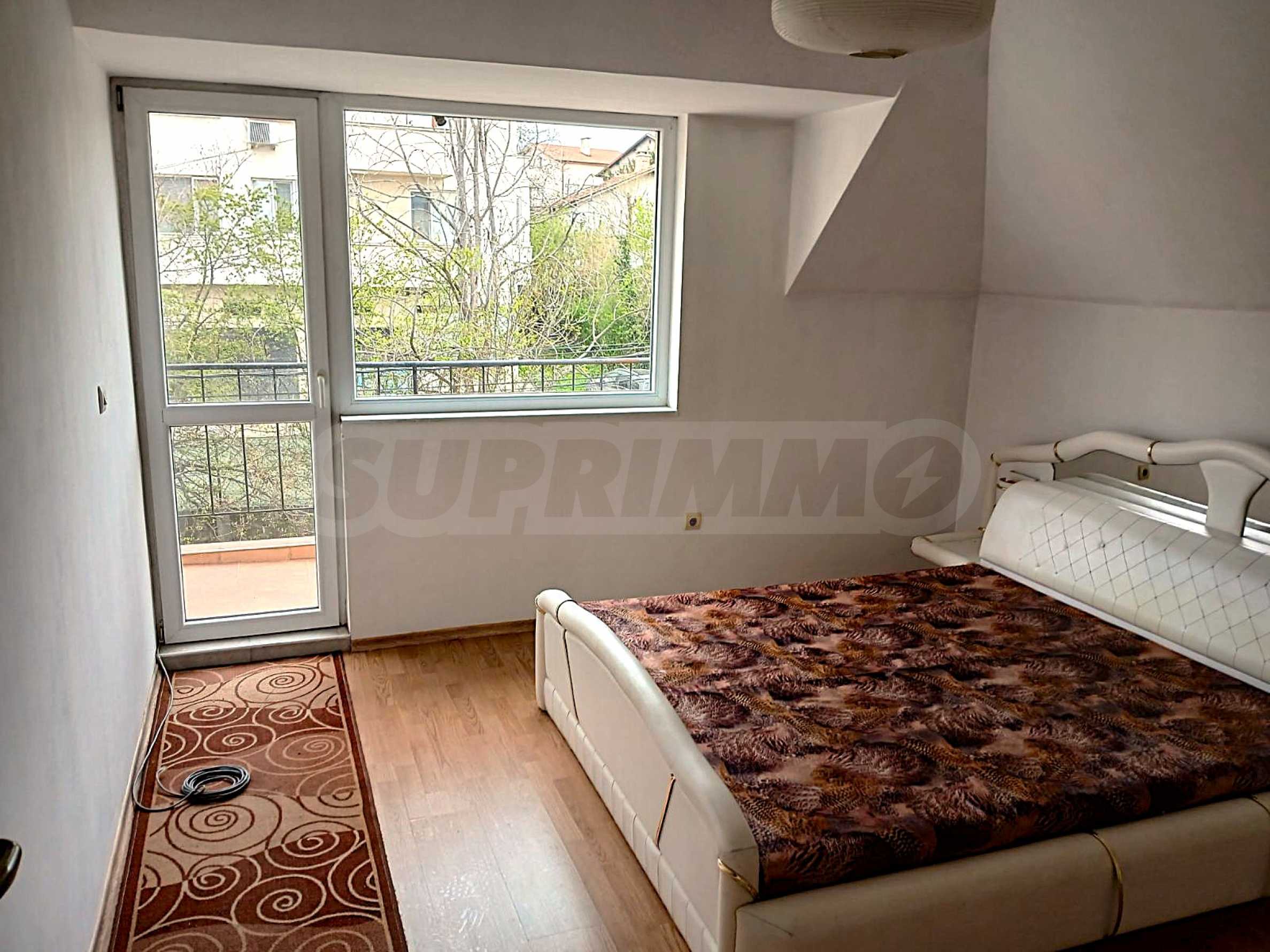 We offer for rent a stylish and fully furnished one-bedroom apartment with an area of 80 m2, located on the third floor of a four-story building with limited access and a maintained courtyard. The property is located in the quiet and green Karpuzitsa neighborhood, in an extremely communicative location with easy access to the city center, the Ring Road and public transport.