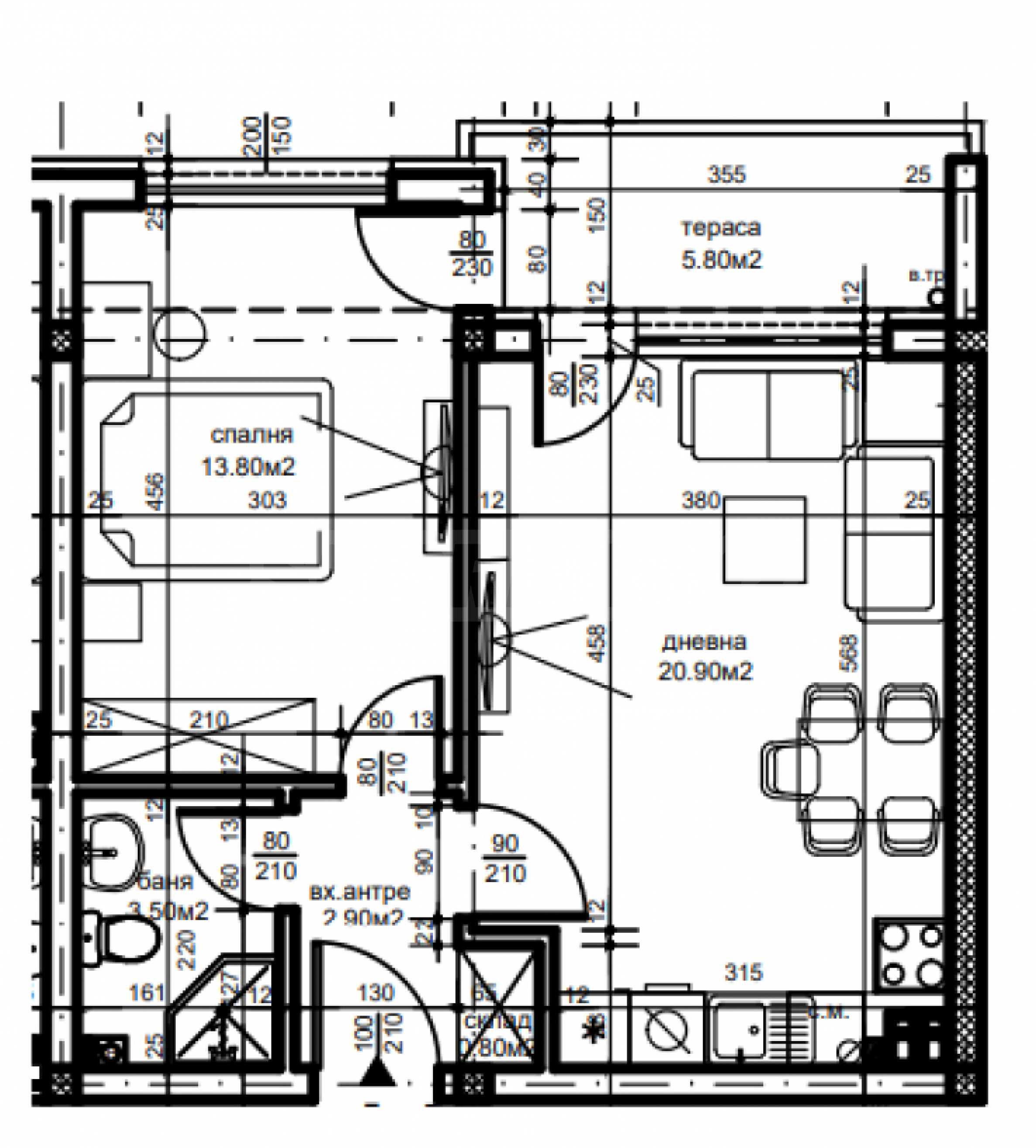 We present a one-bedroom apartment in a new complex, in the "Belomorski" district of the city of Plovdiv. Convenient location near a public transport bus stop.