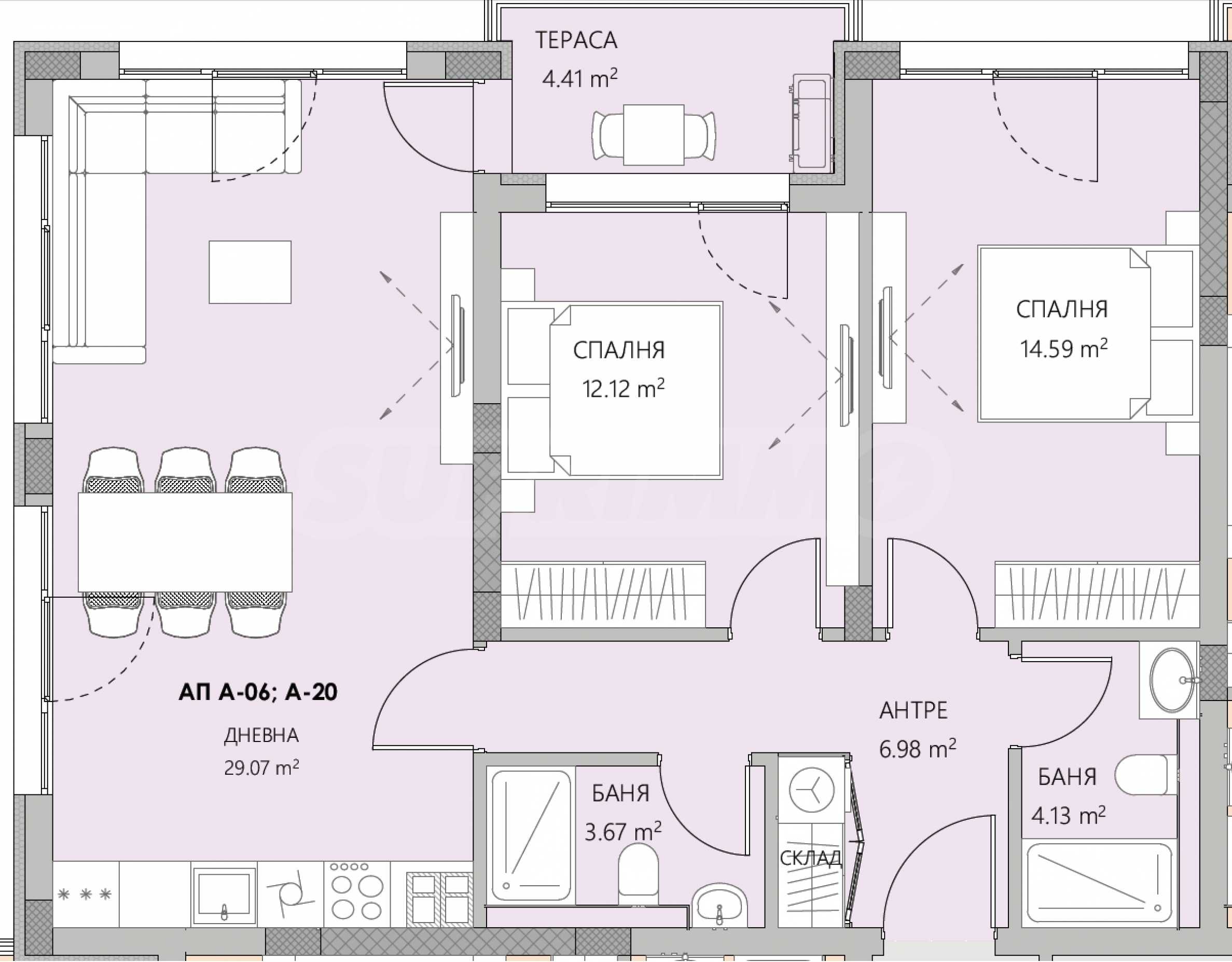 The apartments are handed over in a state of completion according to Bulgarian Construction Standards.
