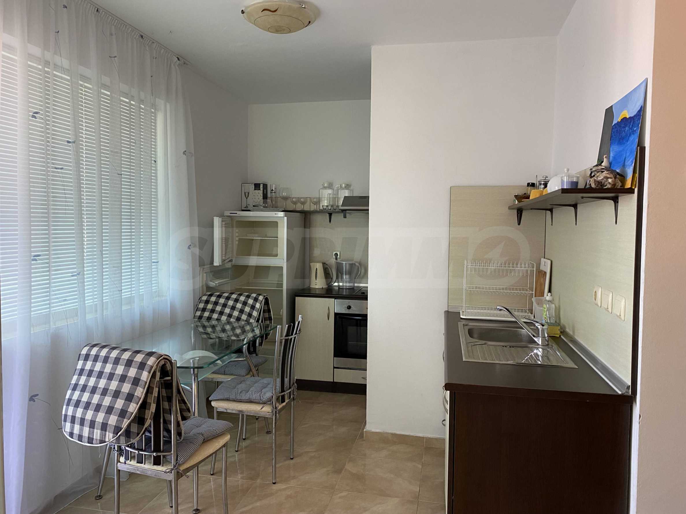 We present for sale a fully furnished one-bedroom apartment with a sea view, in a gated complex between the Kiten and Gardenia campsites.