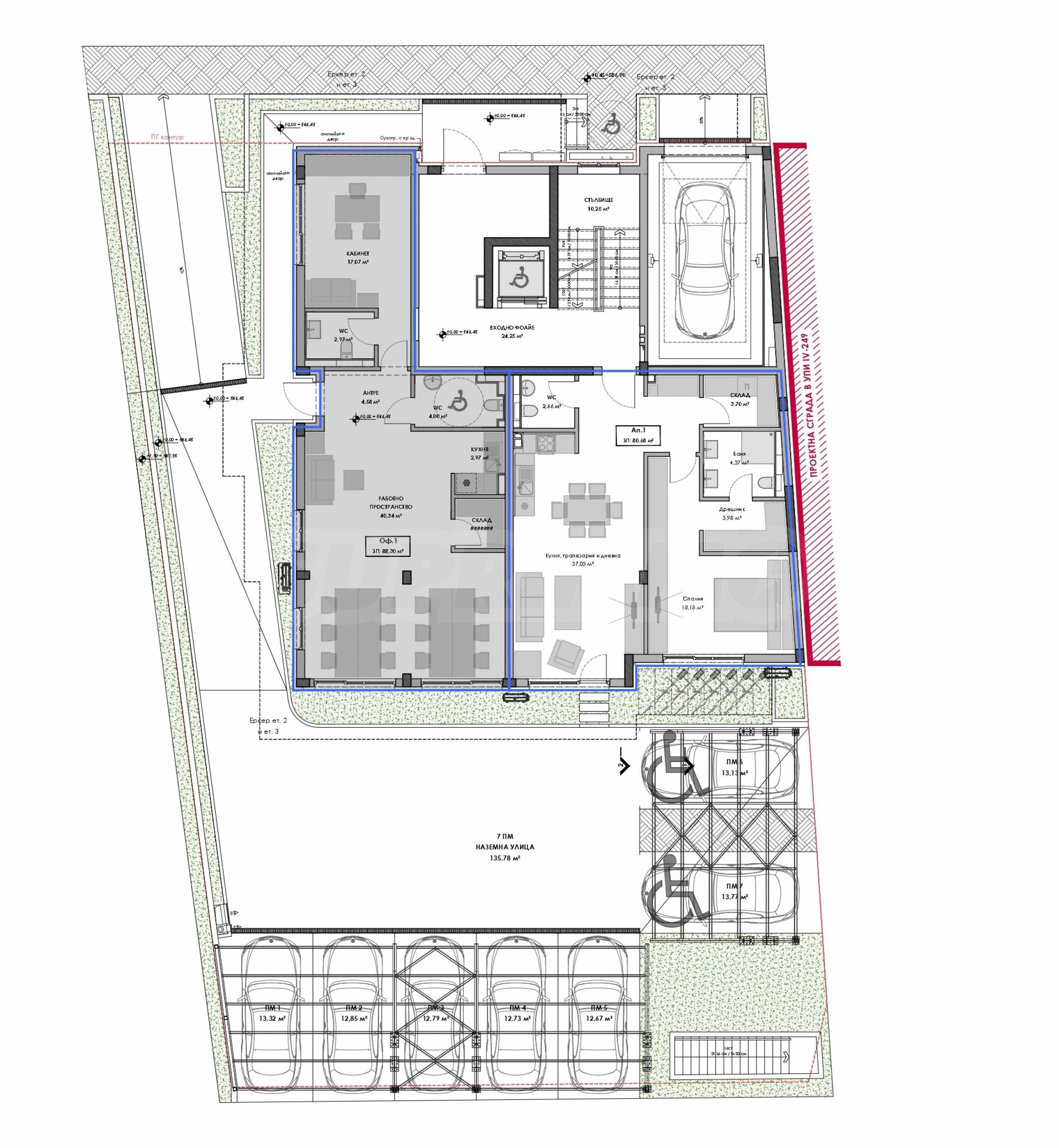 - Garages: access with automatic door, elevator and heated connection; floor - polished concrete.