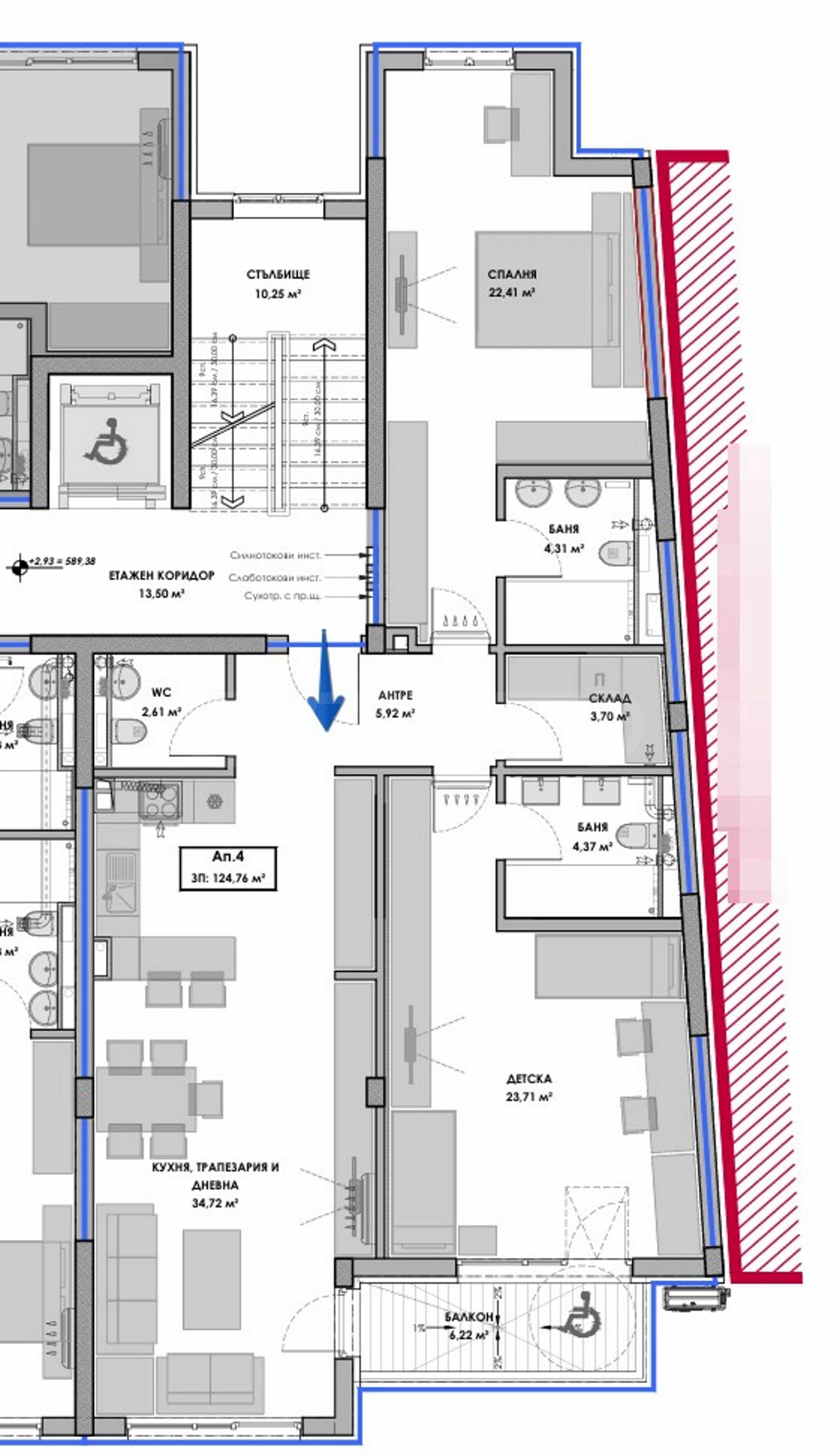 In close proximity to the Park-Hotel "Moscow" and Borisova Gradina, minutes from the "Joliot-Curie" metro station, close to hospitals, main city boulevards, schools and kindergartens, the building offers a favorable living environment, with wonderful views of Vitosha Mountain. It combines an elegant and modern vision, quality workmanship and an impeccable location, desirable for every family.