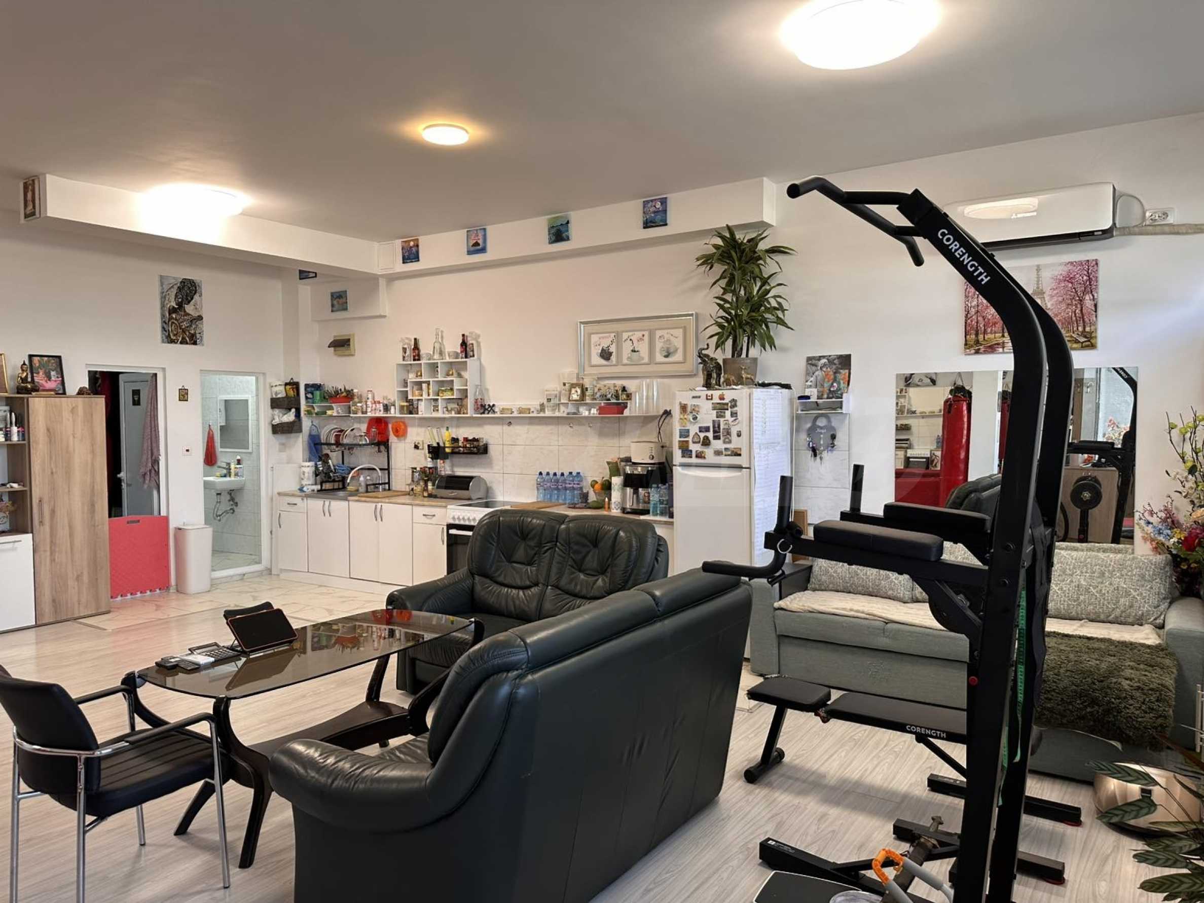 - large room with a separate living room with kitchen, bedroom, work area - 75 m2.