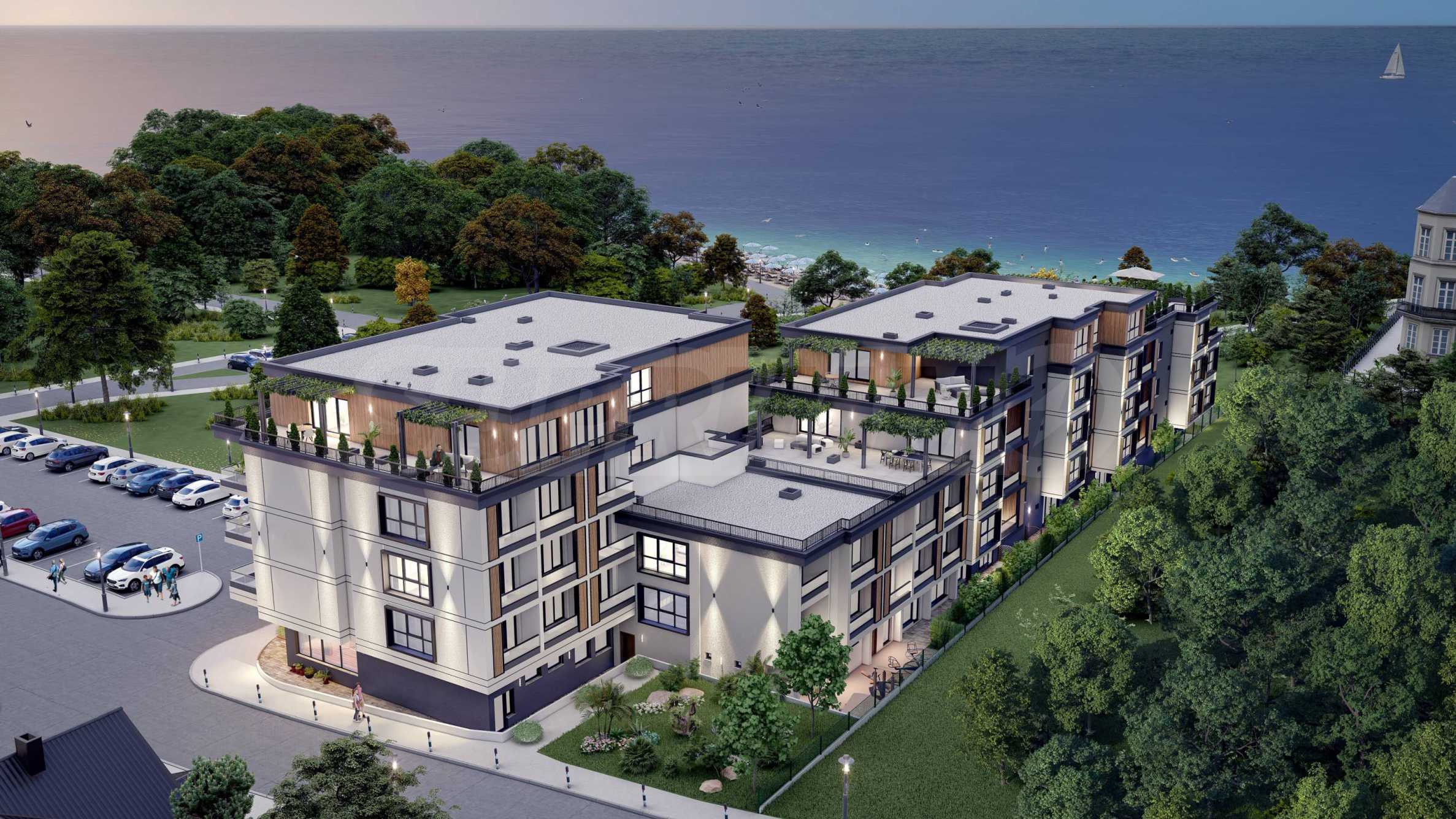 The buildings have an elegant and modern look and combined facades of HPL, etalbond and mineral plasters, creating a feeling of coziness and comfort. The apartments are studios, one-bedroom and three-bedroom properties with an area of 47.15 m2. to 120 m2. with picturesque views of the sea and the beach.