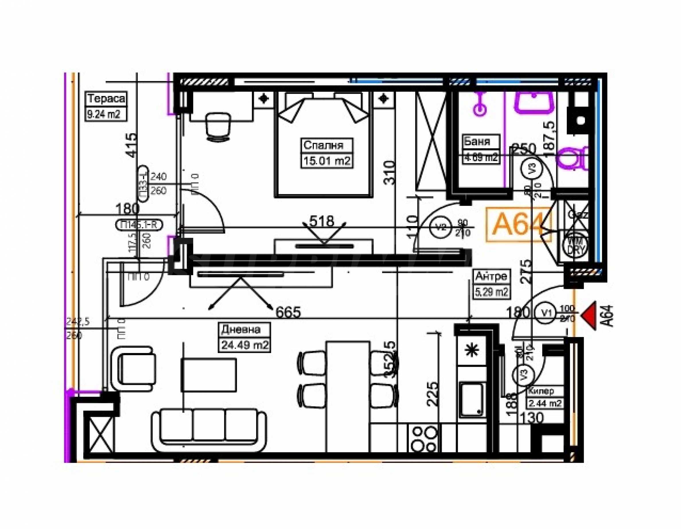 We present for sale a spacious one-bedroom apartment with a total area of 79.20 m2 in a modern new complex in the capital, in the "Krustova Vada" district. The complex provides coziness, comfort and a quality living environment. The building will be completed with a fully suspended facade of LAMINAM, SCHUCO aluminum joinery, SCHINDLER elevators, with luxurious common areas, a richly landscaped courtyard, 24-hour security, video surveillance and access control.