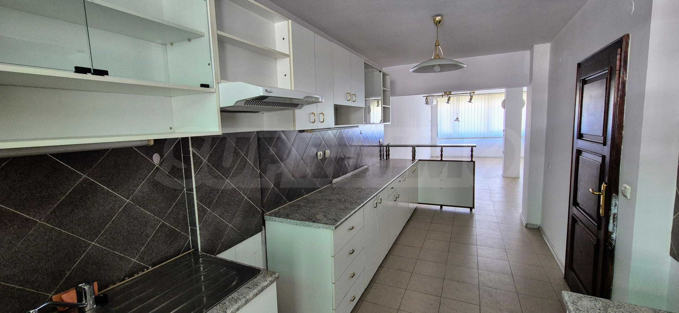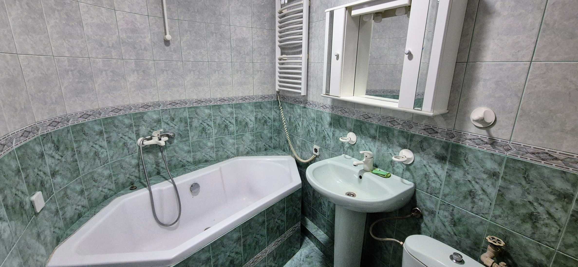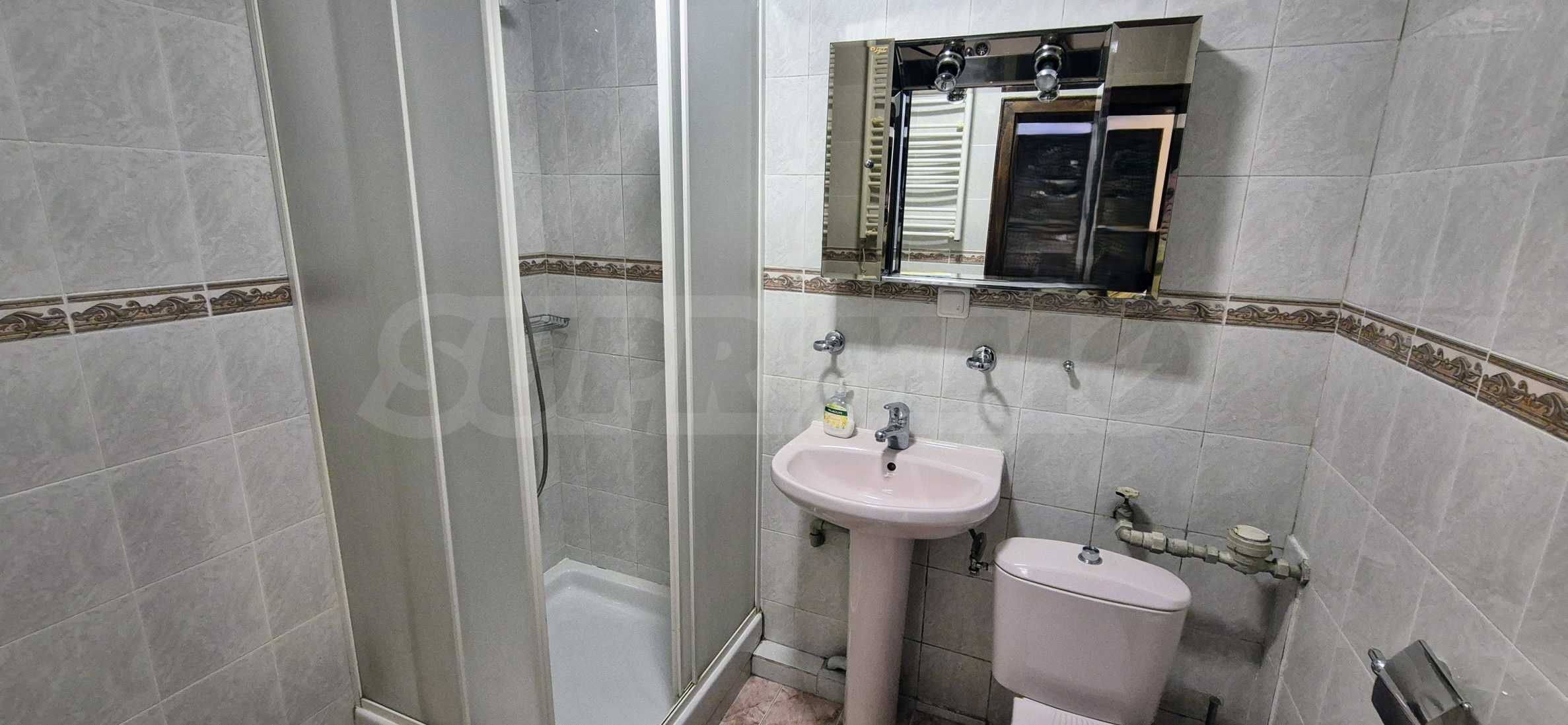 The apartment is in well-maintained condition, with finished bathrooms and a furnished kitchen.