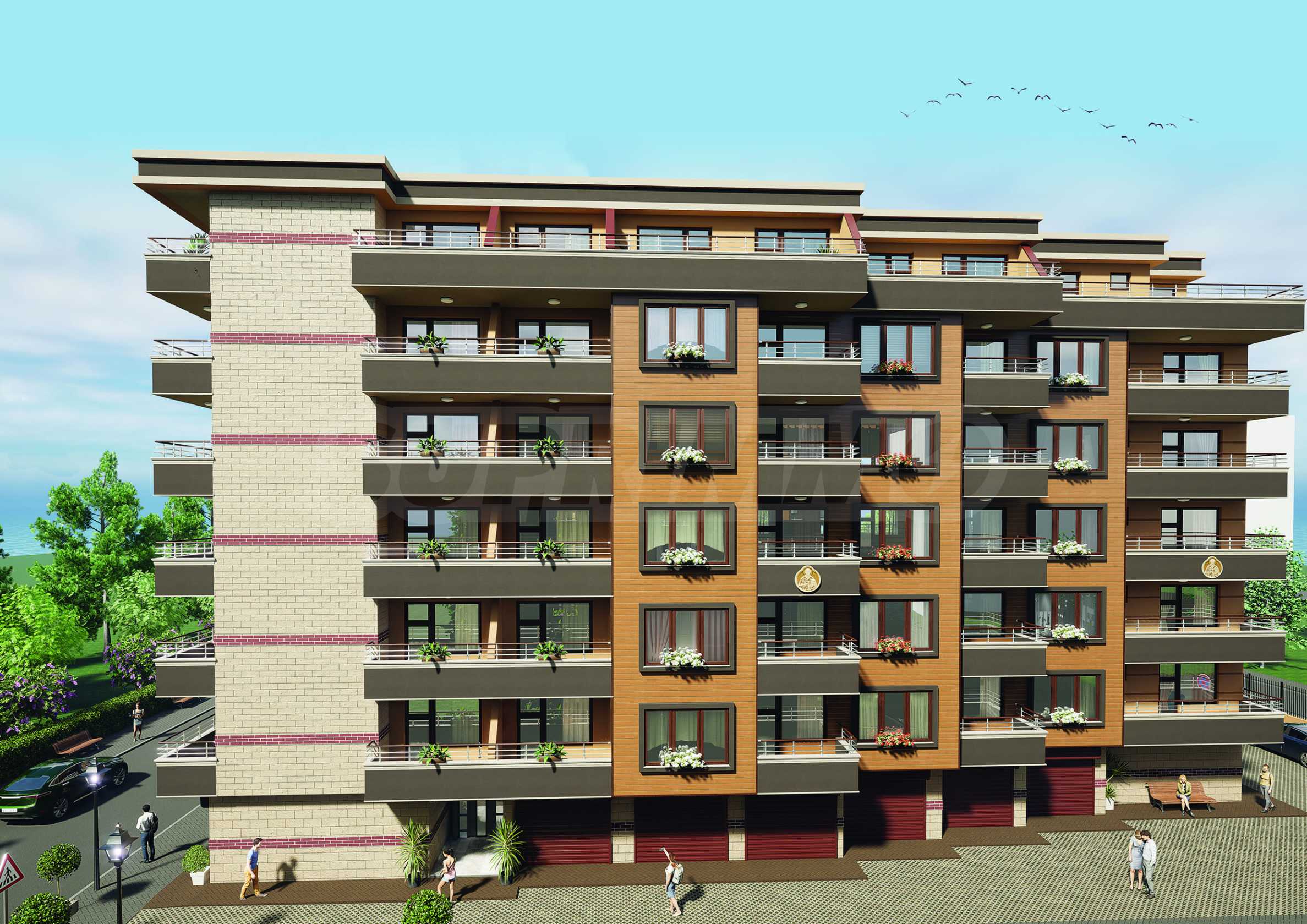 The building will have luxurious common areas, on the ground floor there will be a modern entrance lobby, 6 storage rooms, 23 garages and 1 two-bedroom apartment.