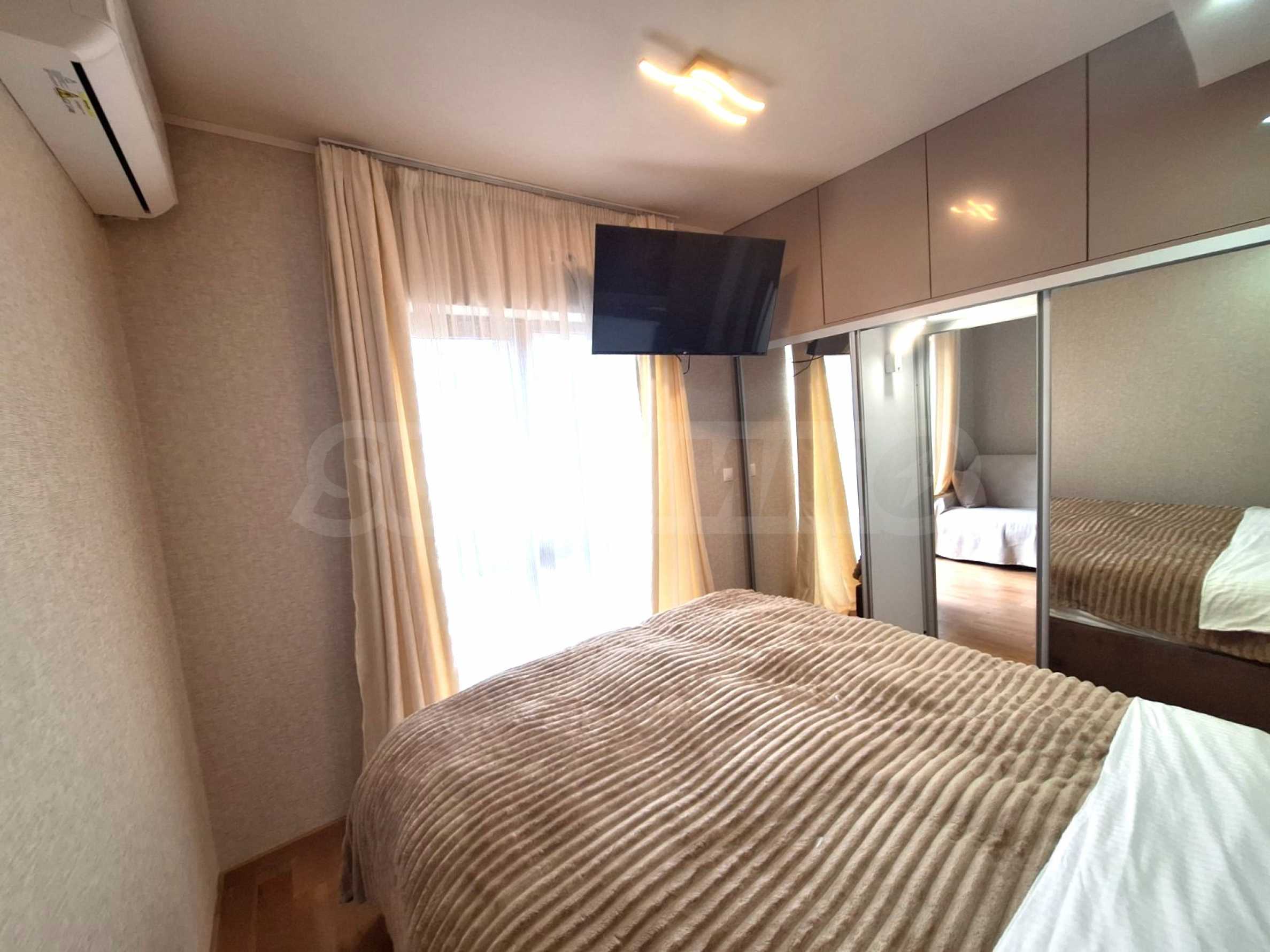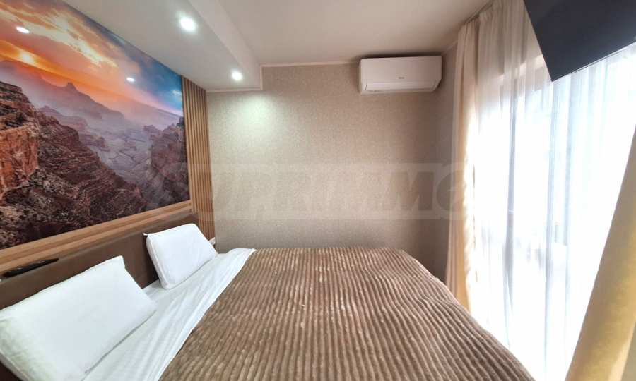 We present a fully renovated and furnished one-bedroom apartment for rent in the gated Crown complex in Bansko.