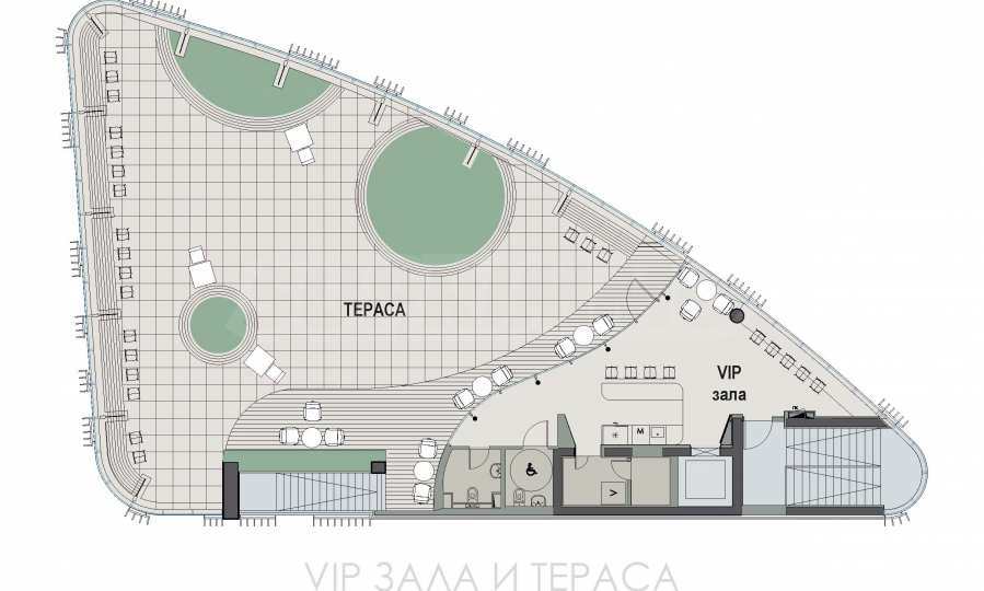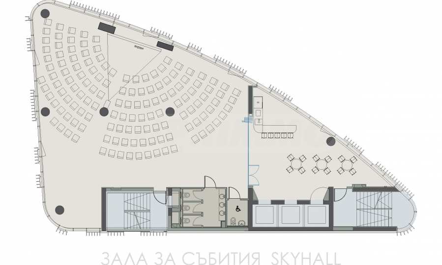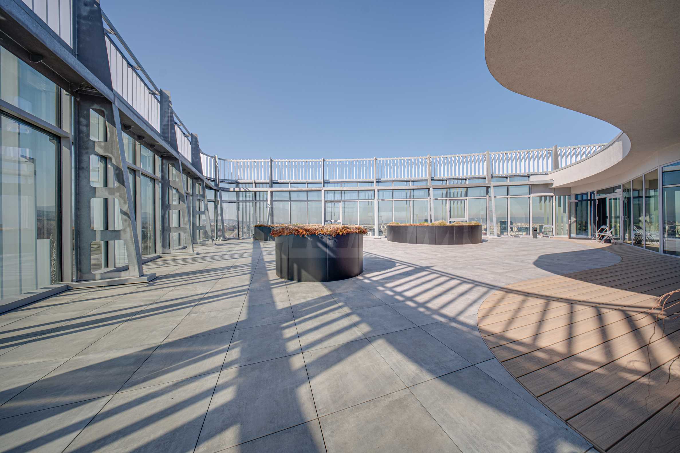 The building is developed in 11 levels above the terrain, vertically divided into 3 groups - main level with entrance, reception area - representative lobby and shop, floor with showroom, 7 floors with spacious and bright offices and 2 floors with multifunctional areas - event hall and roof garden, revealing impressive views of the city and the mountain. It has two underground levels for parking and service premises. The parking for visitors and employees in the building has controlled access and 24-hour security.