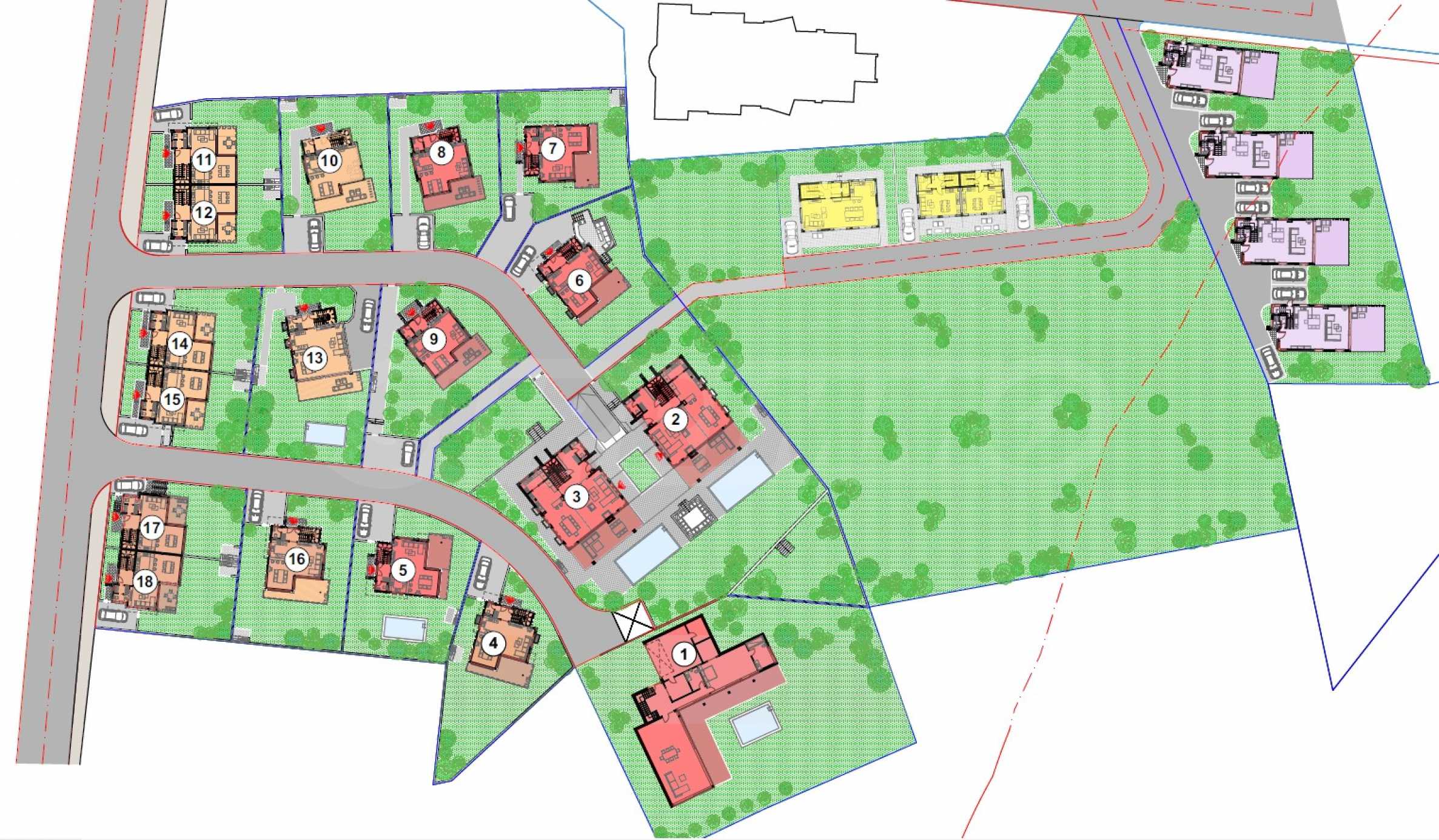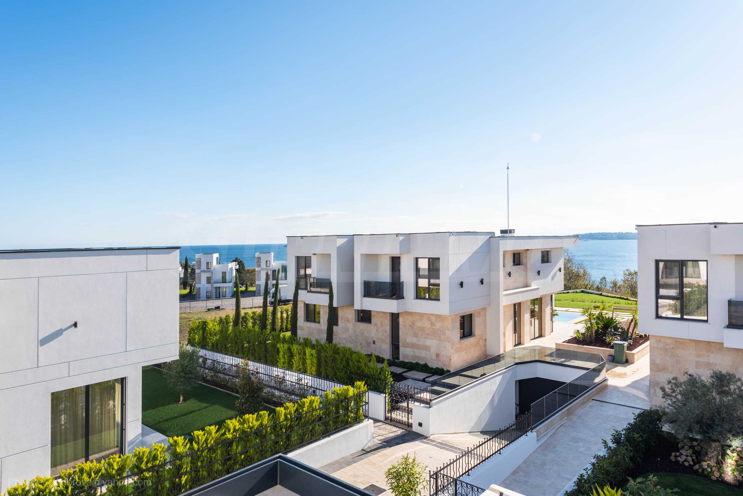 The property is part of a project of luxury single-family residential buildings, in the newly built gated complex, located in a quiet and picturesque location in the Akladi area, with panoramic views of the sea bay and the island of Saint John.