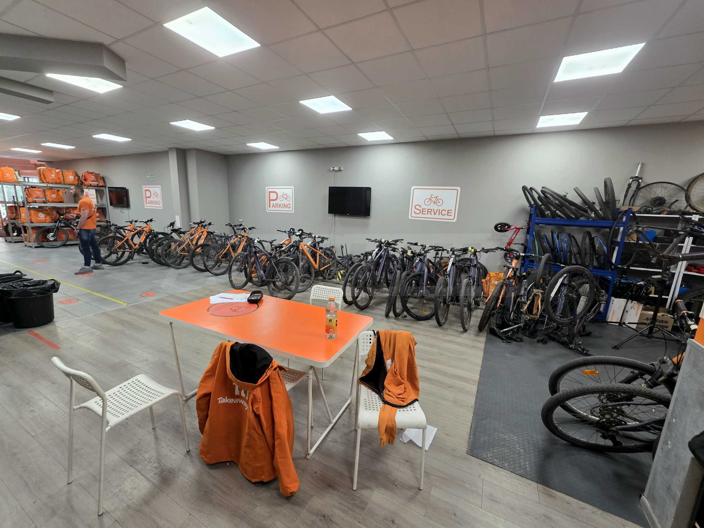 The office has a total area of 305 sq m, of which 235 sq m is open space on the ground floor and 70 sq m on the second level, connected by an internal staircase.