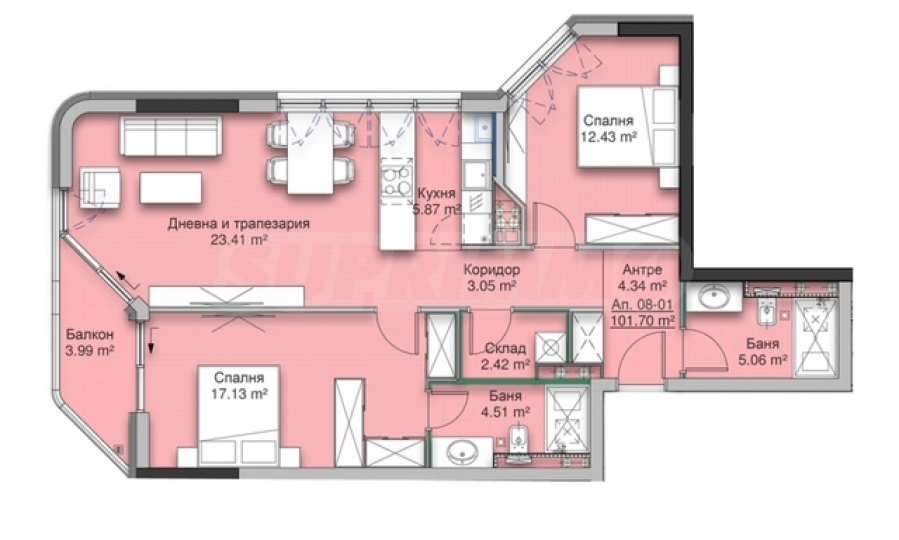 There is an option to purchase an underground parking space at an additional price of 30,000 euros/58,675 BGN excluding VAT.