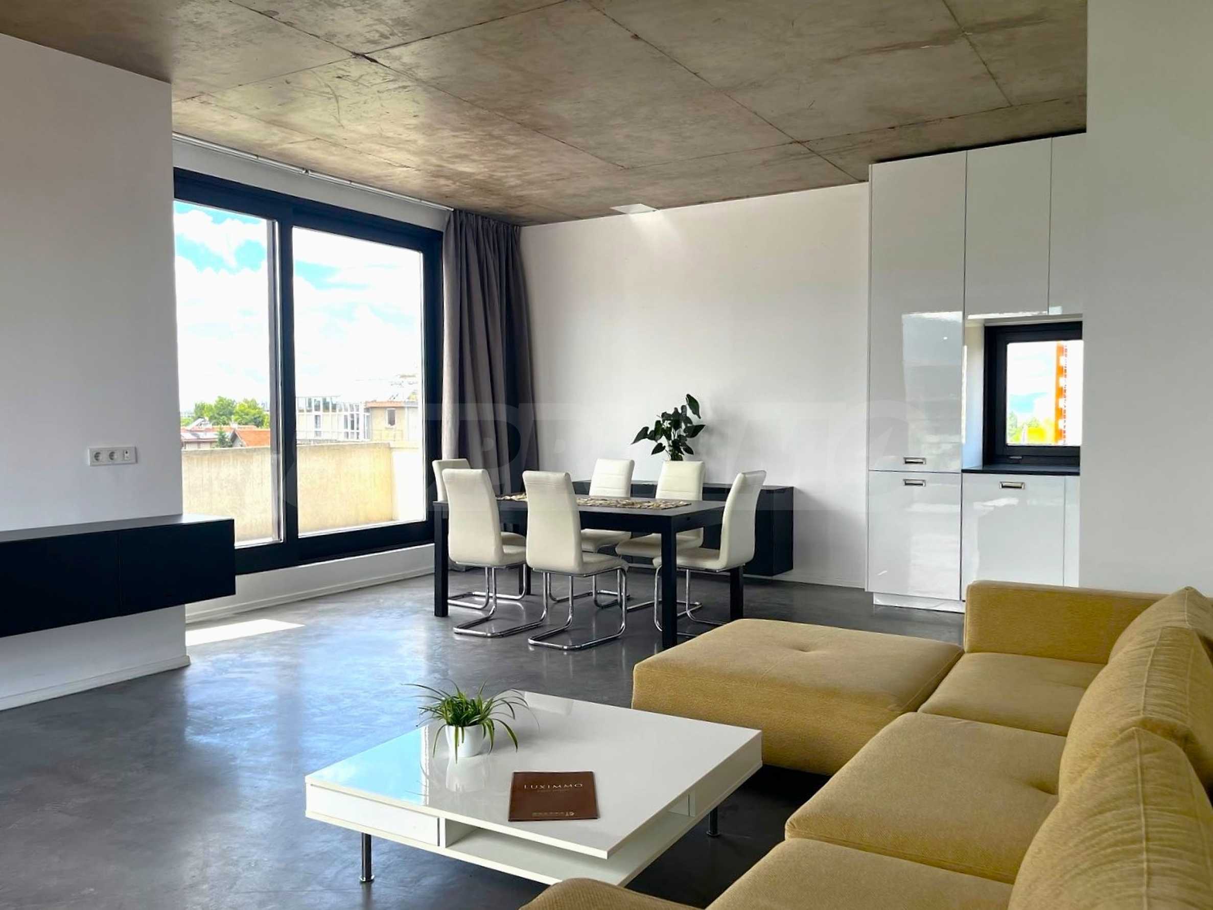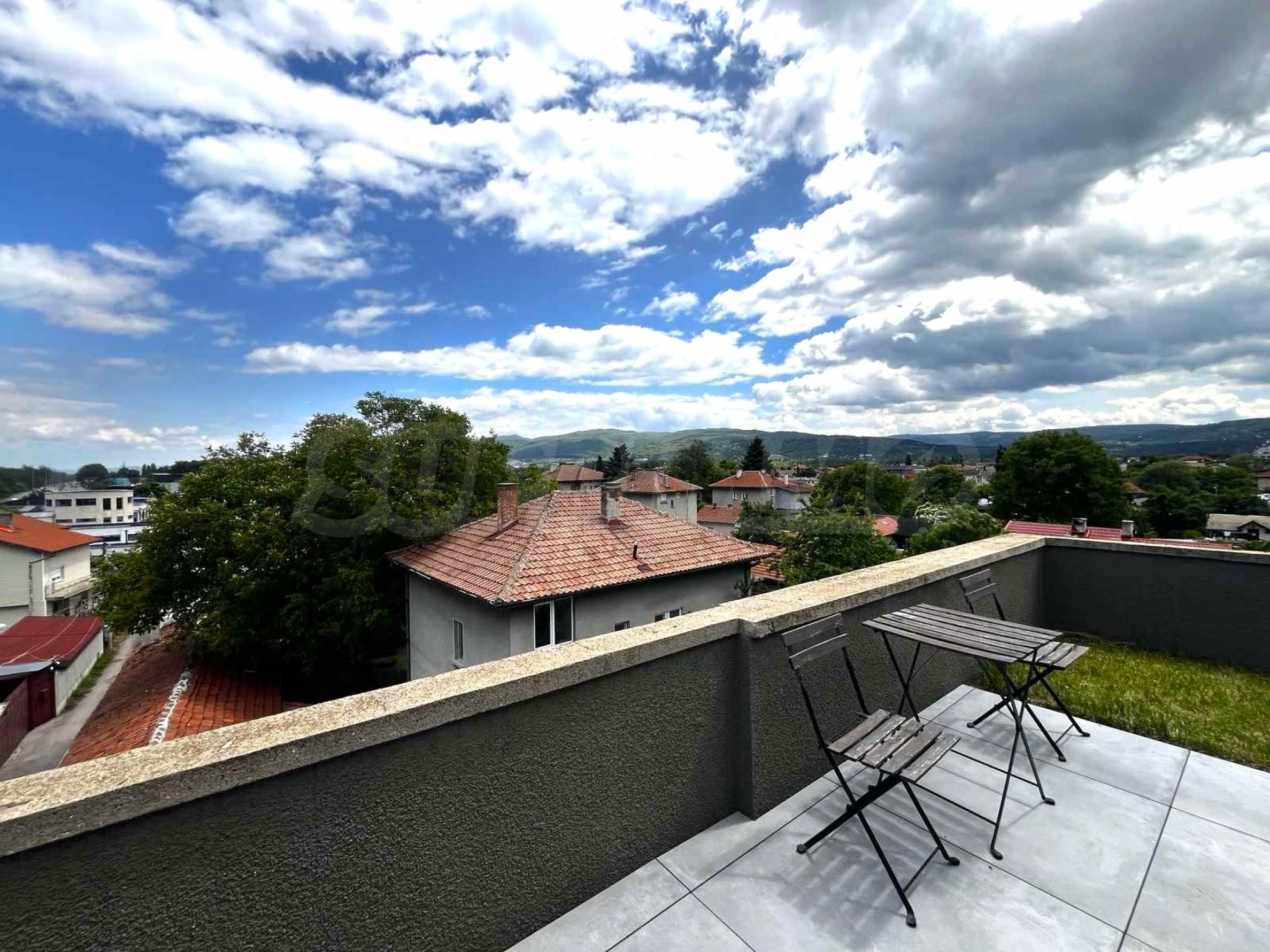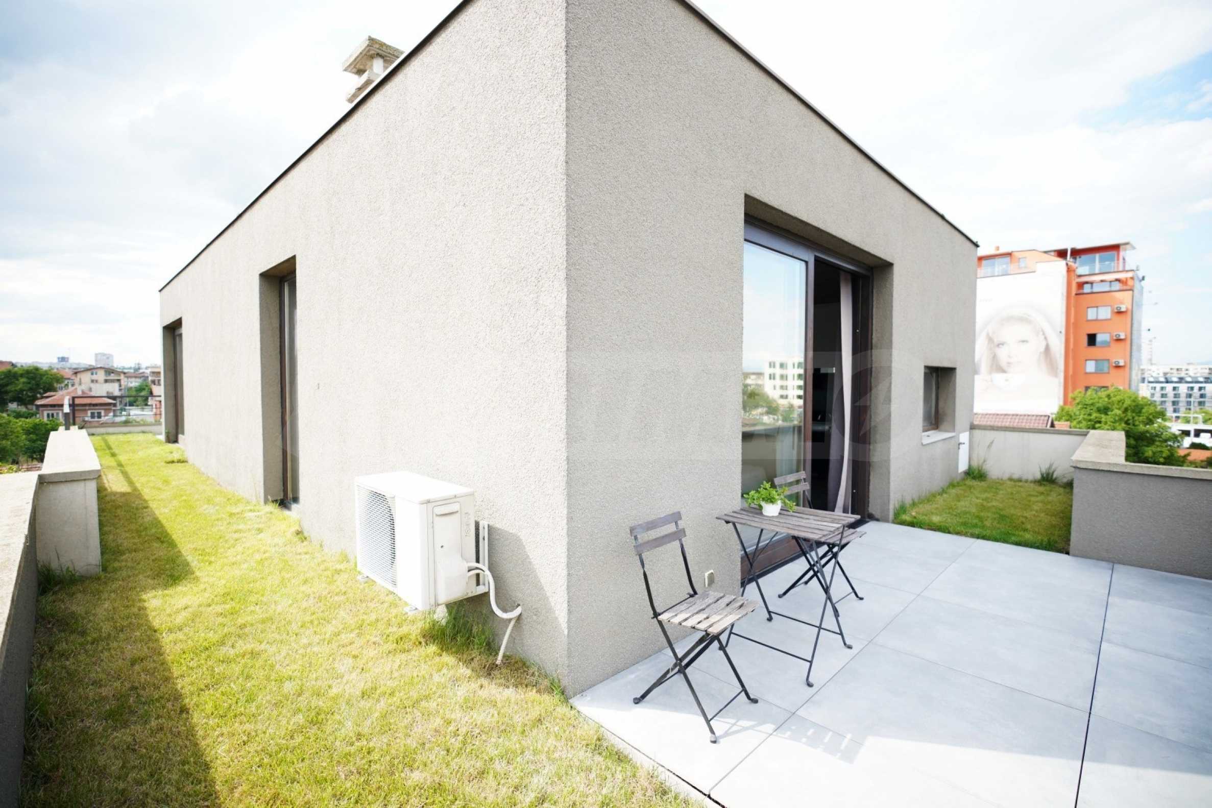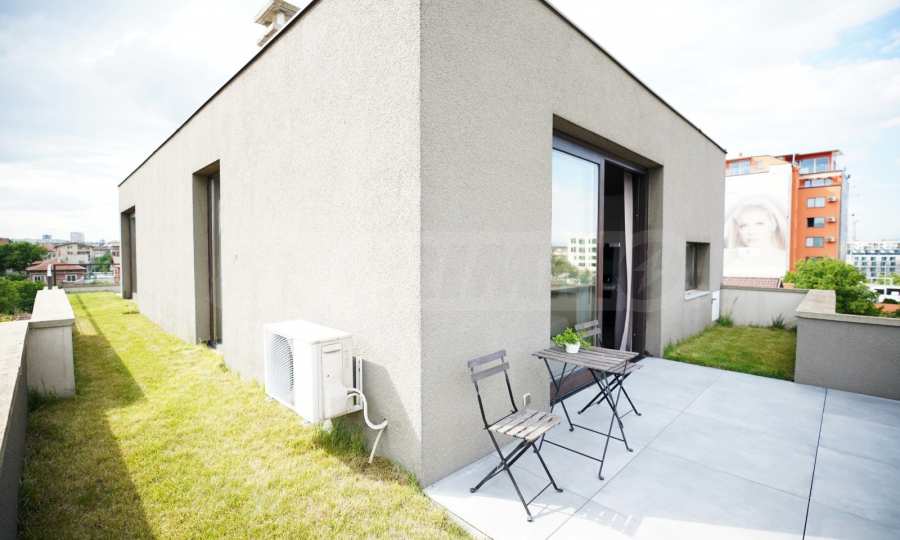 We present to you a stylish and fully furnished one-bedroom apartment, located in a new building with controlled access in the quiet part of the capital's Gorublyane district. The property is distinguished by its spaciousness and light, located on a total area of 159 sq m, including 98 sq m of living space and 61 sq m of landscaped roof terrace with an automated underground irrigation system - a true urban garden with a panoramic feel.