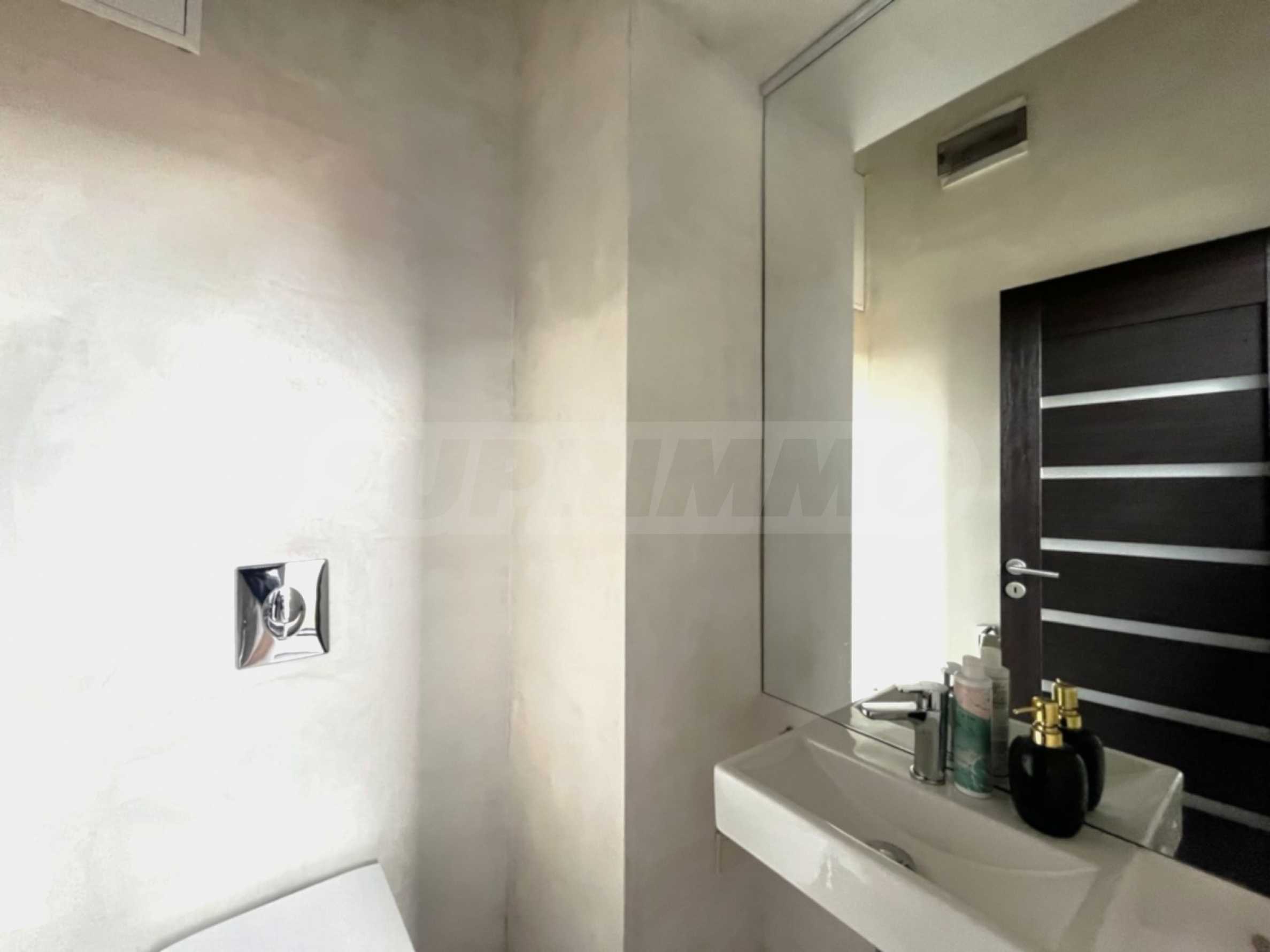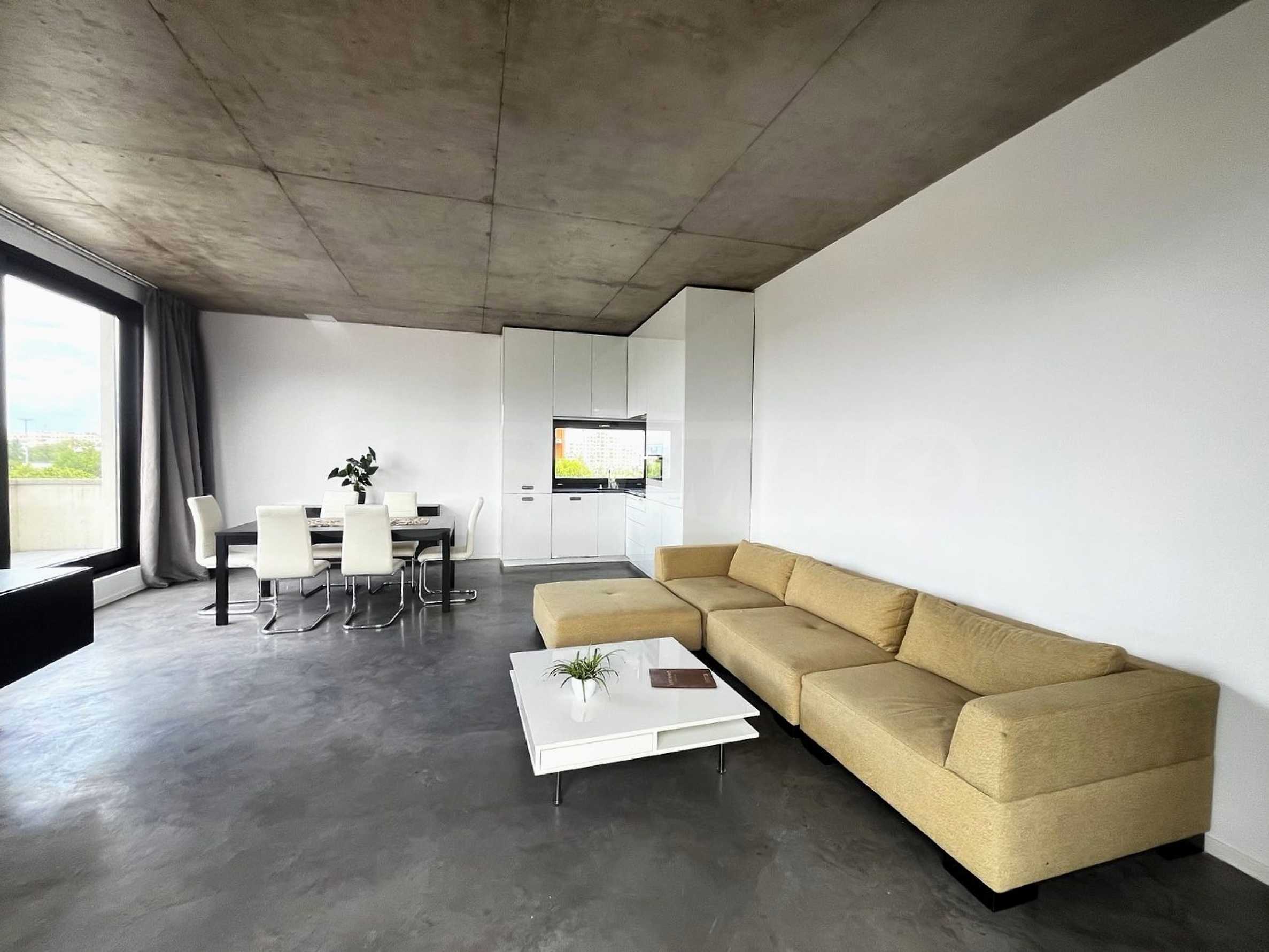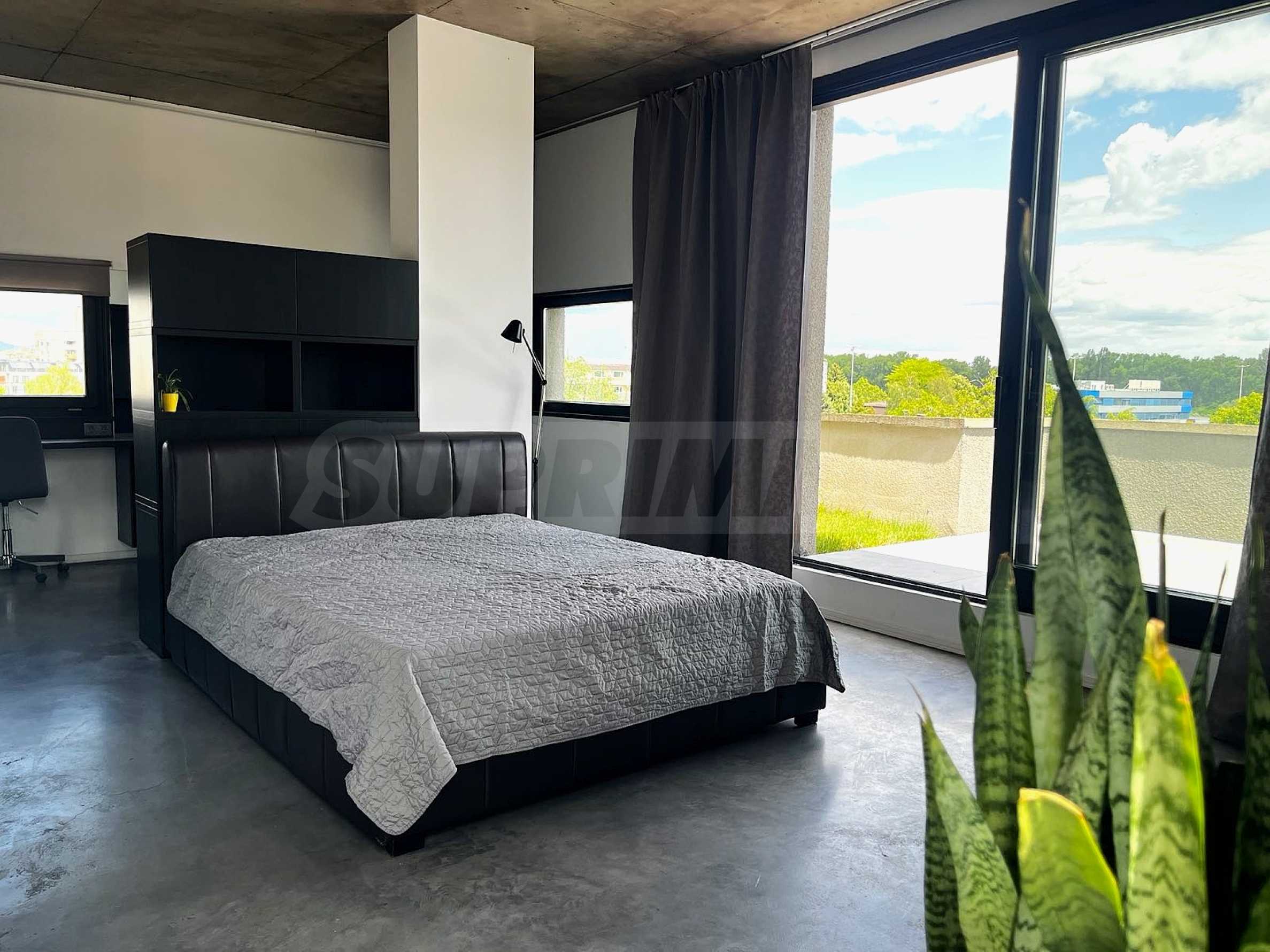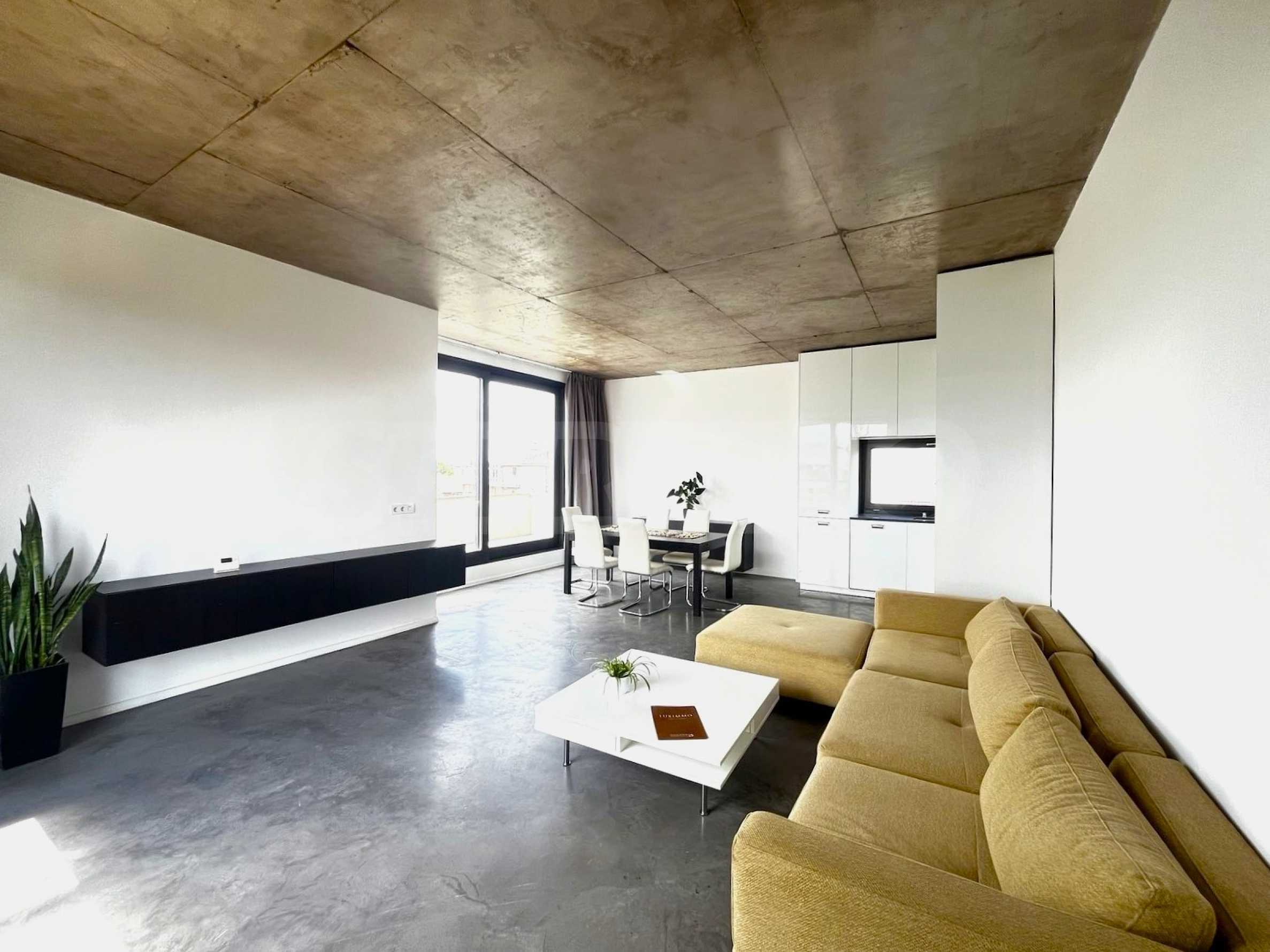 We present to you a stylish and fully furnished one-bedroom apartment, located in a new building with controlled access in the quiet part of the capital's Gorublyane district. The property is distinguished by its spaciousness and light, located on a total area of 159 sq m, including 98 sq m of living space and 61 sq m of landscaped roof terrace with an automated underground irrigation system - a true urban garden with a panoramic feel.